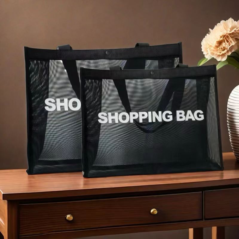 재고 핸드백 메쉬 토트 백 쇼핑백 대용량 나일론 투명 쇼핑몰 요가 어깨 비치 핸드백스토어 가기