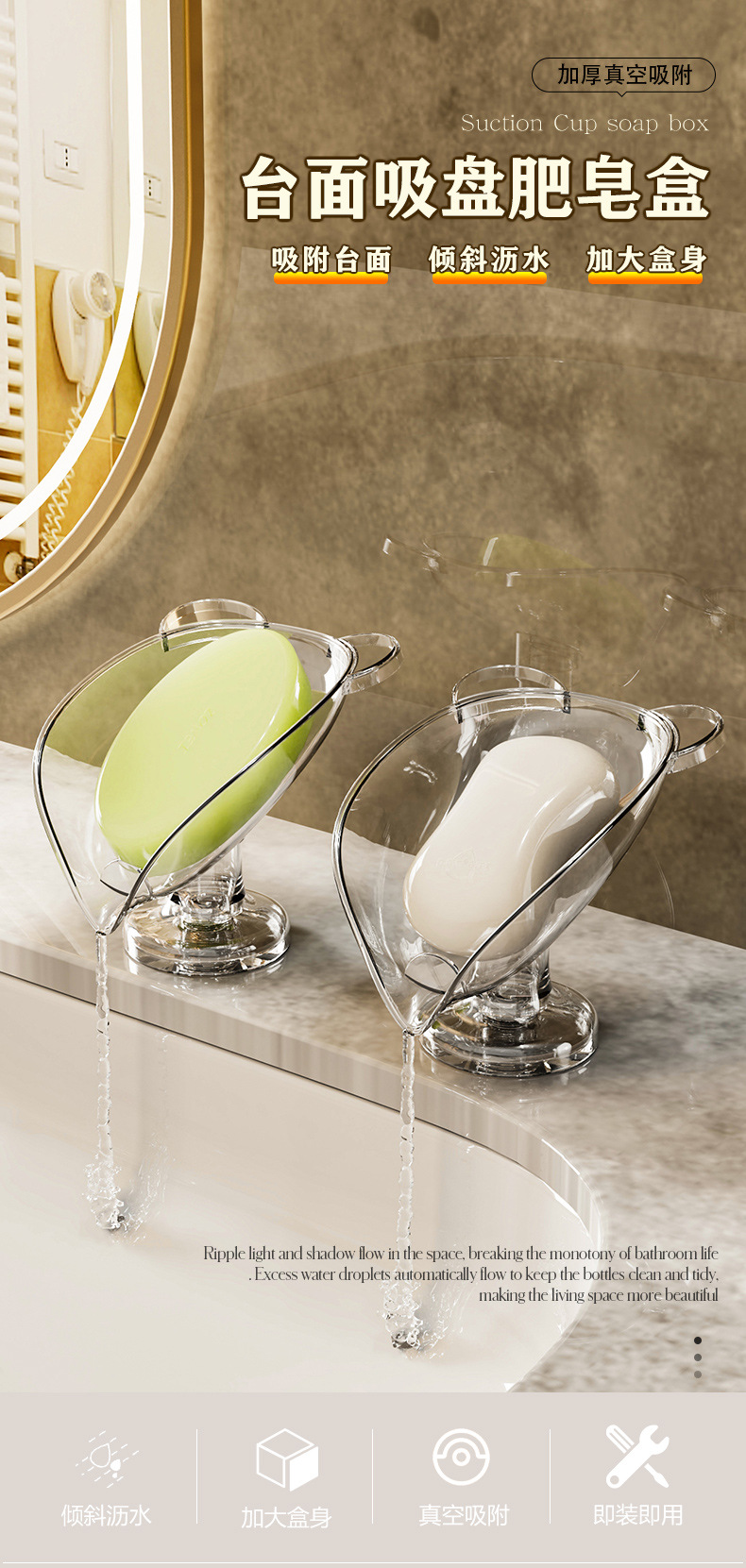 ZOWEI 테이블탑 흡착식 비누받침대 가정용 배수형 무타공 고급 욕실 비누홀더 욕실 수납 선반