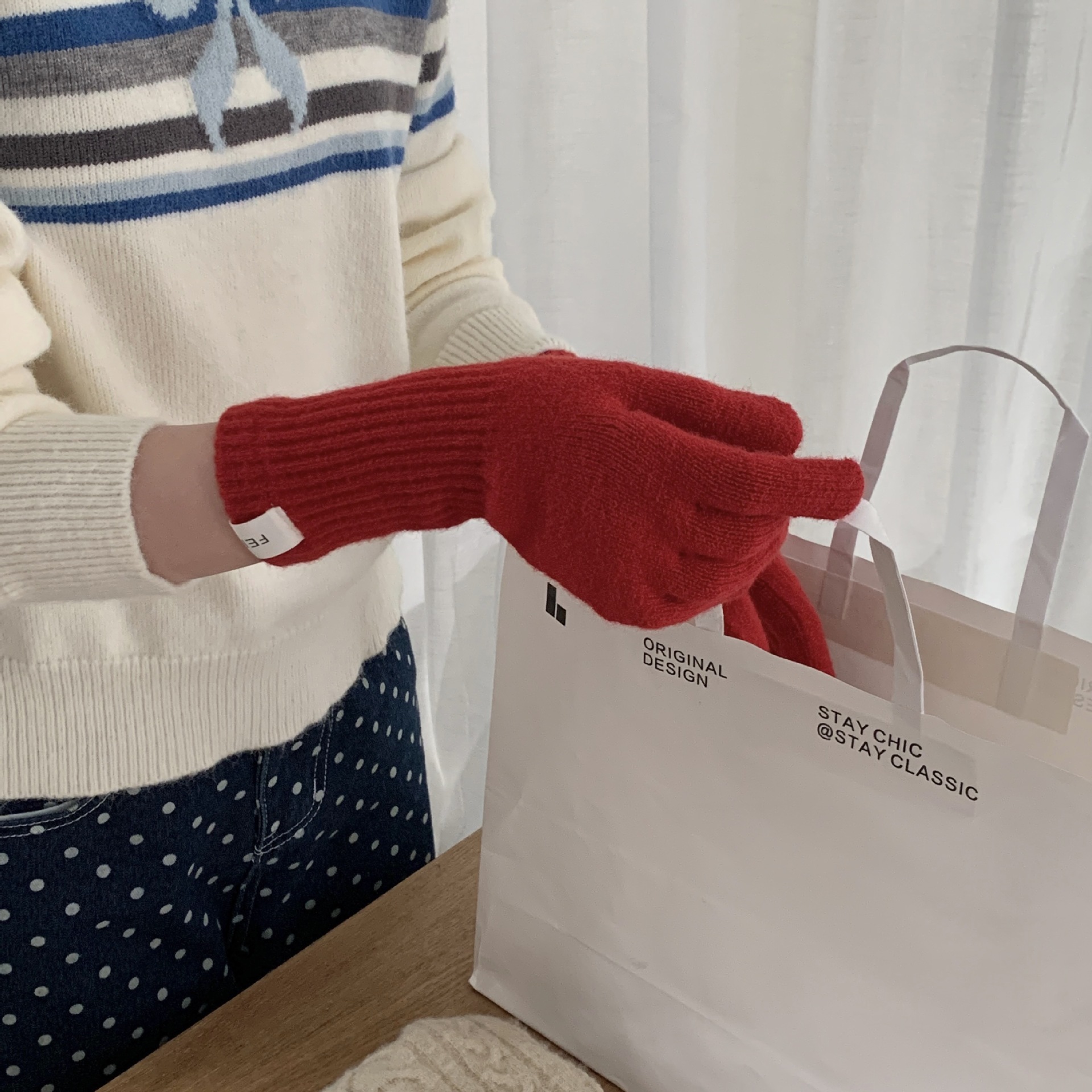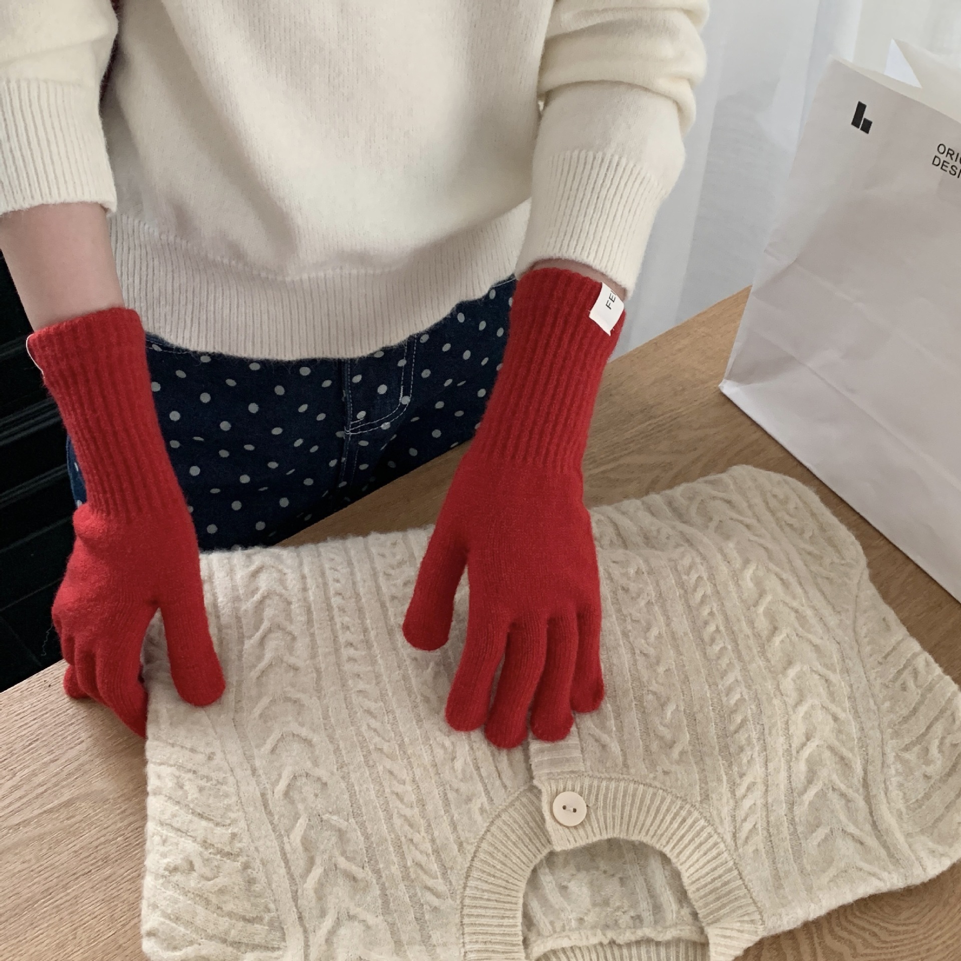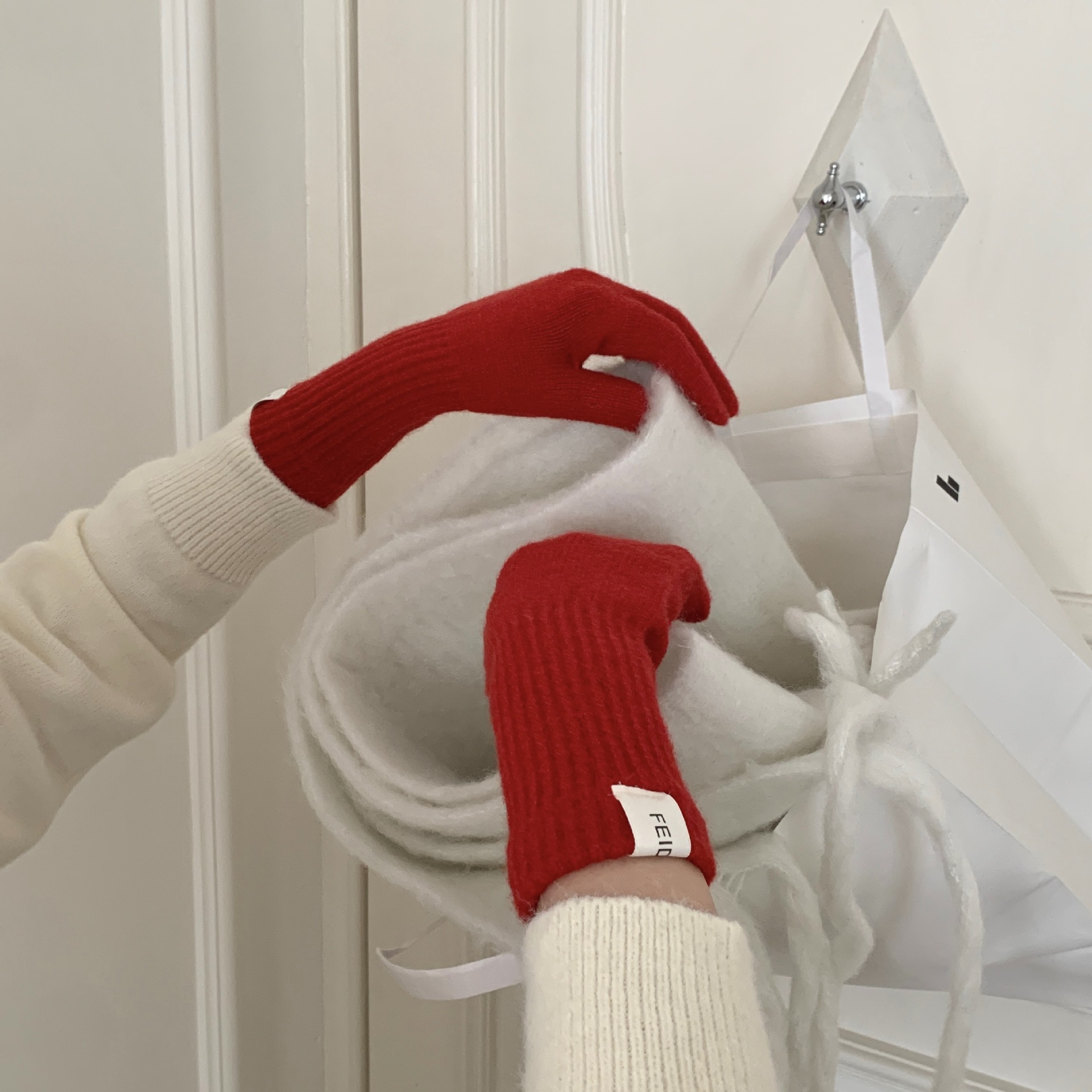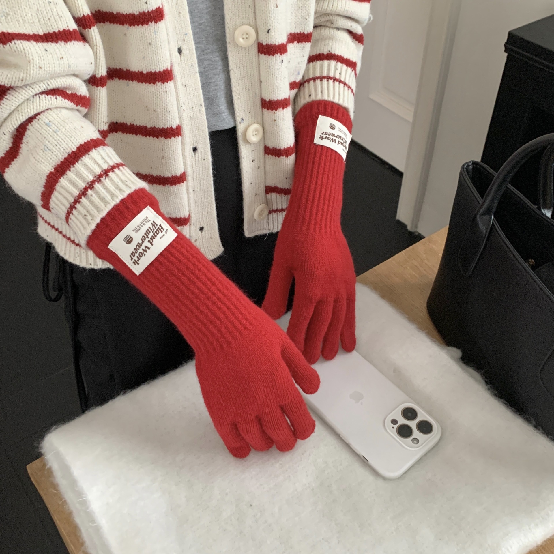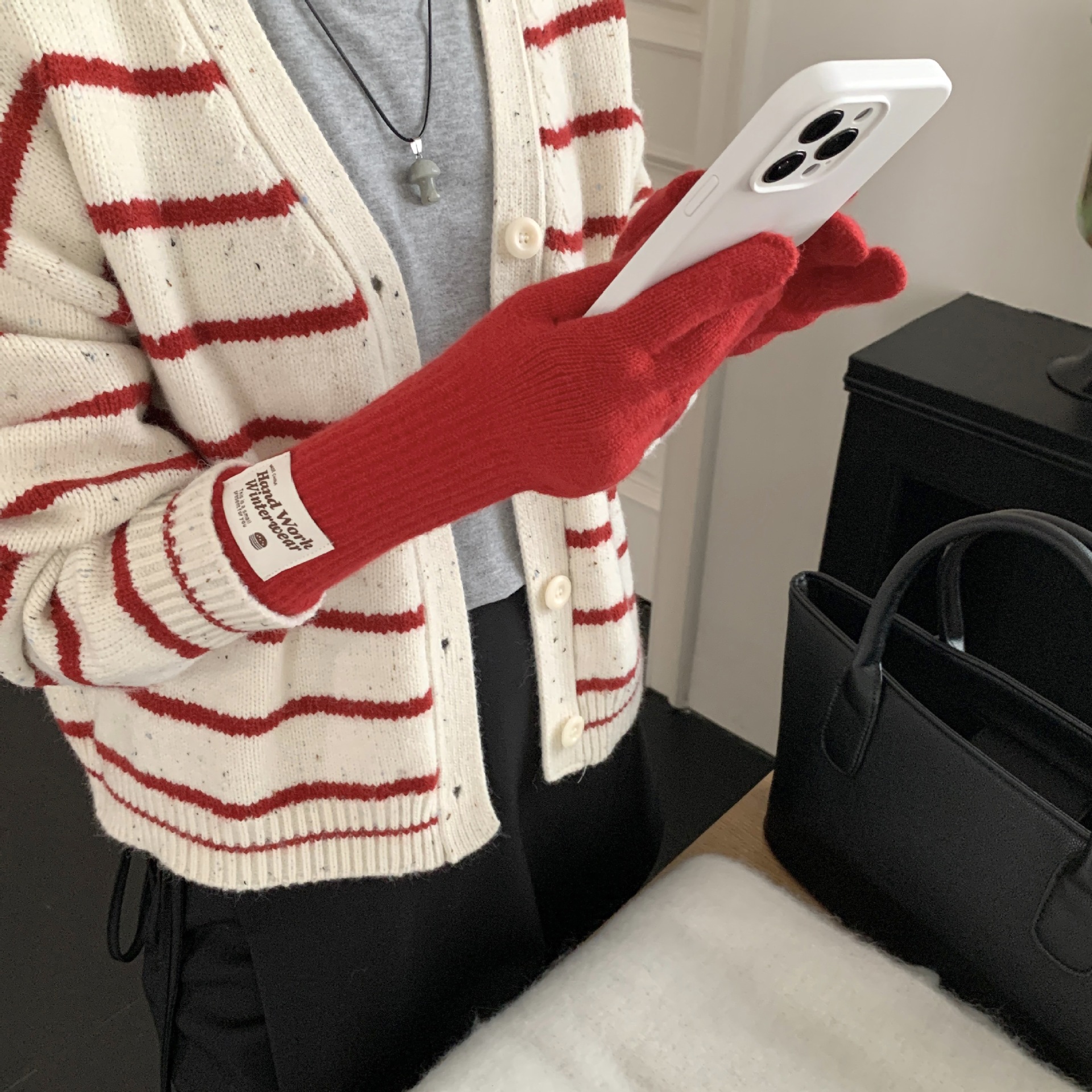 새해 크리스마스 레드 시리즈 장갑 여성용 양모 니트 익사 터치 스크린 5 손가락 방풍 따뜻한 올 매치 패션