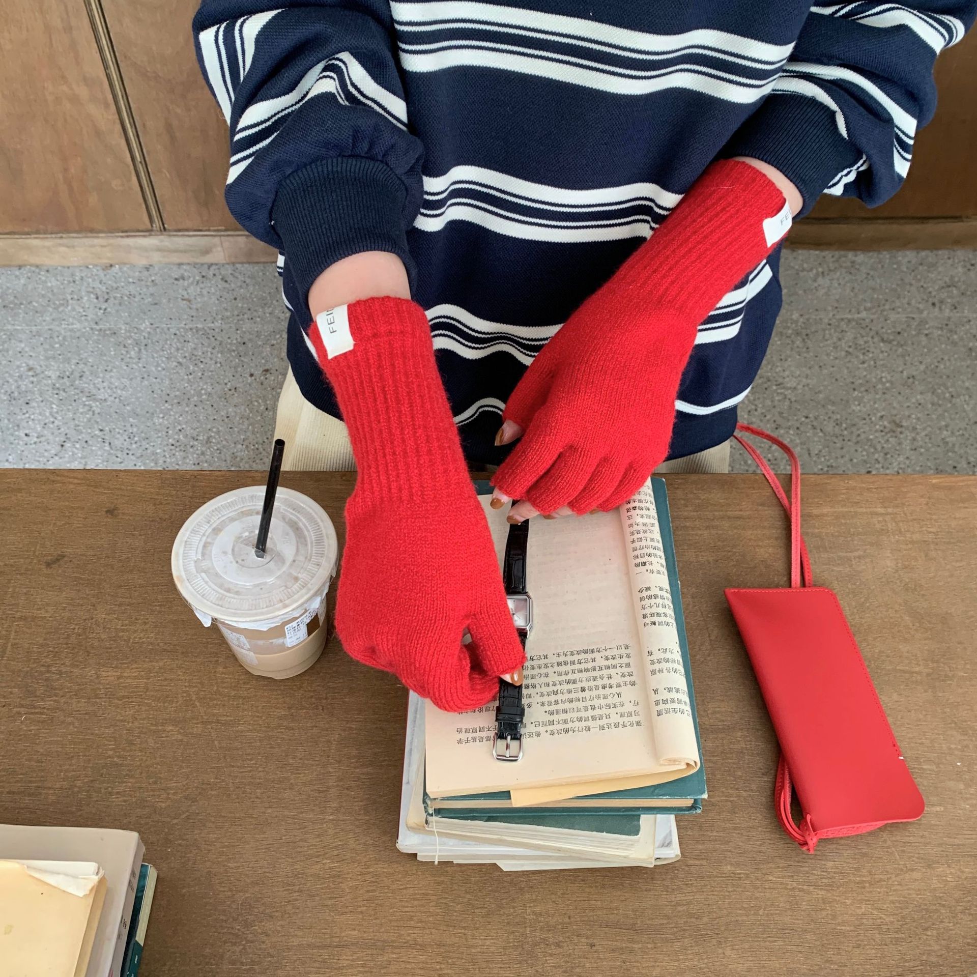 새해 크리스마스 레드 시리즈 장갑 여성용 양모 니트 익사 터치 스크린 5 손가락 방풍 따뜻한 올 매치 패션스토어 가기