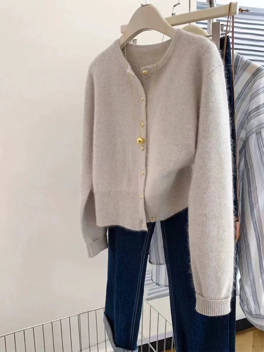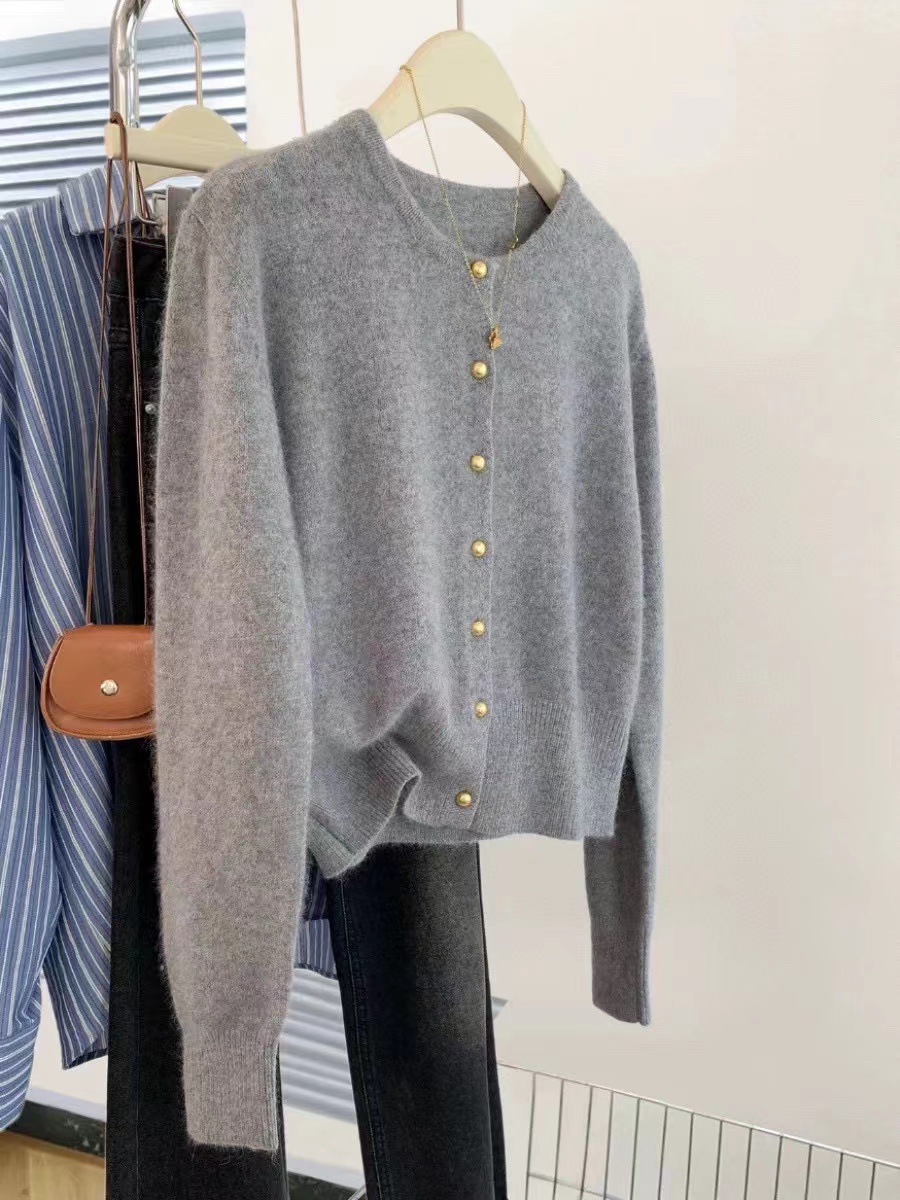 이지아! 가을과 겨울 새로운 100% 순수 양모 카디건 여성 크루 넥 카디건 슈퍼 파이어 CEC 코트 니트 스웨터스토어 가기
