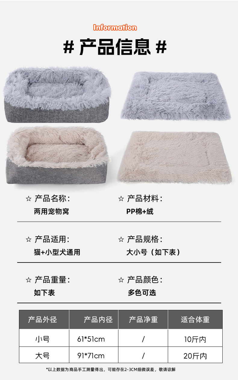 국경 간 고양이 둥지 애완 동물 매트 이중 사용 개 둥지 고양이 매트 긴 머리 따뜻한 벨벳 고양이 매트리스 애완 동물 둥지 가을 겨울 둥지 매트스토어 가기