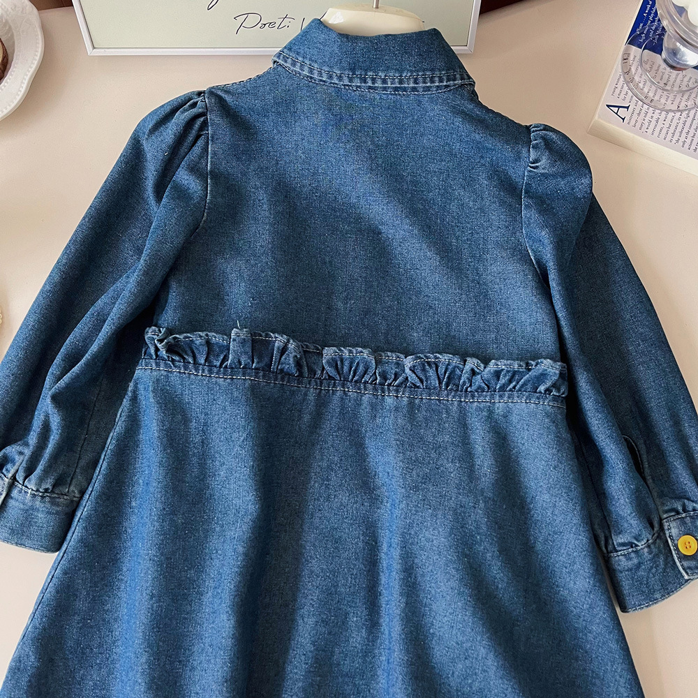 2024 가을 새로운 한국 여자 해바라기 데님 긴 소매 원피스 아기 소녀 귀여운 치마 도매