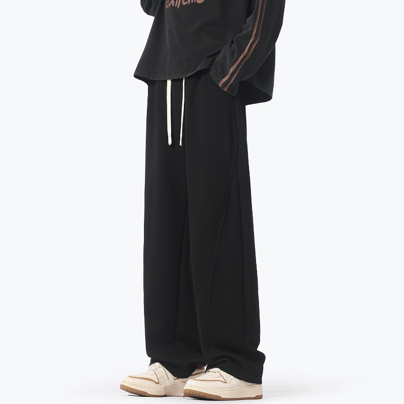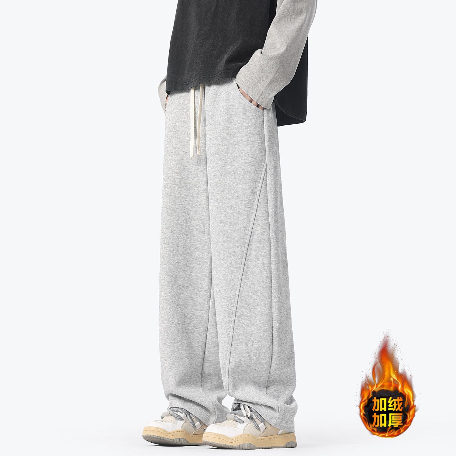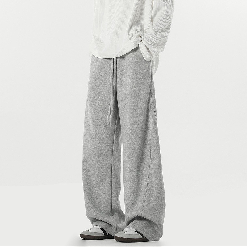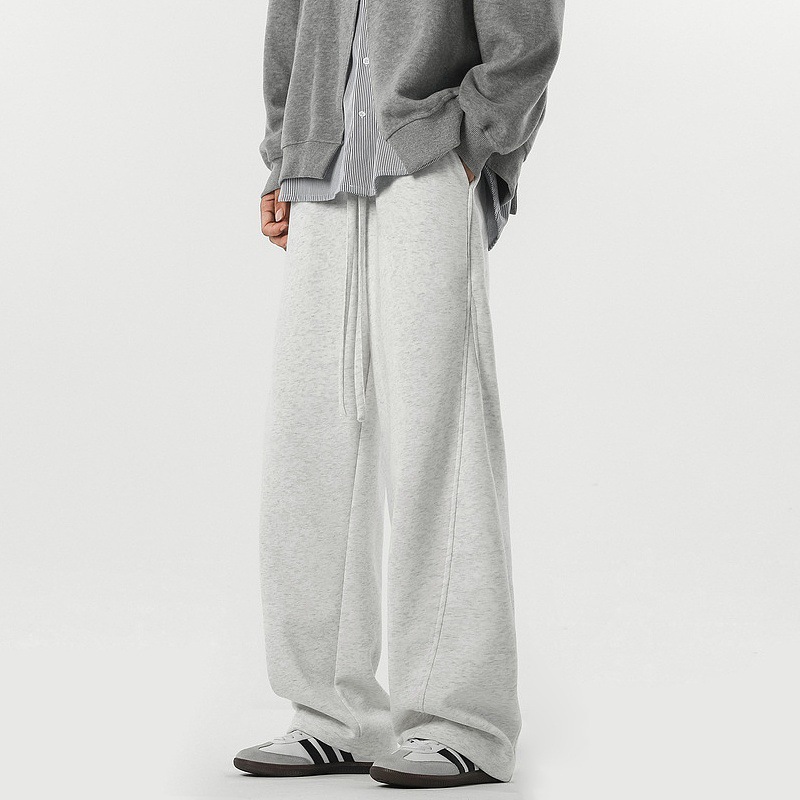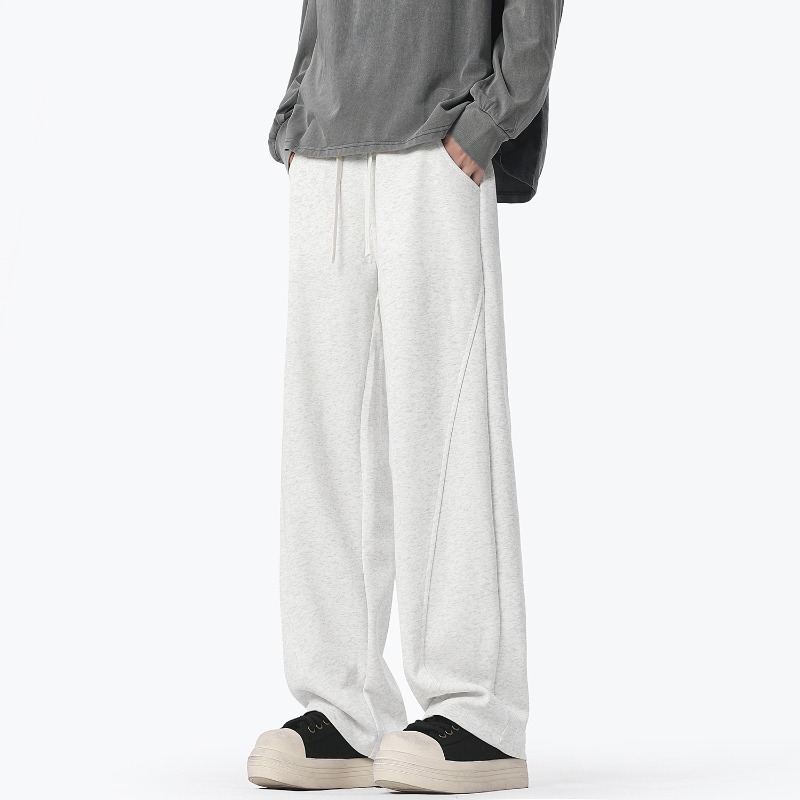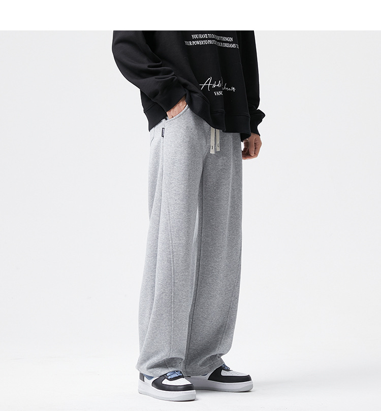 남성용 바지 봄 여름 가을 바지 그레이 드레이프 스트레이트 팬츠 남성용 루즈 캐주얼 스포츠 바지 남성용 와이드 레그 스웨트 팬츠