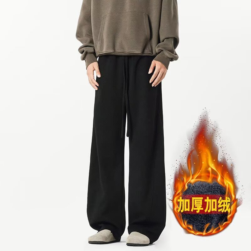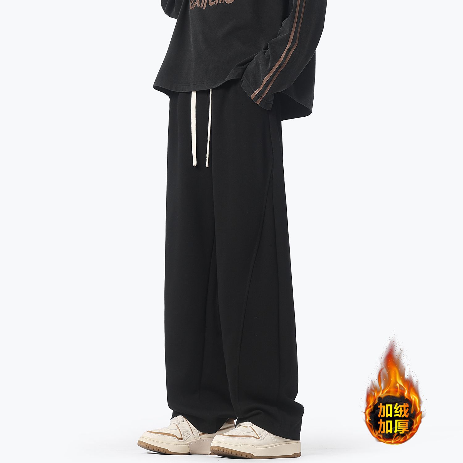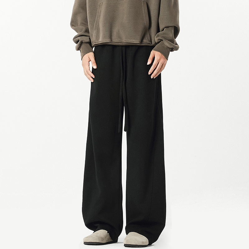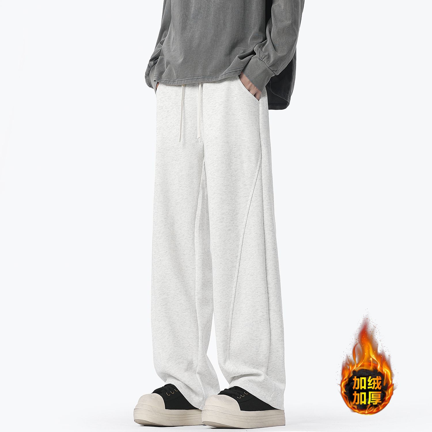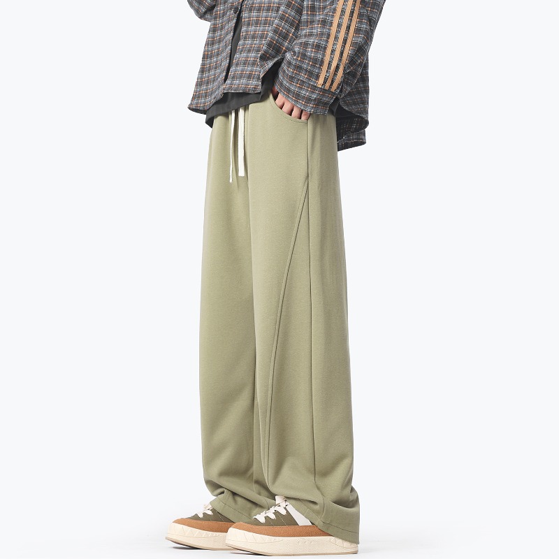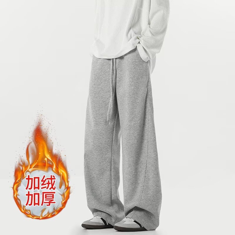 남성용 바지 봄 여름 가을 바지 그레이 드레이프 스트레이트 팬츠 남성용 루즈 캐주얼 스포츠 바지 남성용 와이드 레그 스웨트 팬츠
