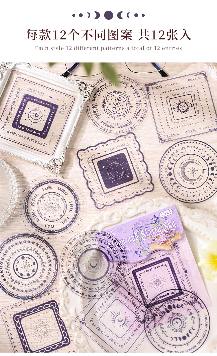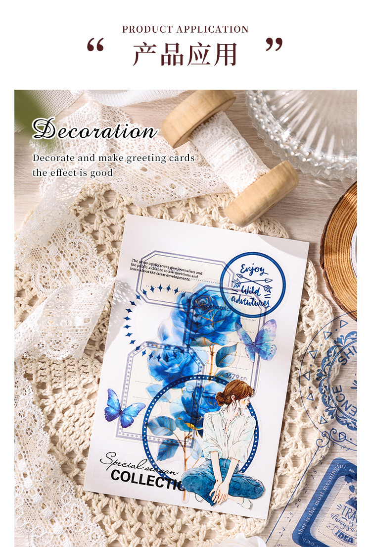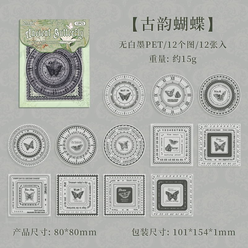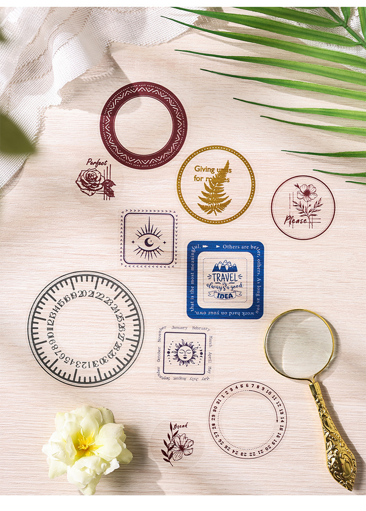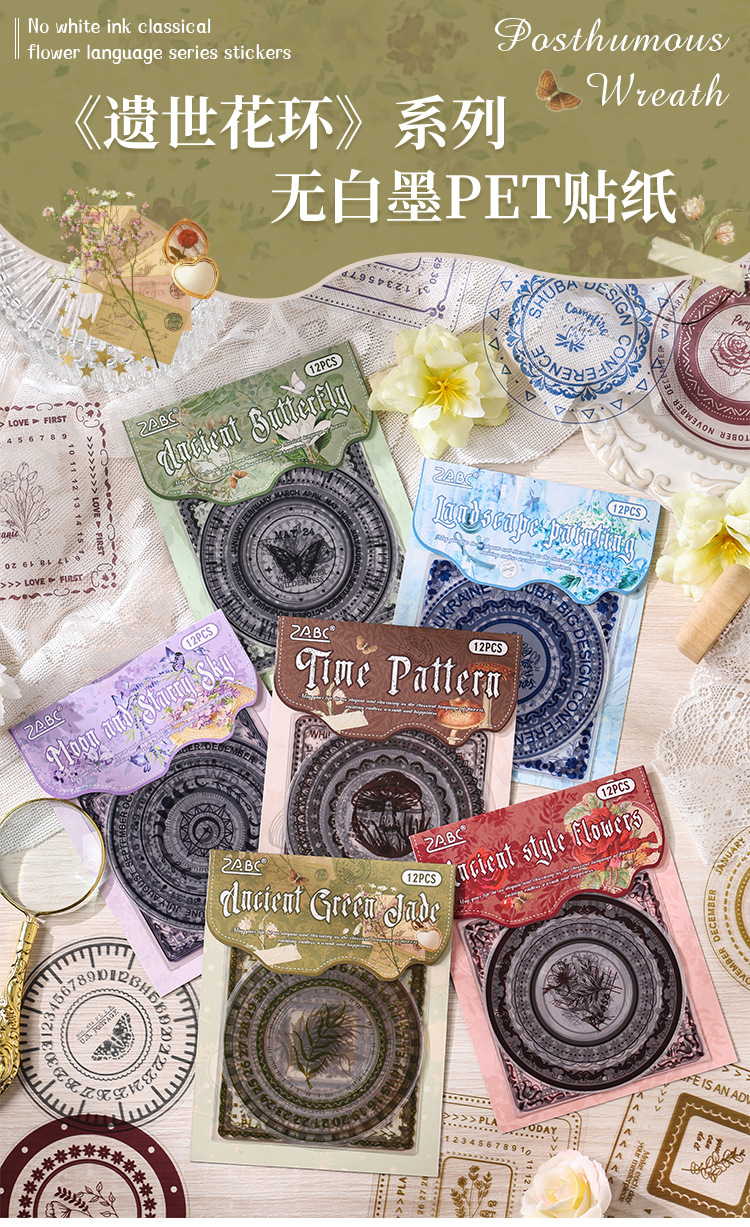ZABC 국경 화이트 잉크 프리 PET 스티커 팩 레거시 플라워 링 시리즈 12 빈티지베이스 스티커 6