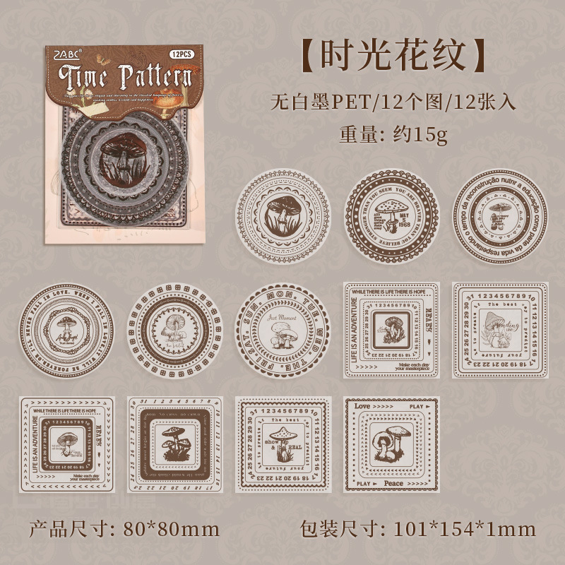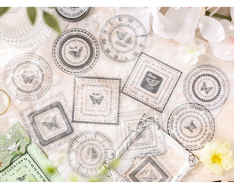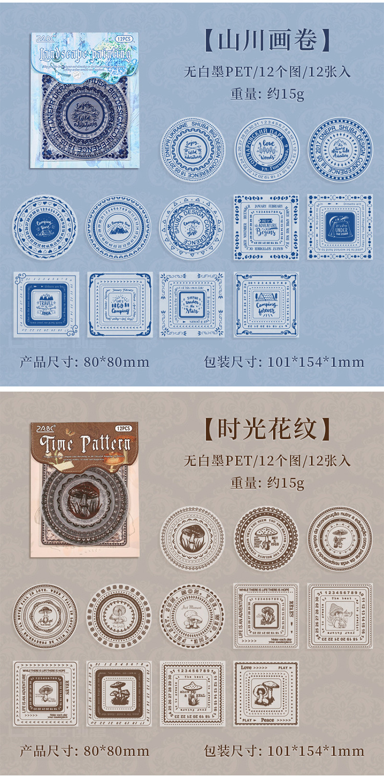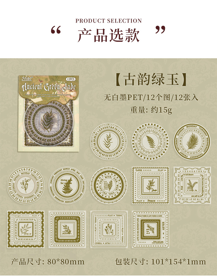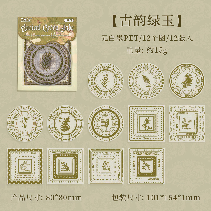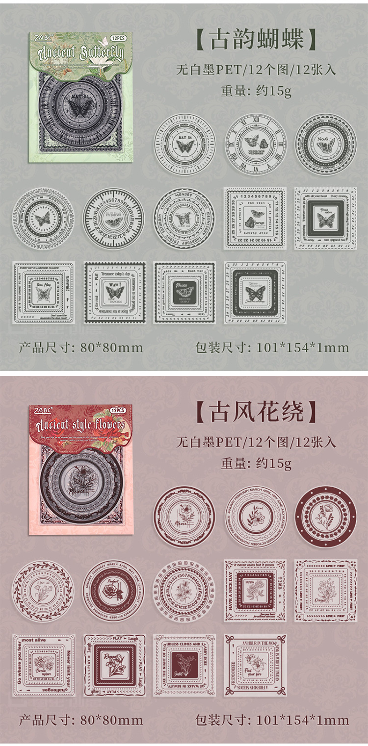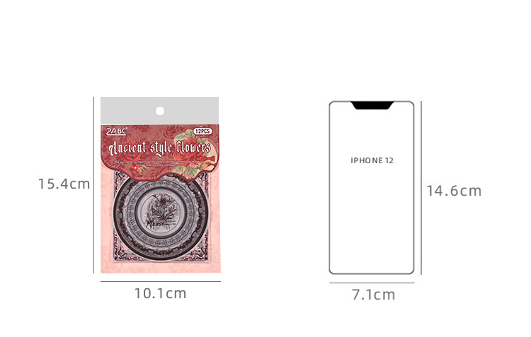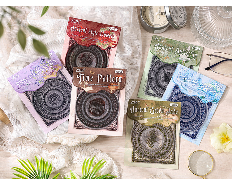 ZABC 국경 화이트 잉크 프리 PET 스티커 팩 레거시 플라워 링 시리즈 12 빈티지베이스 스티커 6스토어 가기
