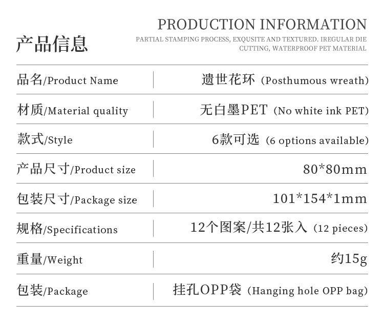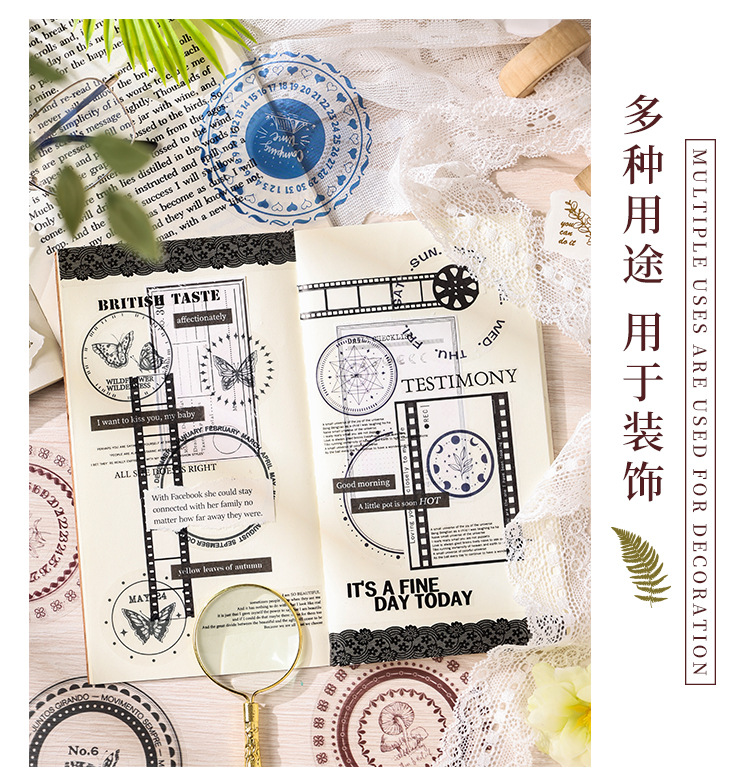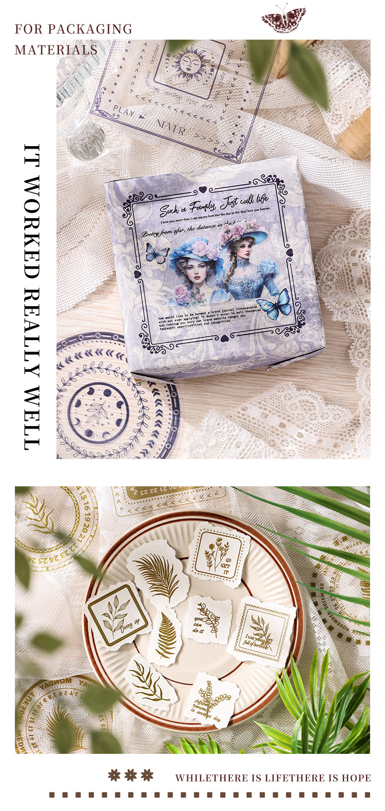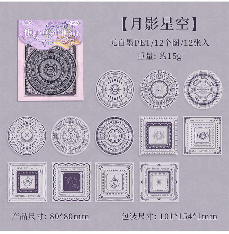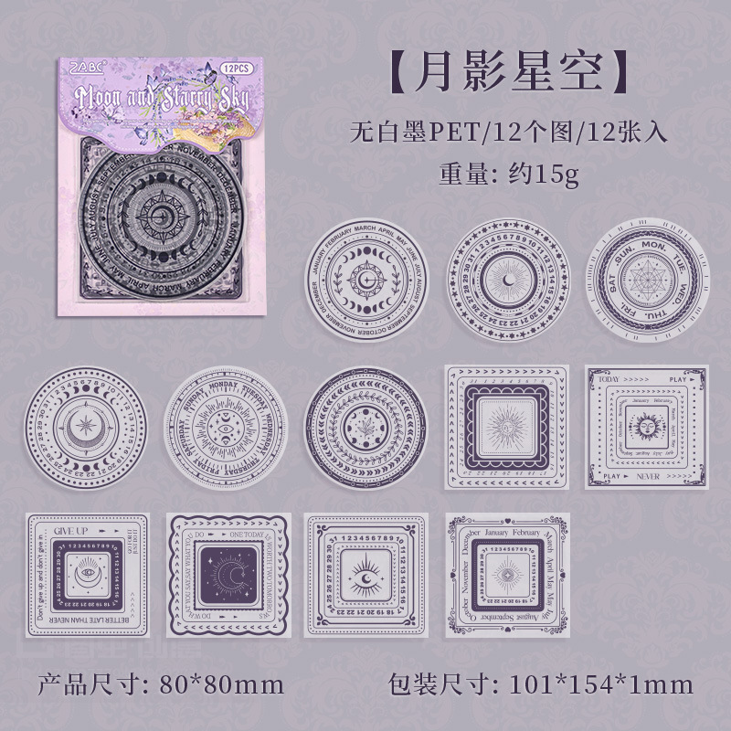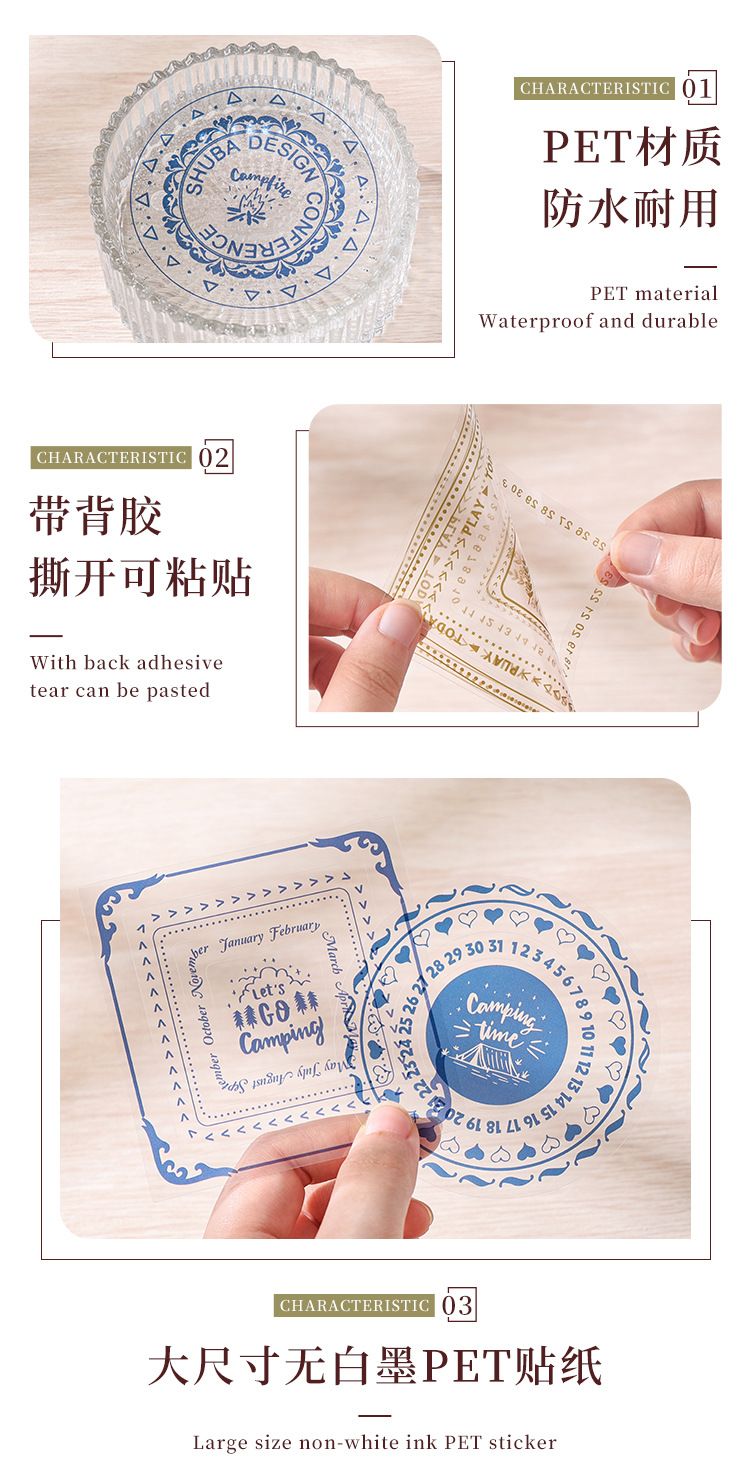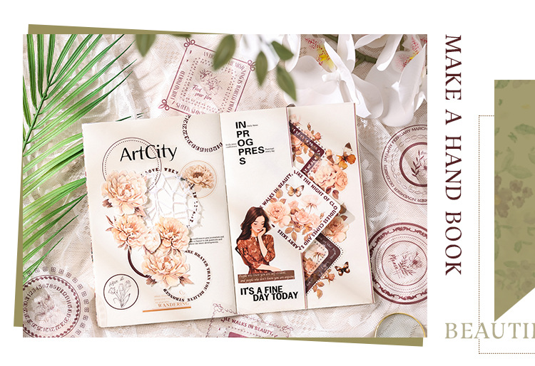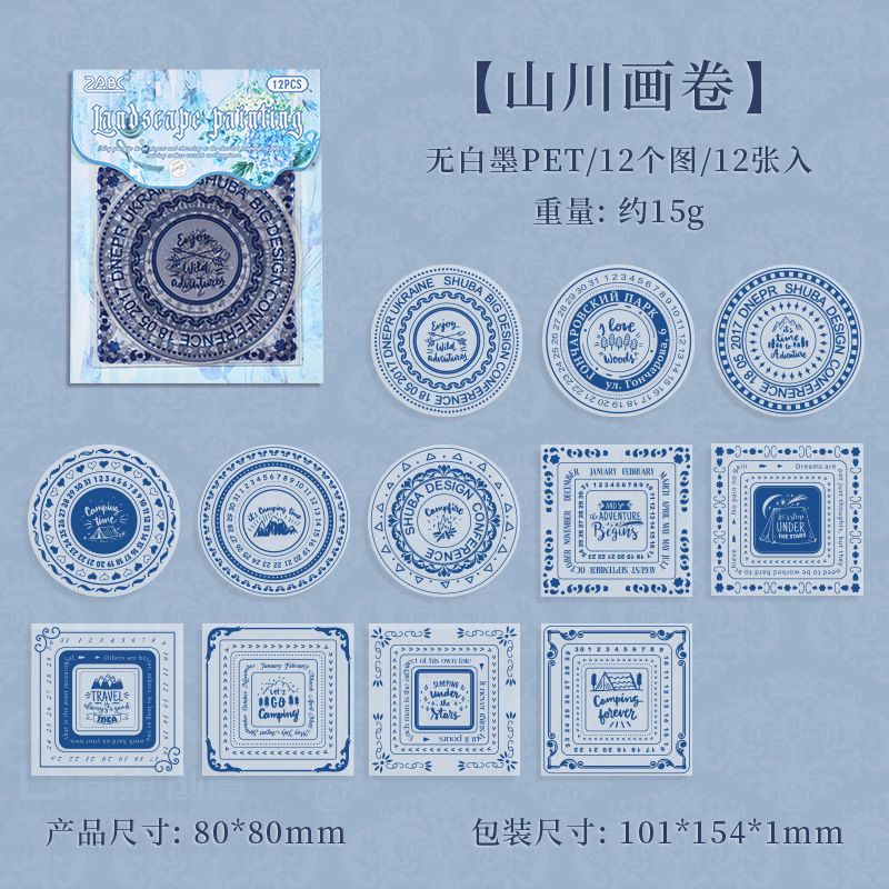 ZABC 국경 화이트 잉크 프리 PET 스티커 팩 레거시 플라워 링 시리즈 12 빈티지베이스 스티커 6스토어 가기