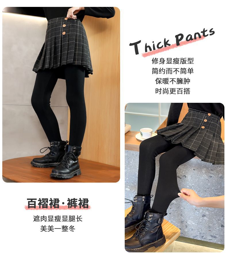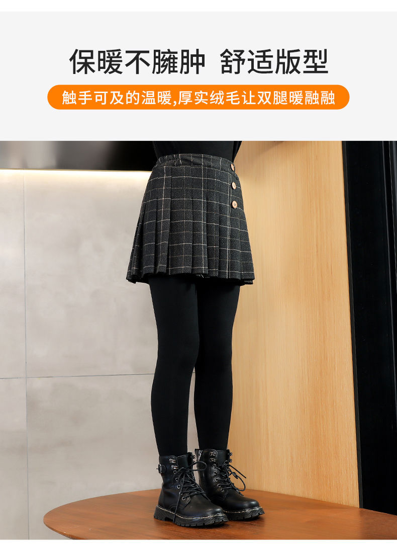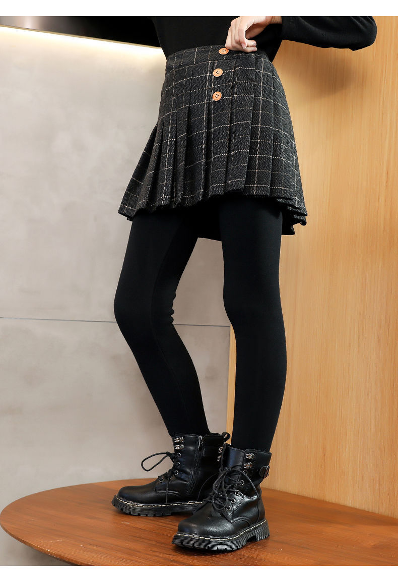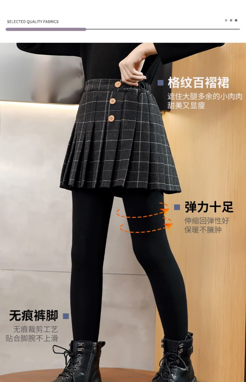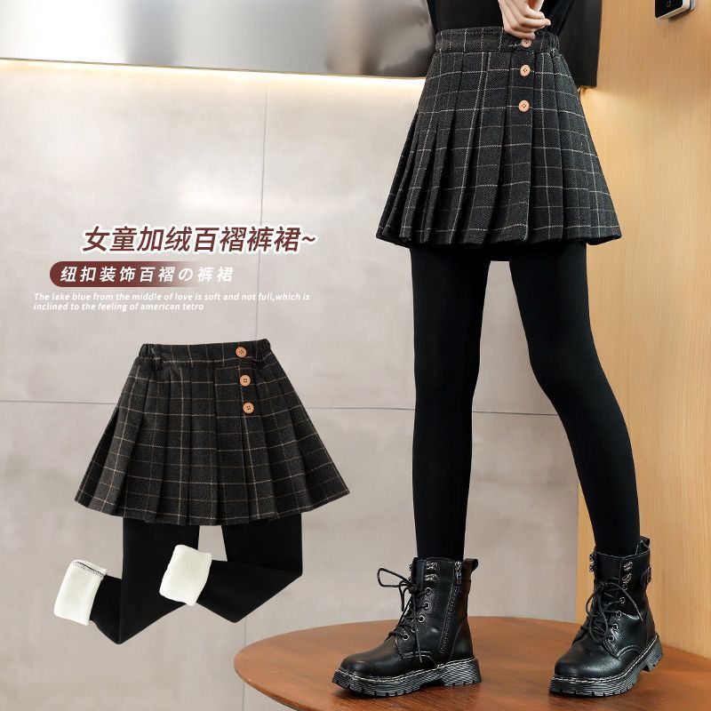 소녀 기모 레깅스 가을 겨울 치마 새 어린이 가짜 2 피스 스커트 주름 치마 큰 어린이 두꺼운 바지
