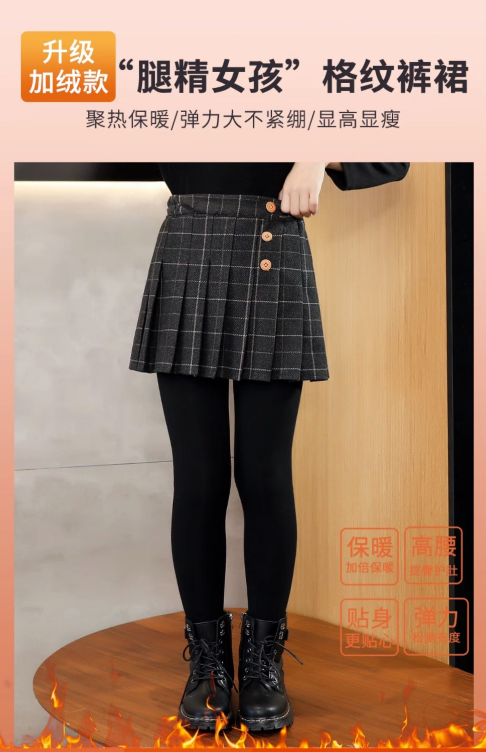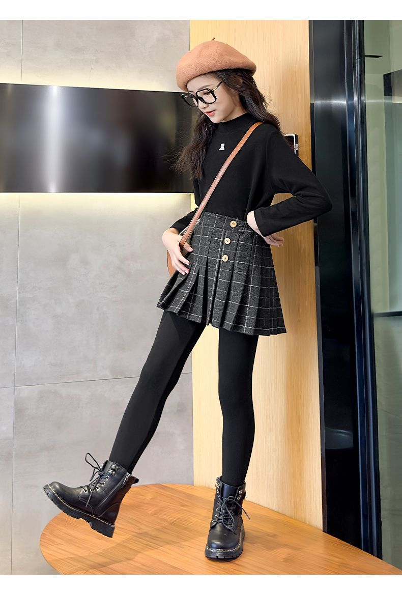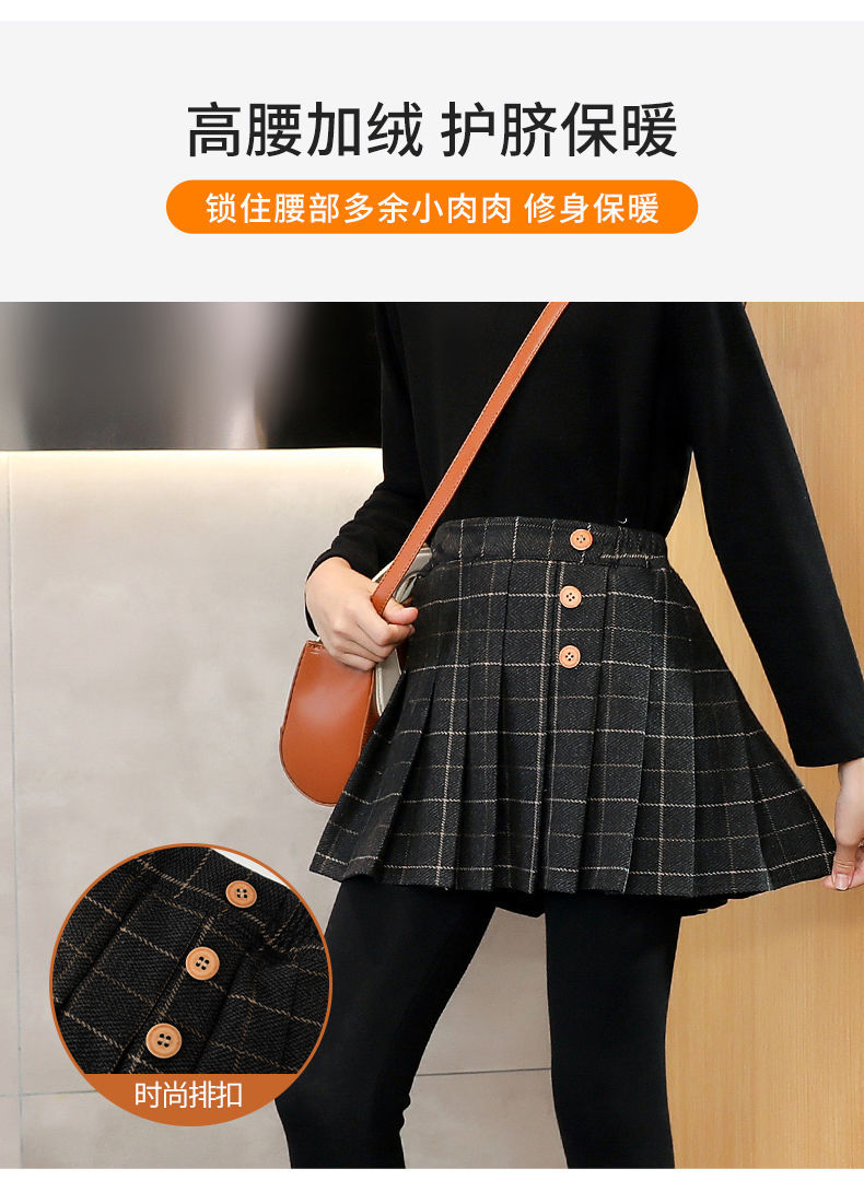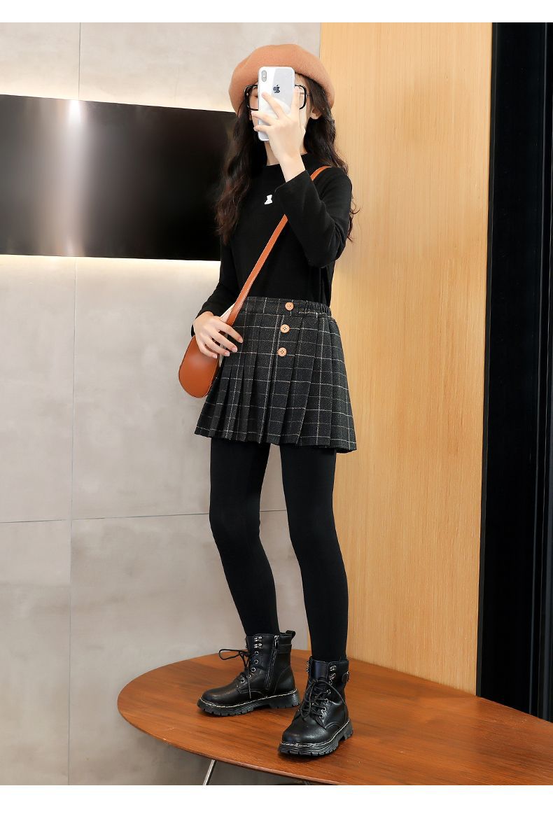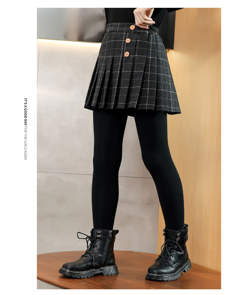 소녀 기모 레깅스 가을 겨울 치마 새 어린이 가짜 2 피스 스커트 주름 치마 큰 어린이 두꺼운 바지