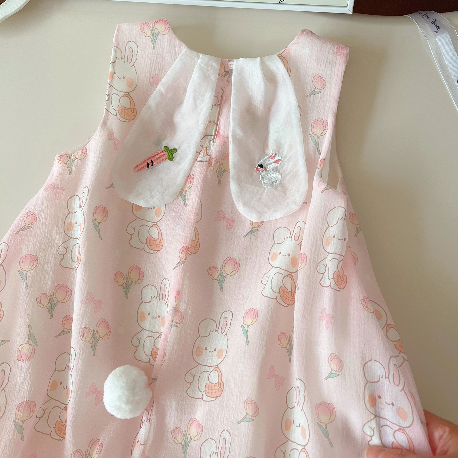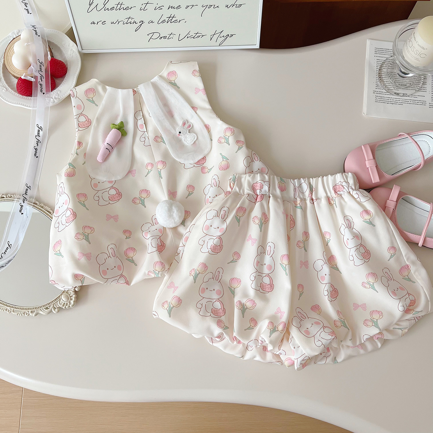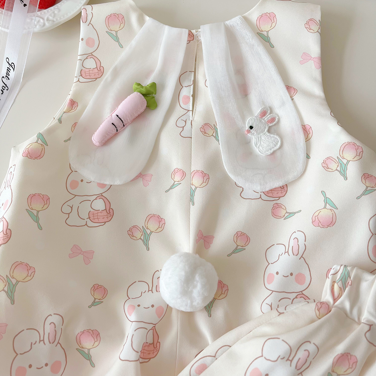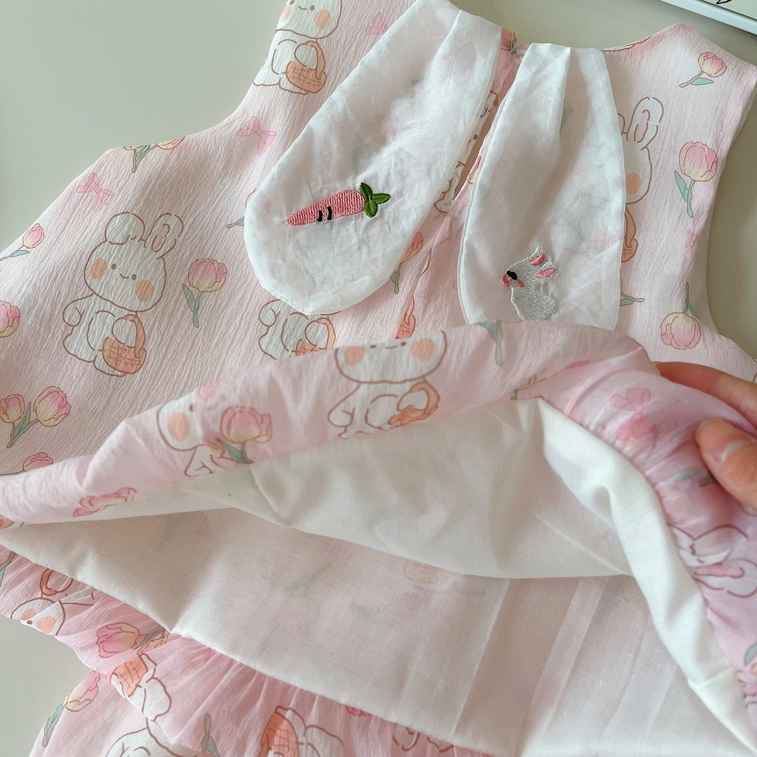 2024 년 여름 새로운 한국 여자 토끼 귀 꽃 봉오리 치마 소녀 자매 세트 원피스 197-198