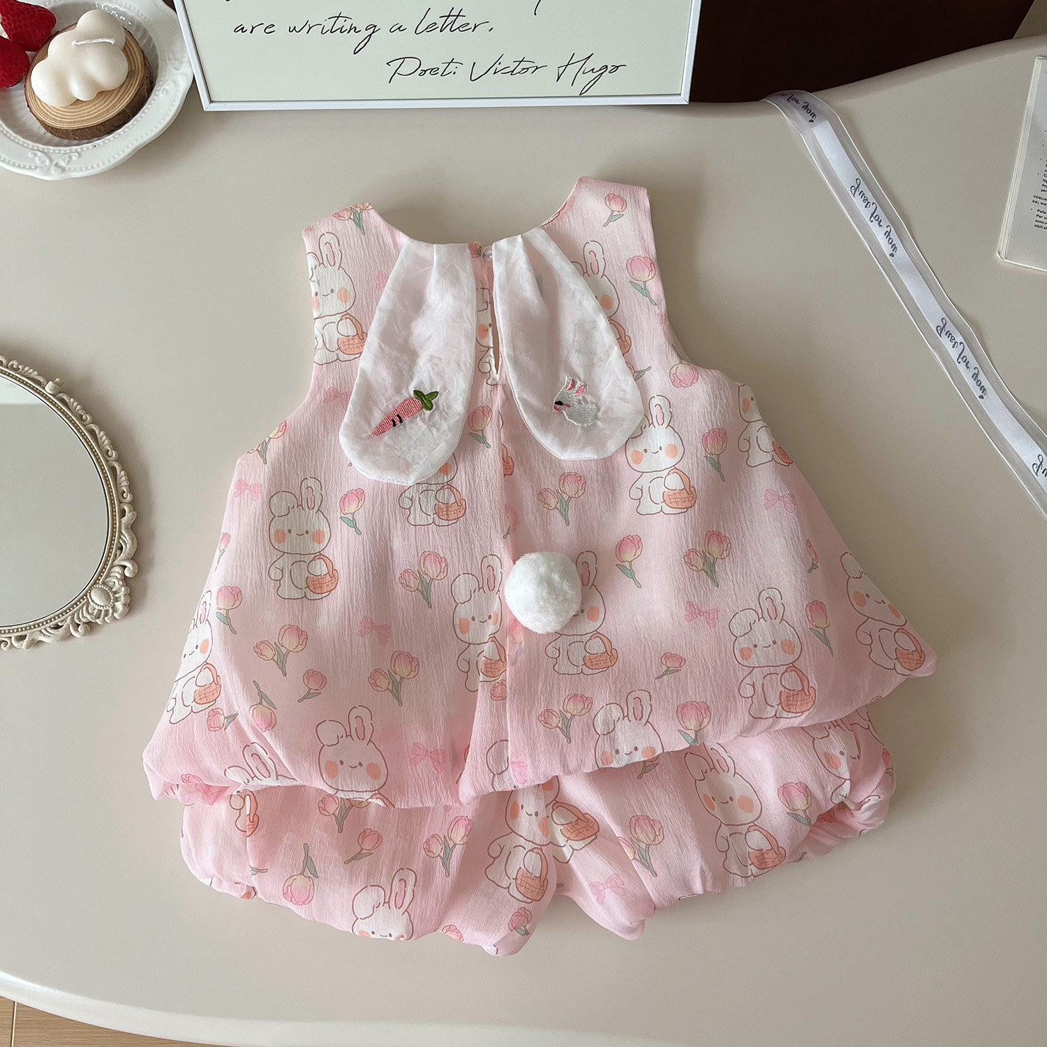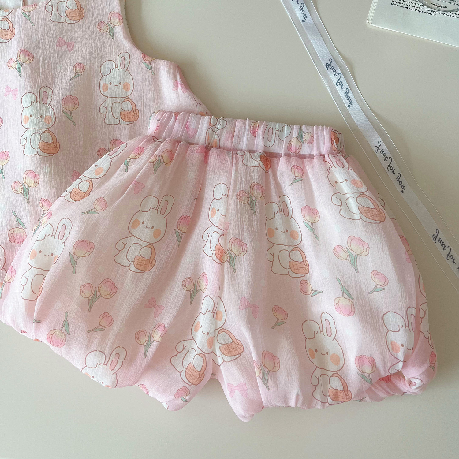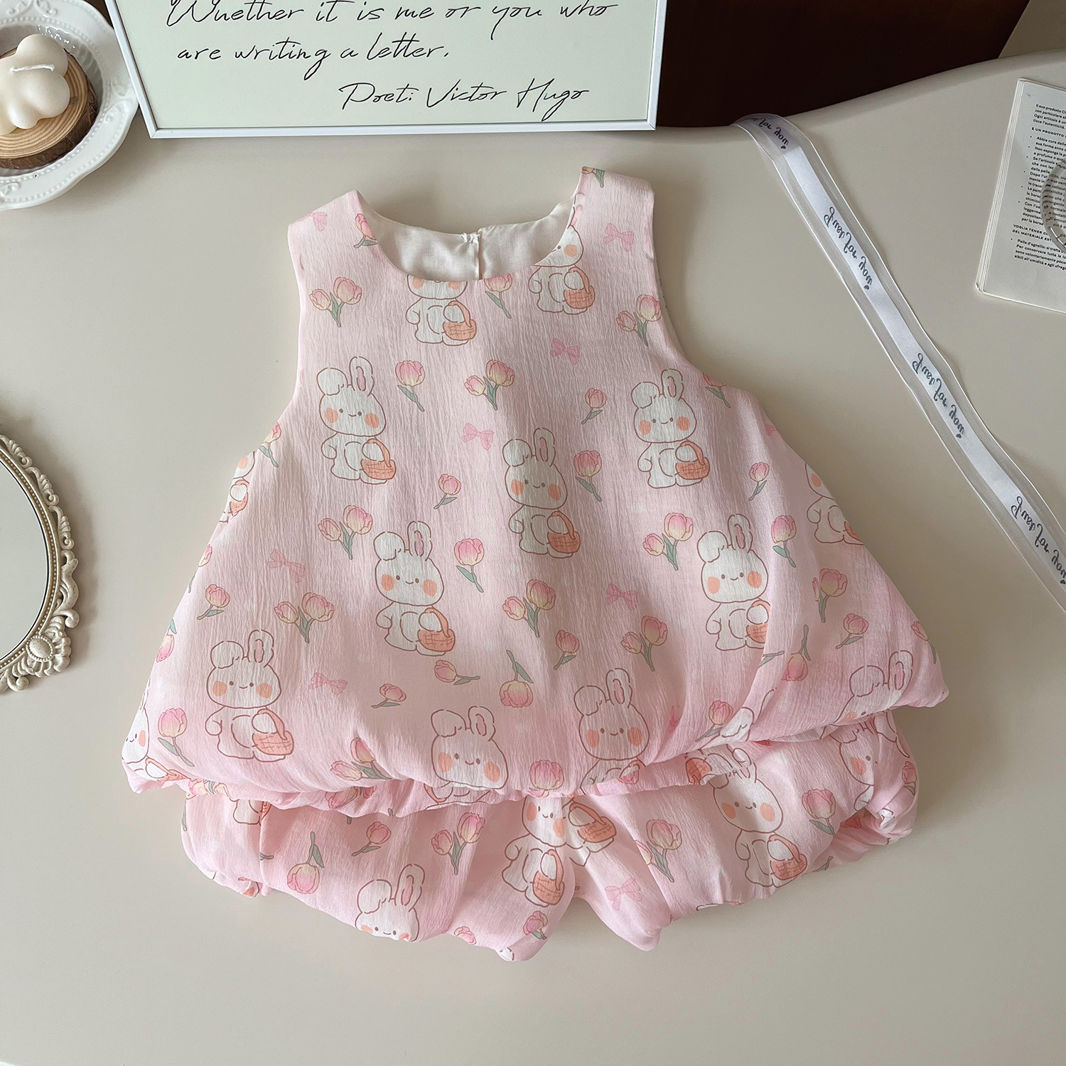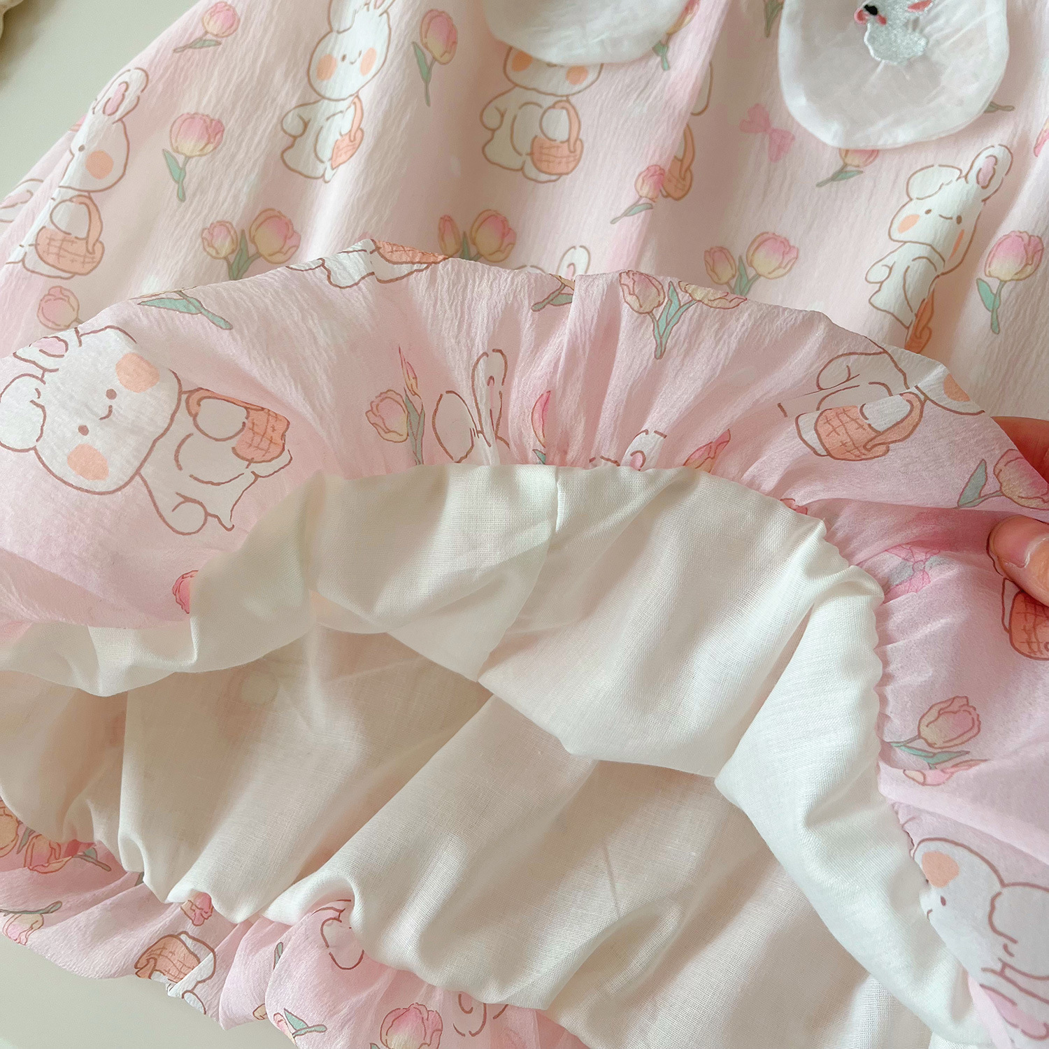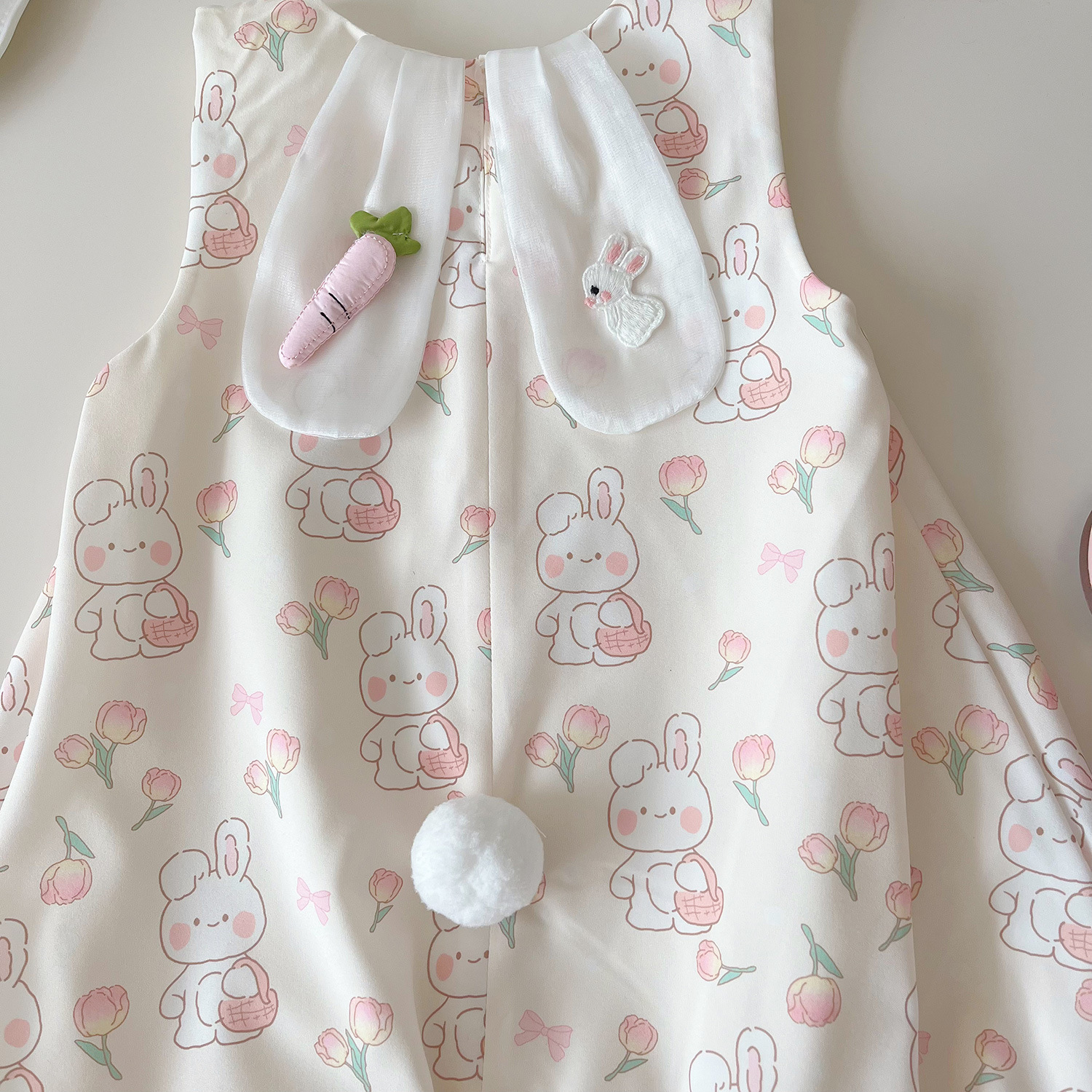 2024 년 여름 새로운 한국 여자 토끼 귀 꽃 봉오리 치마 소녀 자매 세트 원피스 197-198