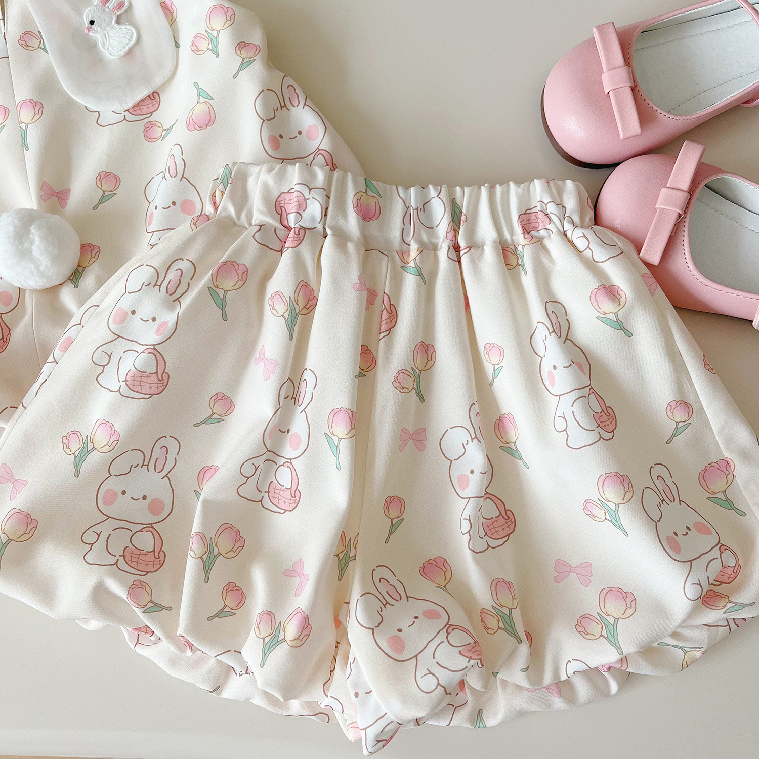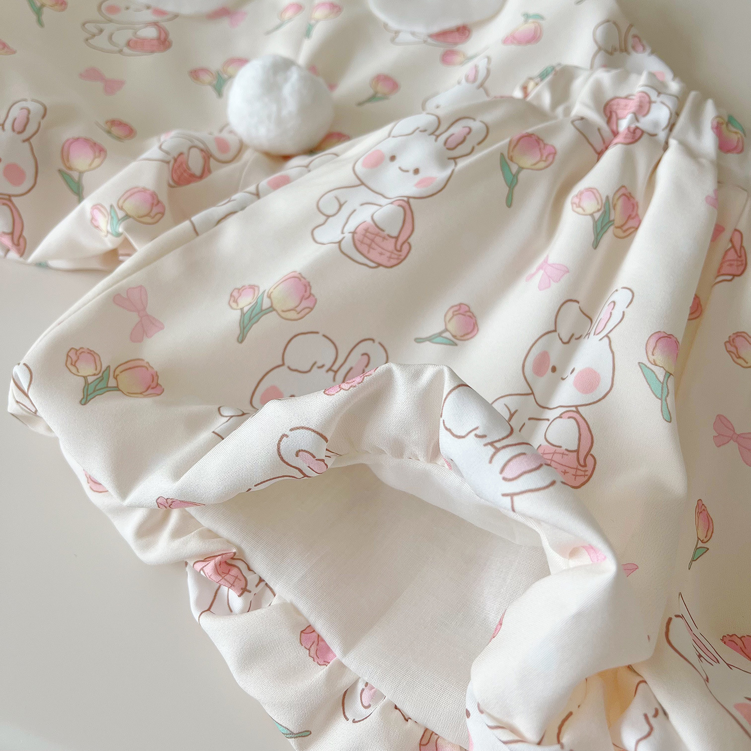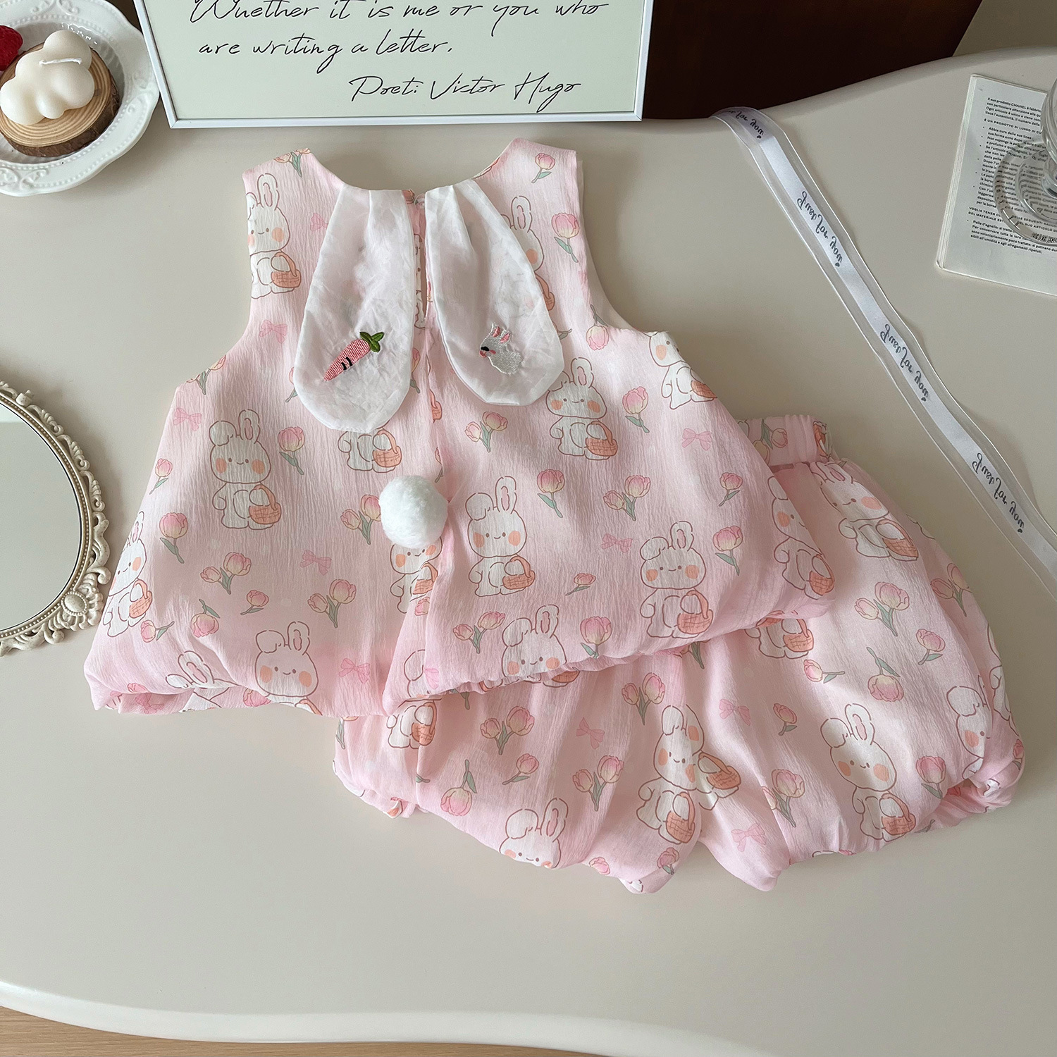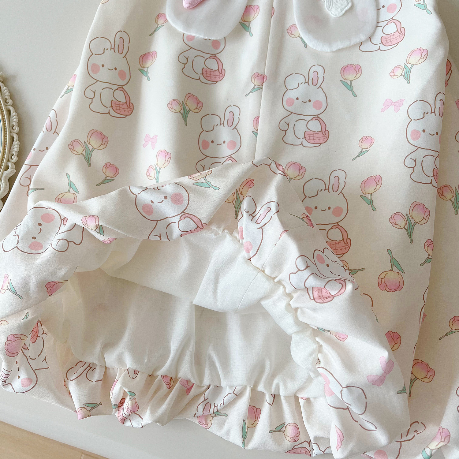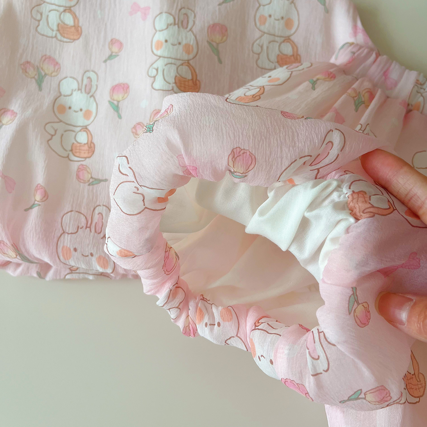 2024 년 여름 새로운 한국 여자 토끼 귀 꽃 봉오리 치마 소녀 자매 세트 원피스 197-198