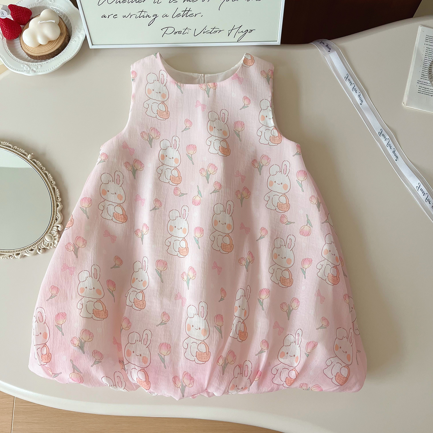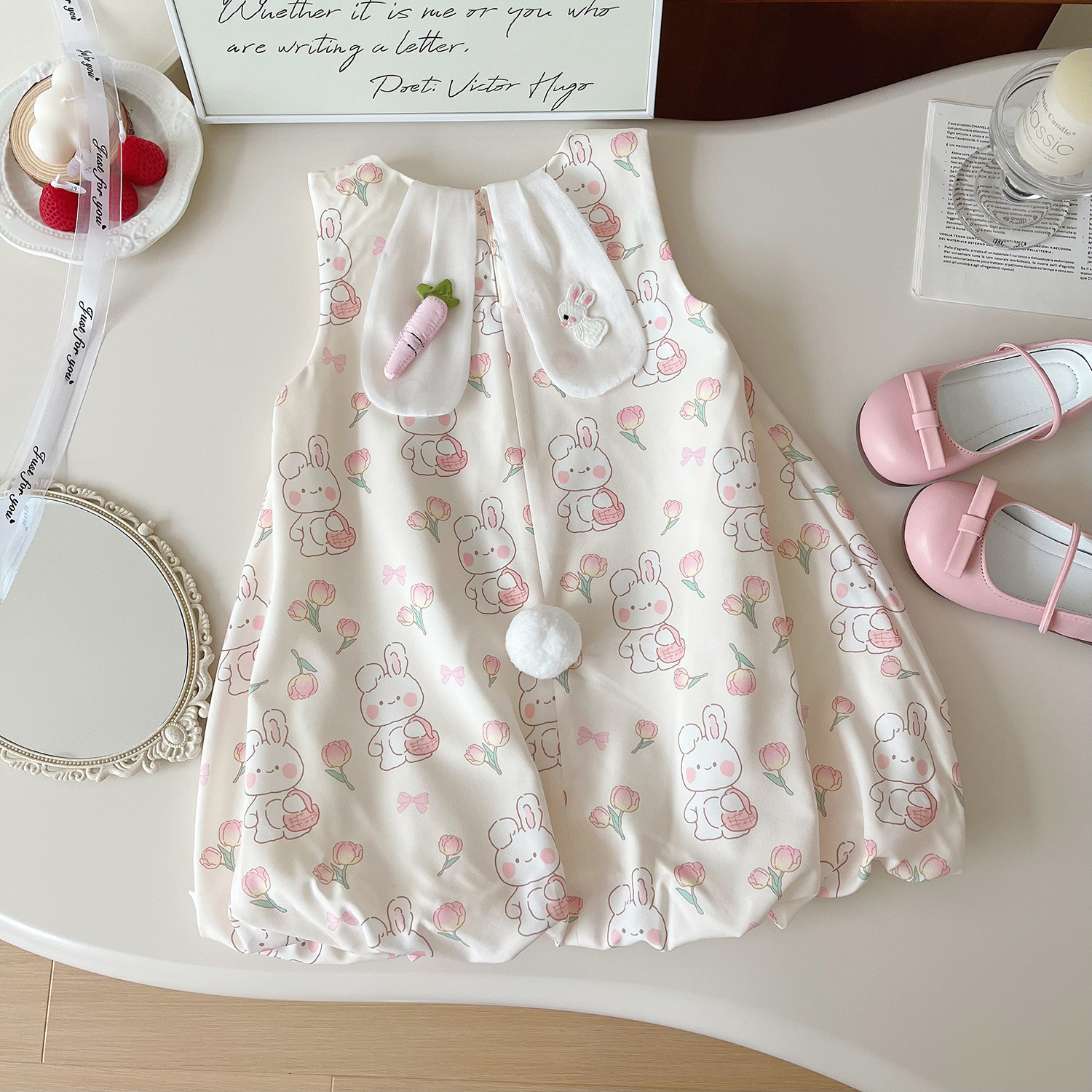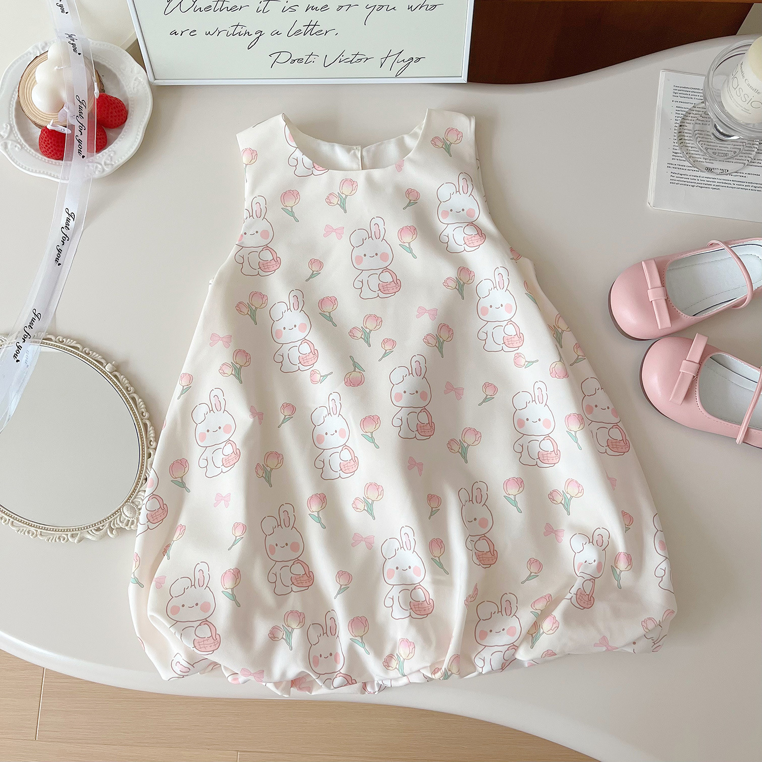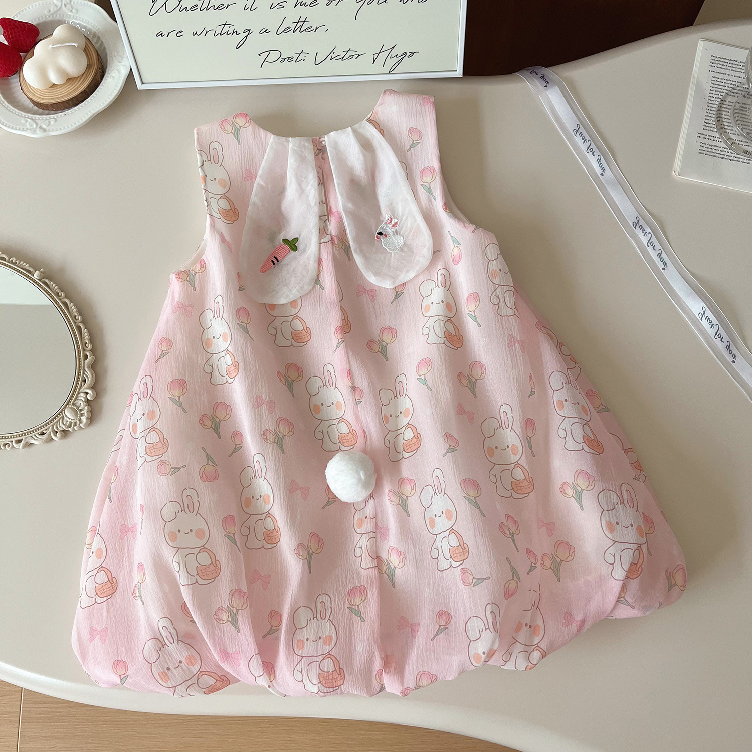 2024 년 여름 새로운 한국 여자 토끼 귀 꽃 봉오리 치마 소녀 자매 세트 원피스 197-198스토어 가기