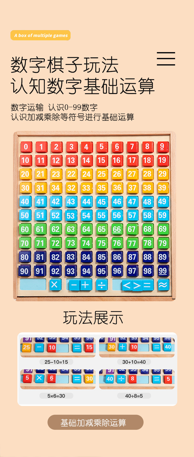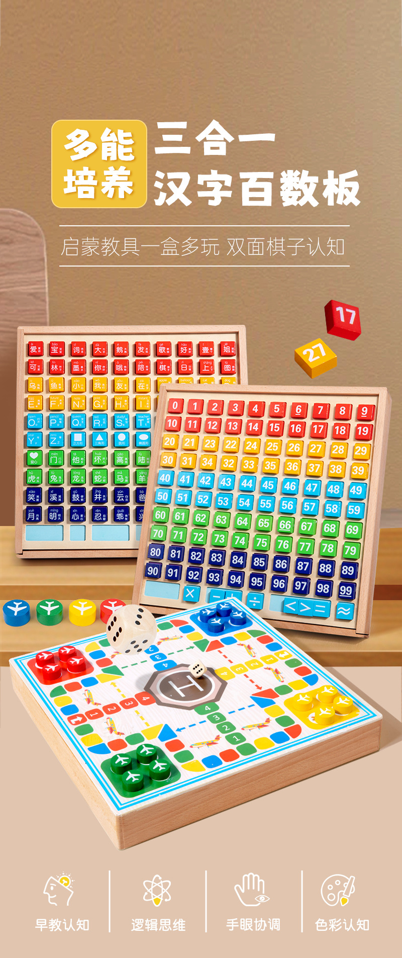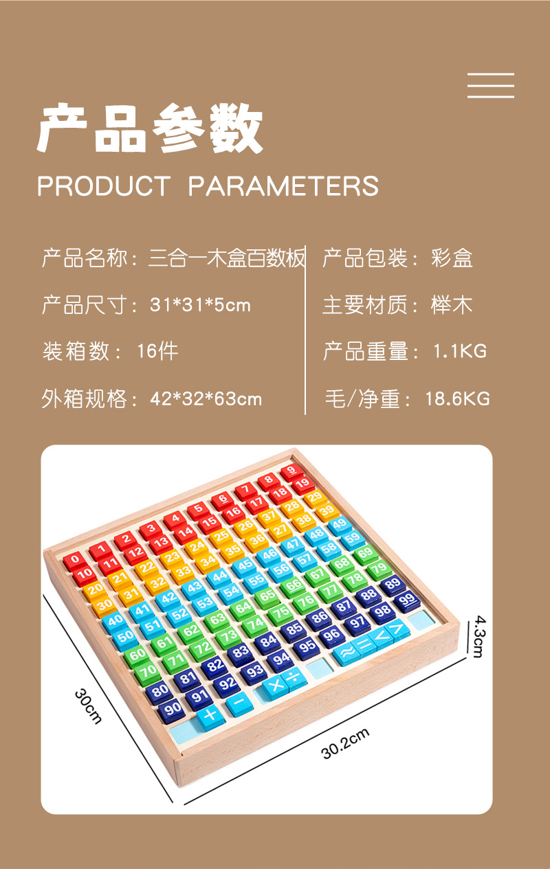 产品名称:三合一木盒百数板