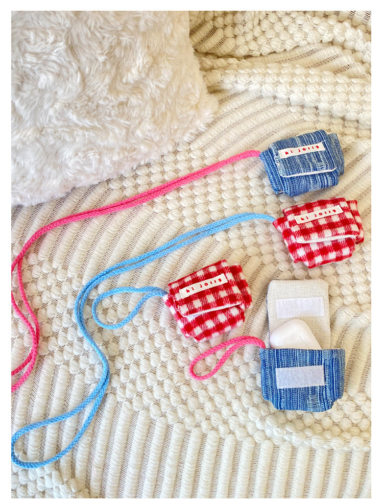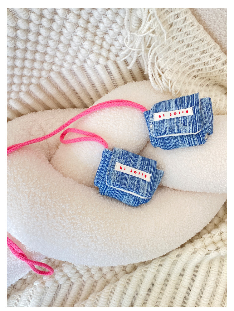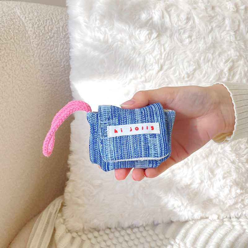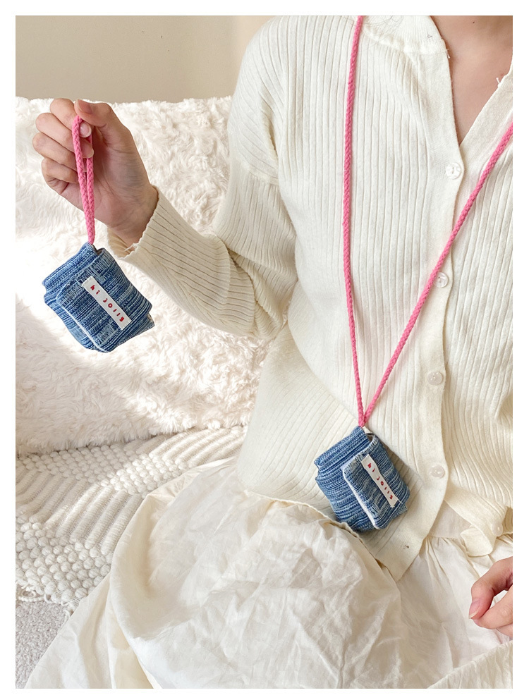 • 데님 헤드폰 가방 짧은 로프 스타일