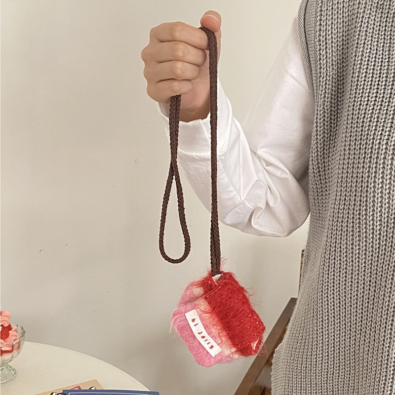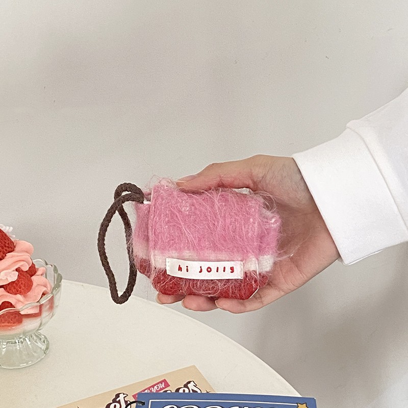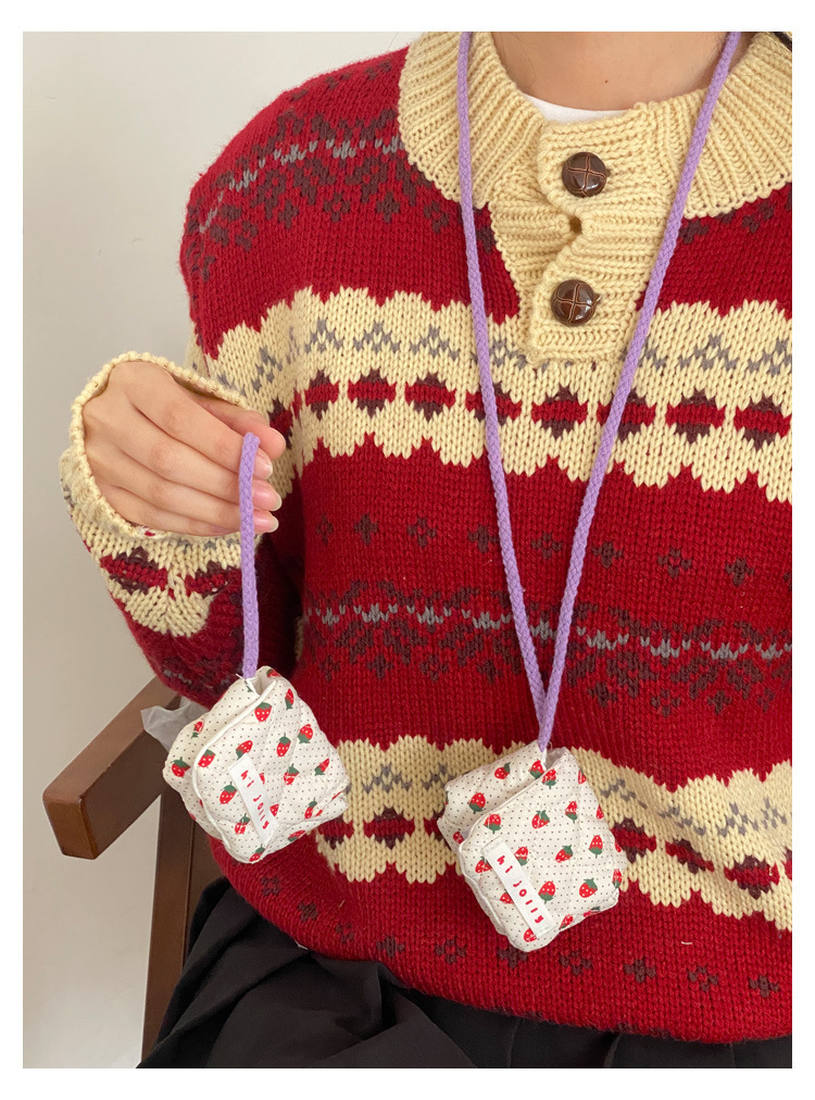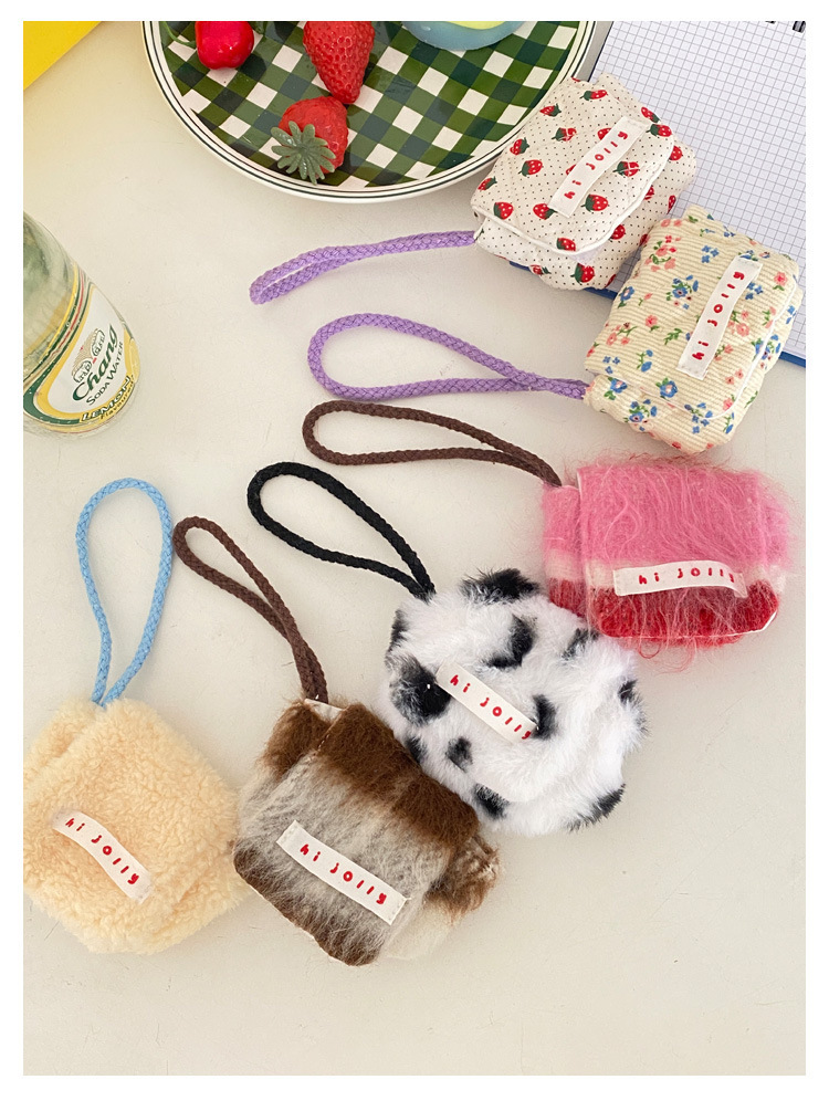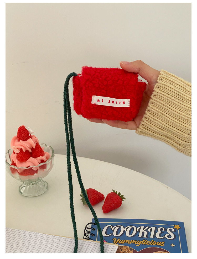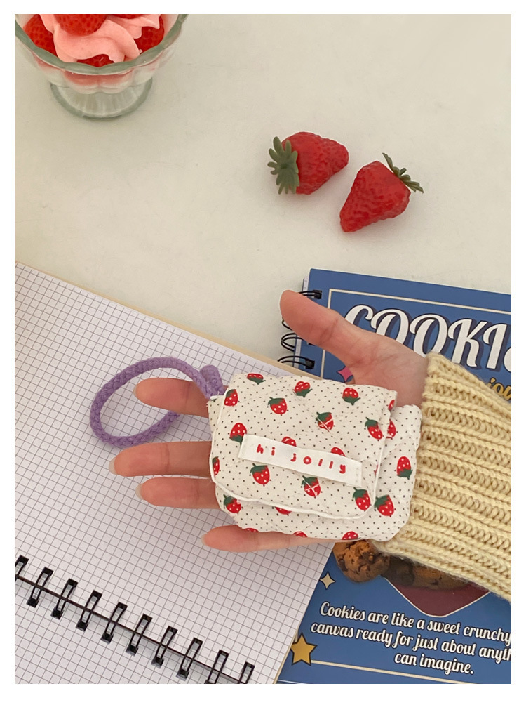 • 작은 딸기 퀼트 헤드폰 가방 짧은 로프 스타일