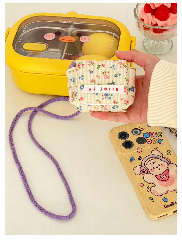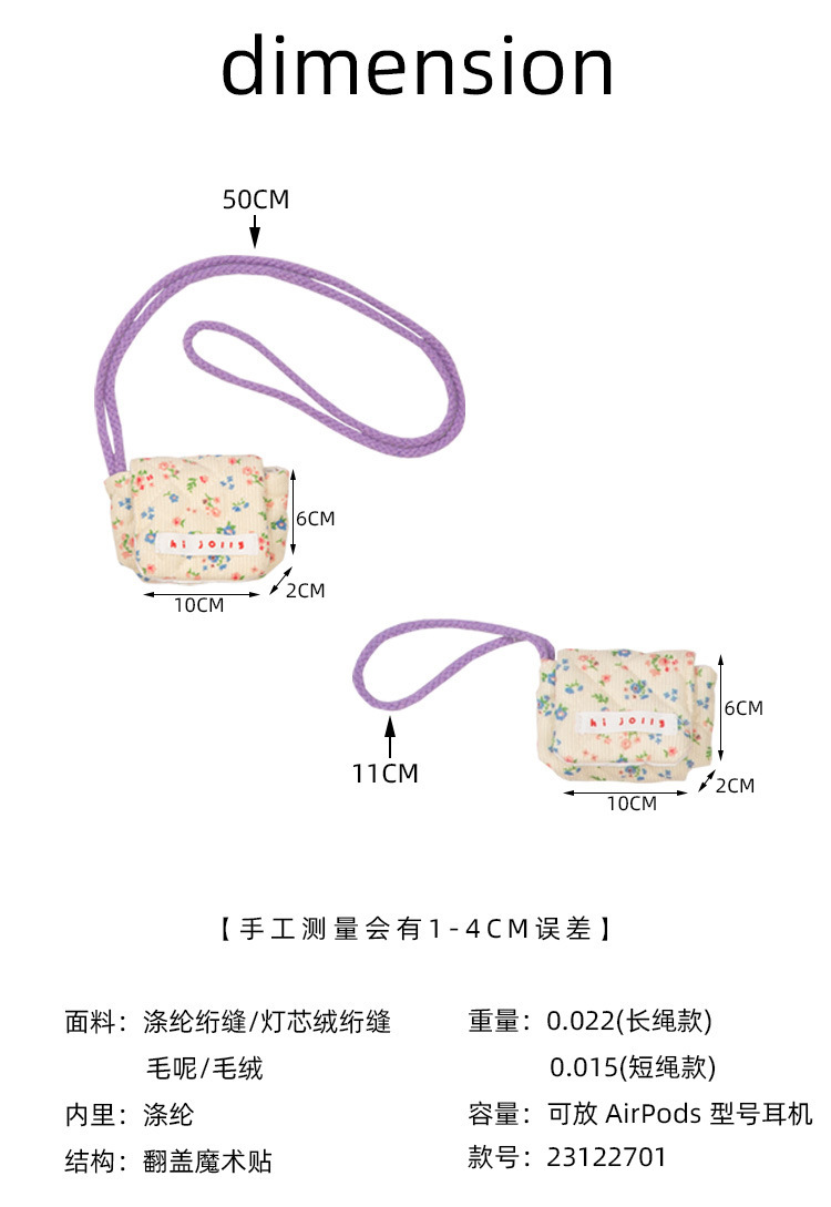Ins 틈새 봉제 방진 보호 케이스 새로운 미니 헤드폰 가방 교수형 목 저장 가방 휴대용 플립 헤드폰 가방