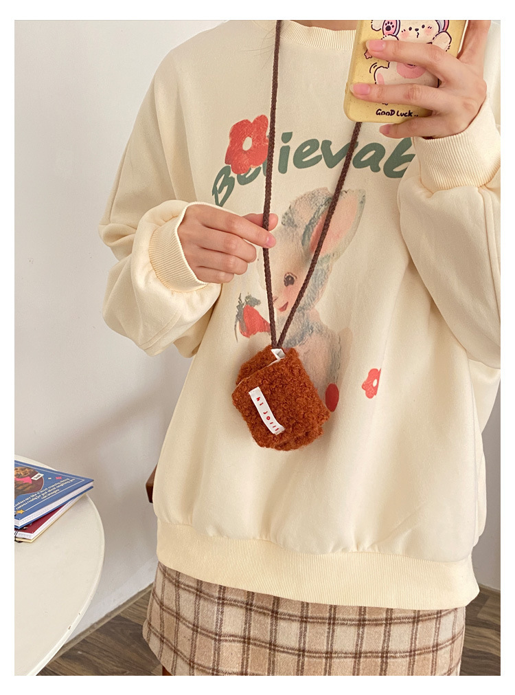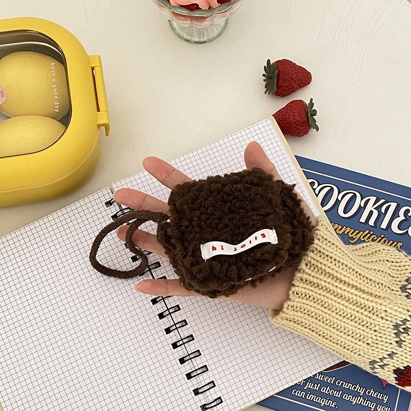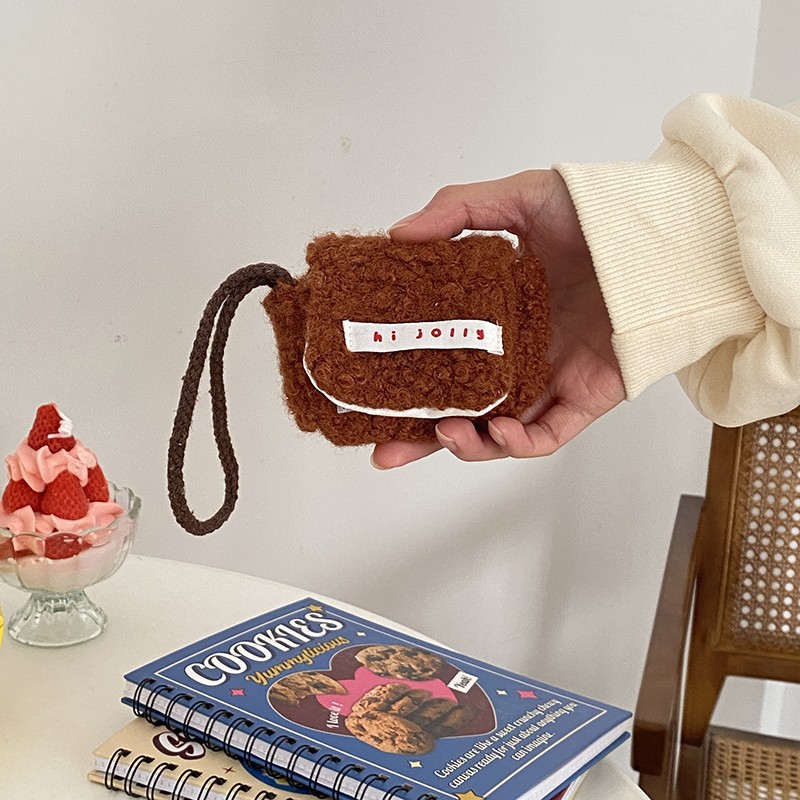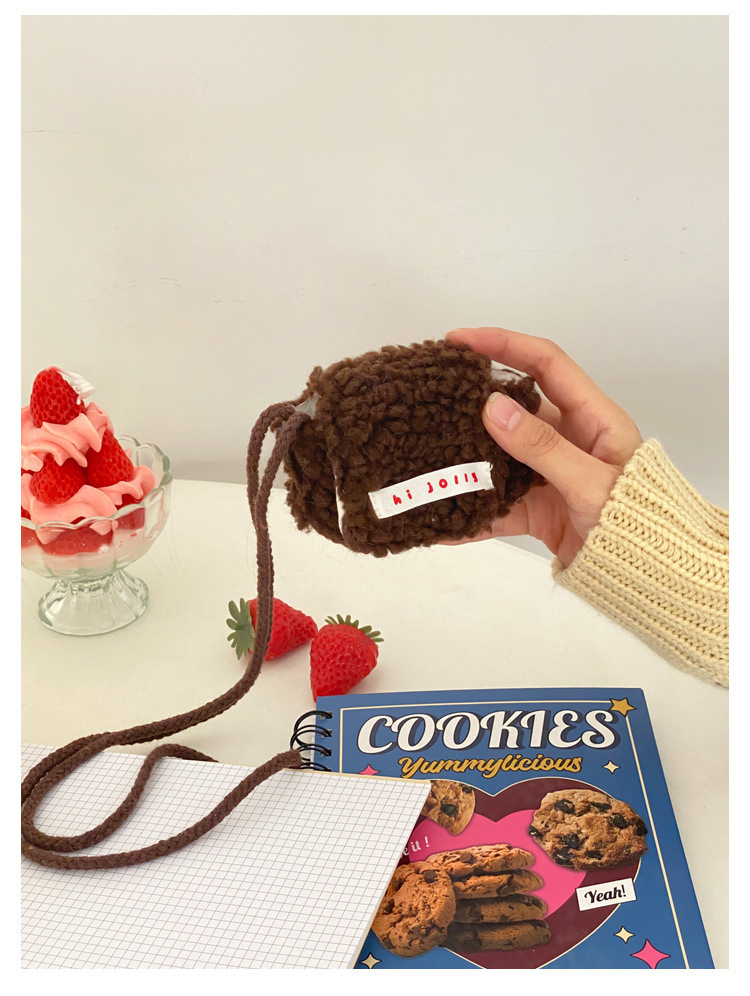 • 테디 브라운 플러시 헤드폰 가방 짧은 로프 스타일