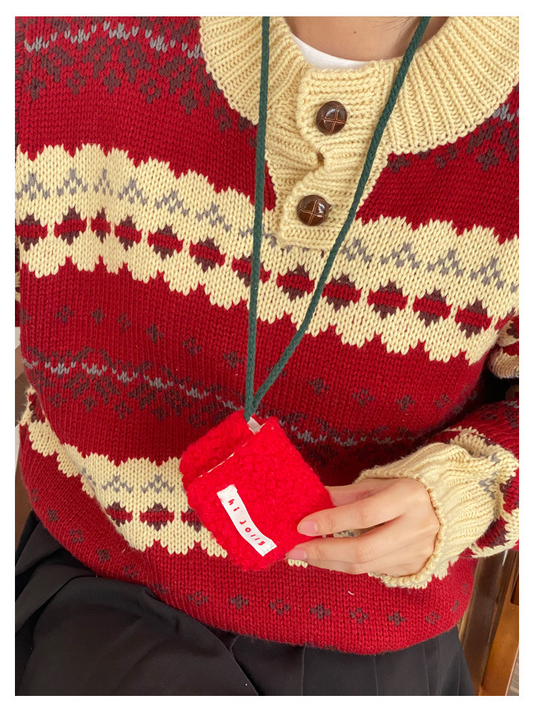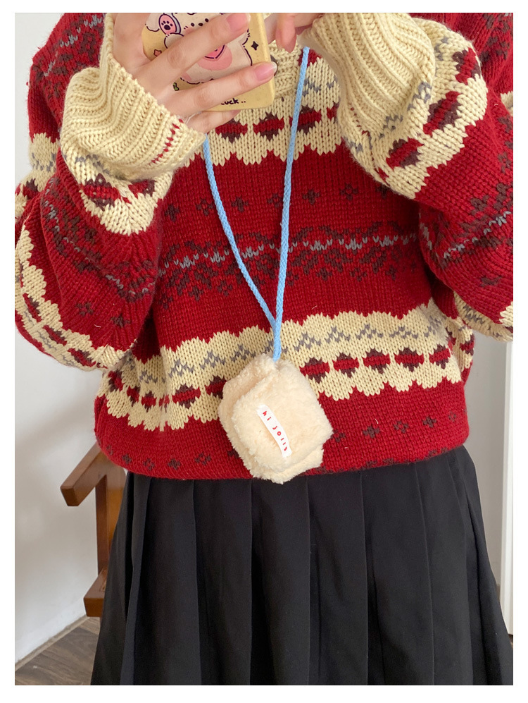 • 크리스마스 레드 플러시 헤드폰 가방 짧은 로프 스타일