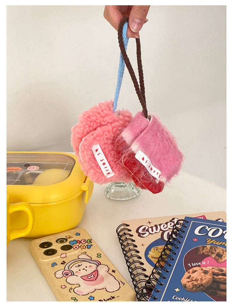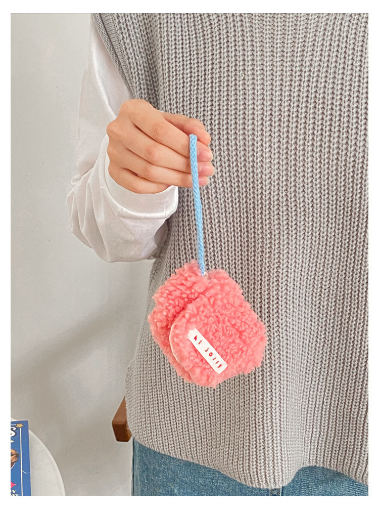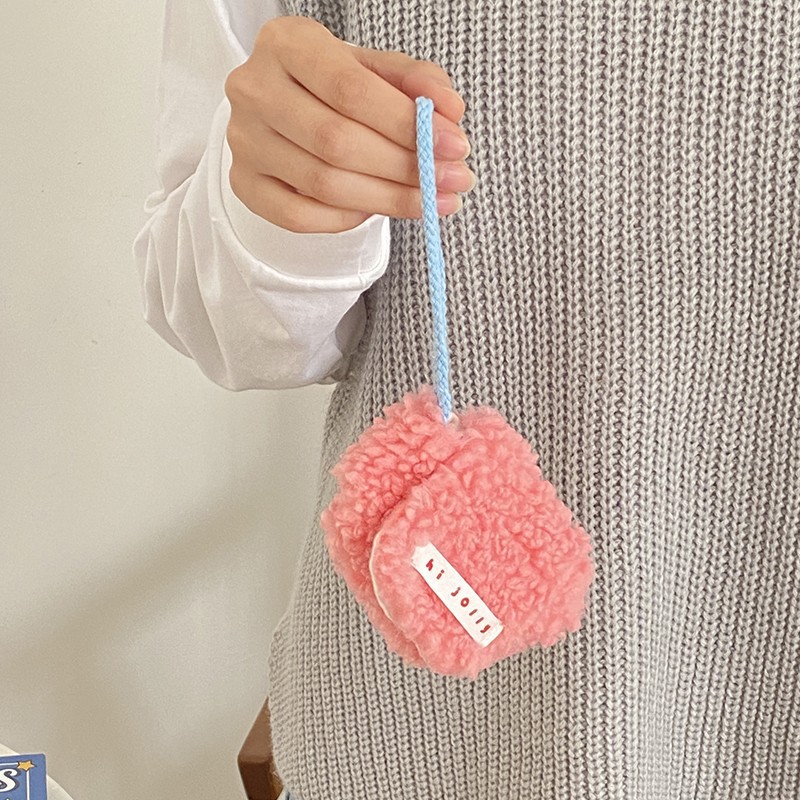 • 핑크 플러시 헤드폰 가방 짧은 로프 스타일