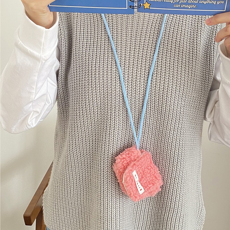 • 긴 로프 스타일의 핑크 플러시 헤드폰 가방