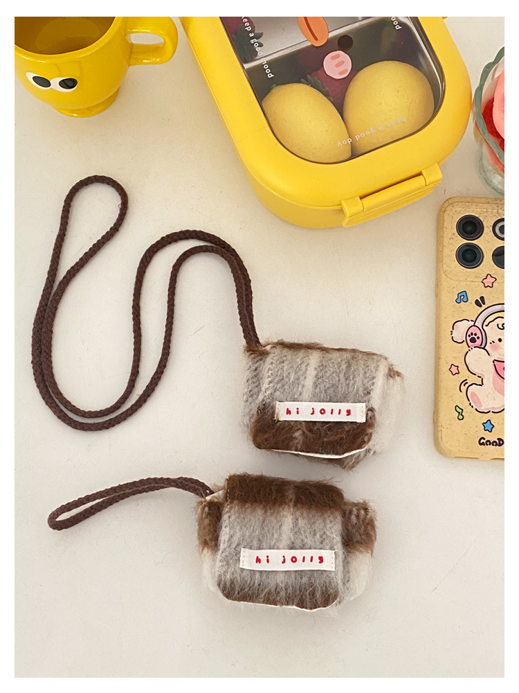 • 짧은 로프 스타일의 갈색 플러시 헤드폰 가방