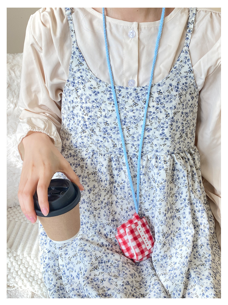 • 작은 딸기 퀼트 헤드폰 가방 긴 로프 스타일