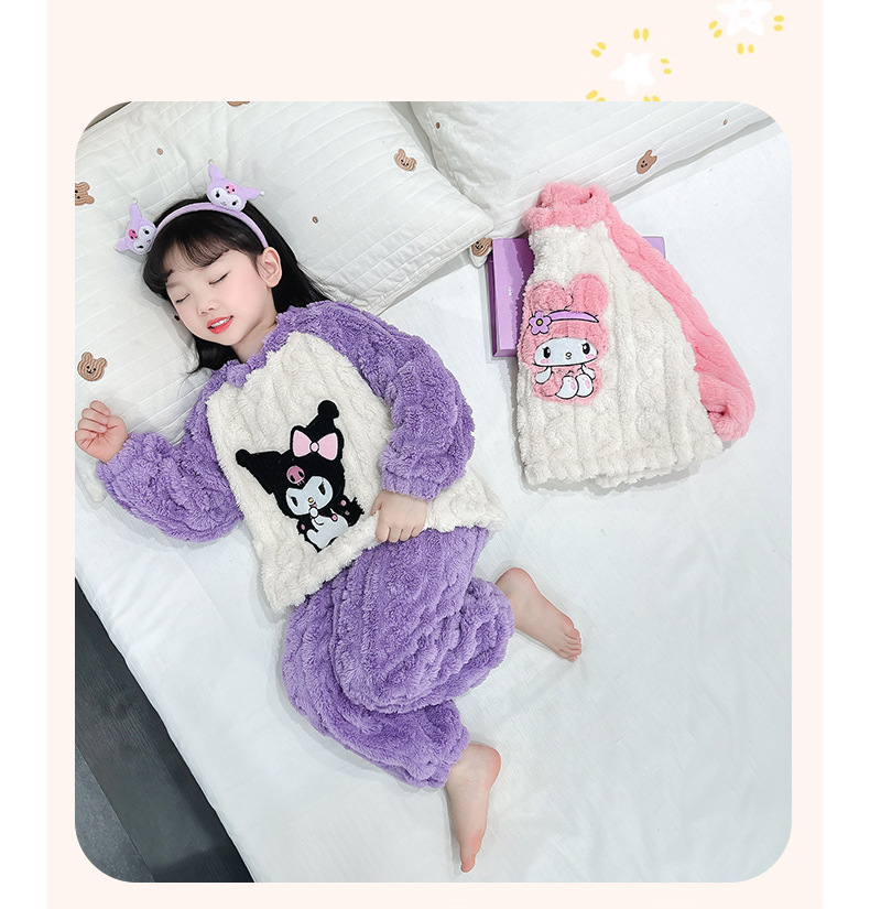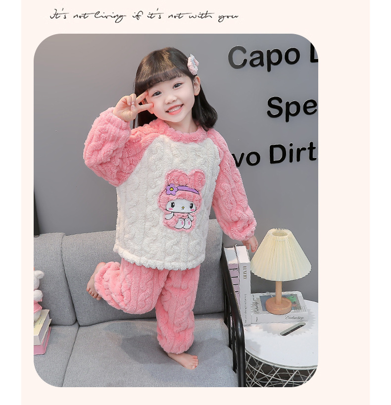 소녀의 가을/겨울 잠옷 기모 두꺼운 아기 아이들의 집 옷 2024 새로운 아기 소녀의 산호 양털
