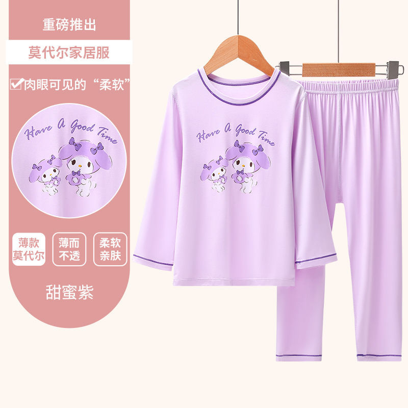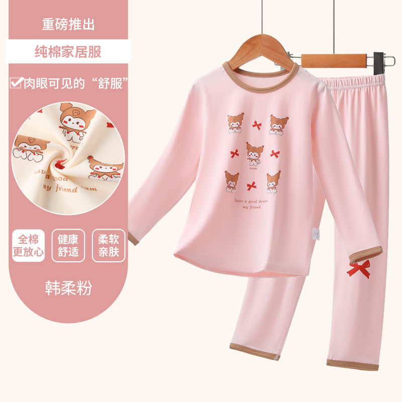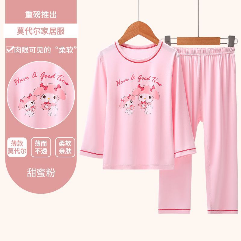 모달 걸스 잠옷 봄 가을 새 어린이 집 옷 세트 얇은 긴팔 가을 옷과 바지