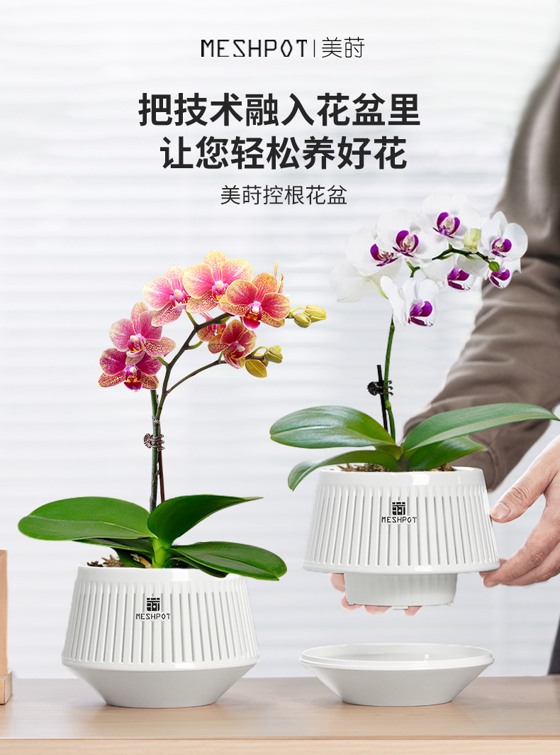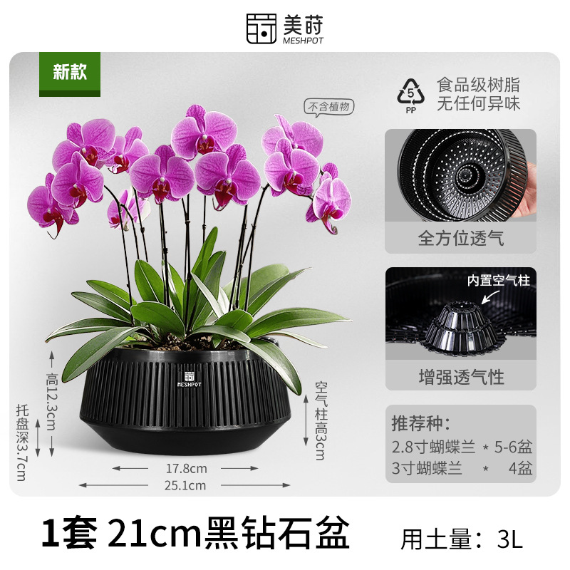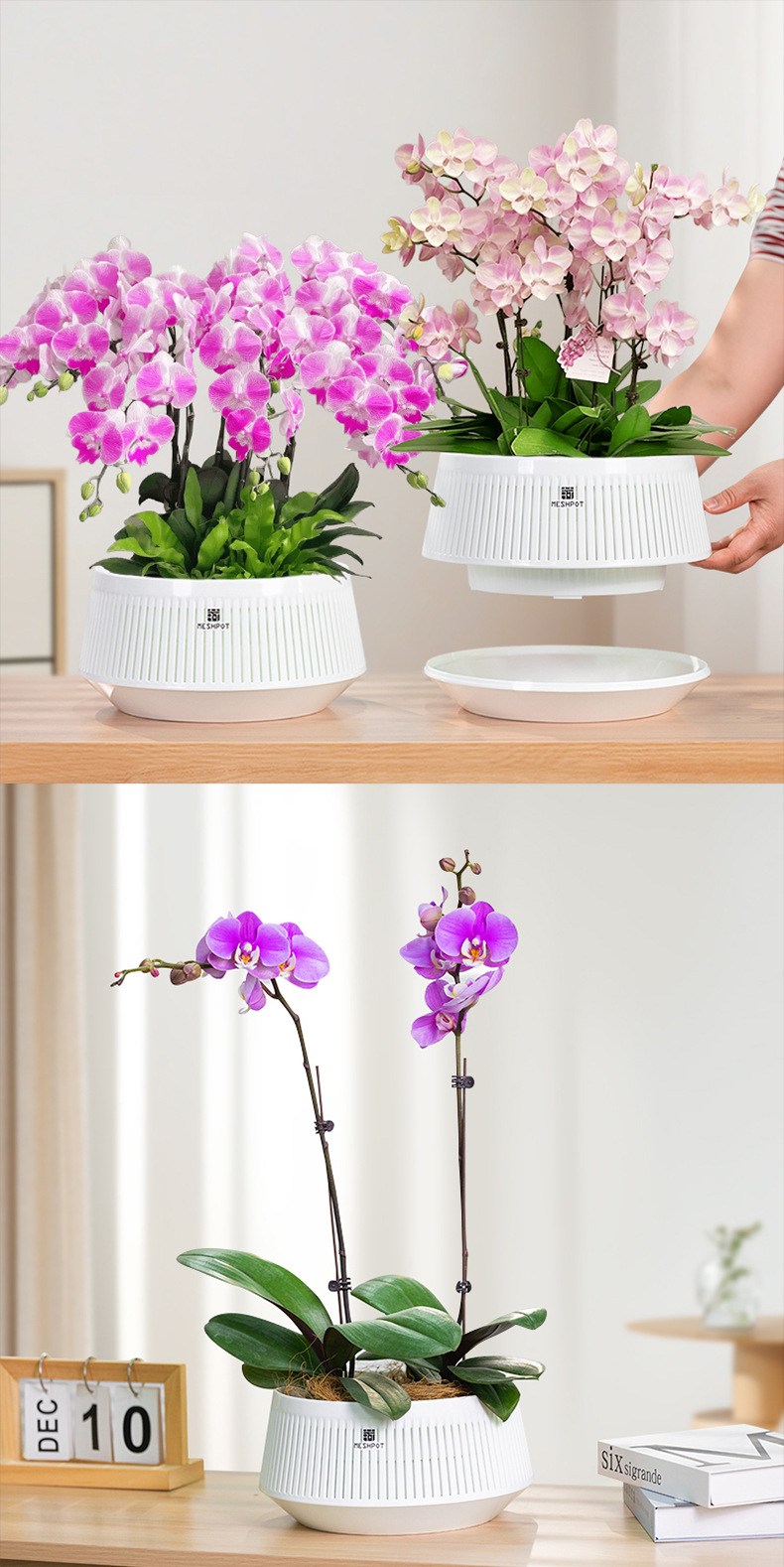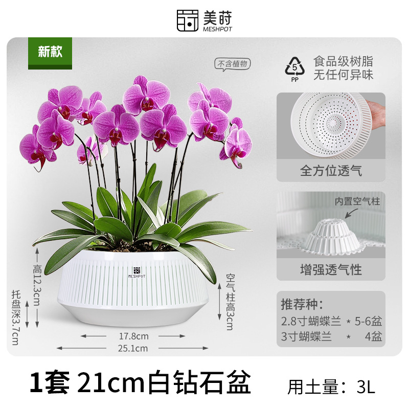 Meishi Phalaenopsis 특수 꽃 냄비 뿌리 제어 통기성 두 배 층 세트 냄비 플라스틱 수지 수경 물 이끼 교환 냄비 녹색 산 냄비스토어 가기
