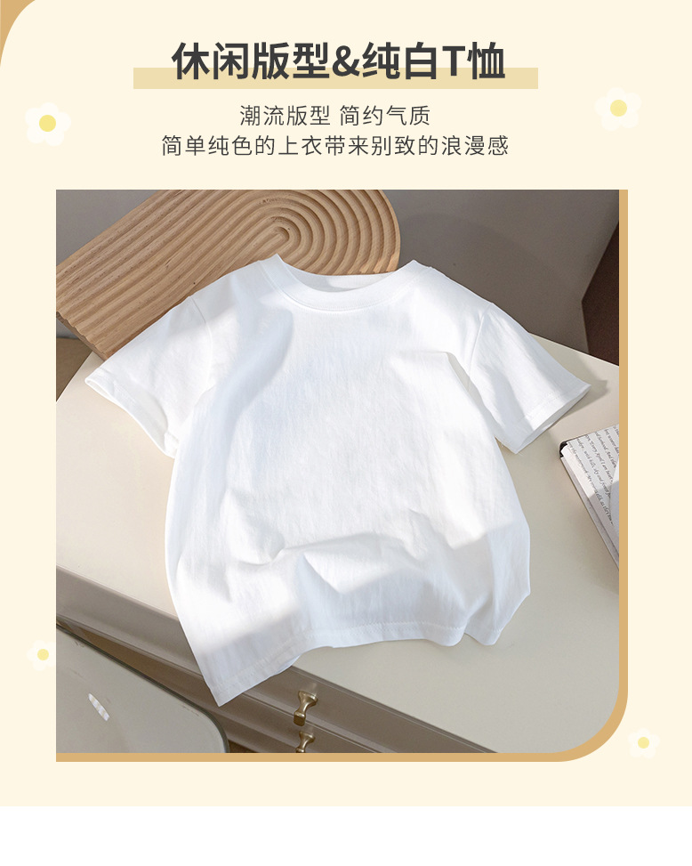 특별 제공 아동용 반팔 티셔츠 세련된 새로운 중대형 아동용 흰색 면 남성 및 여성 의류 단순 라운드 넥 바닥 셔츠