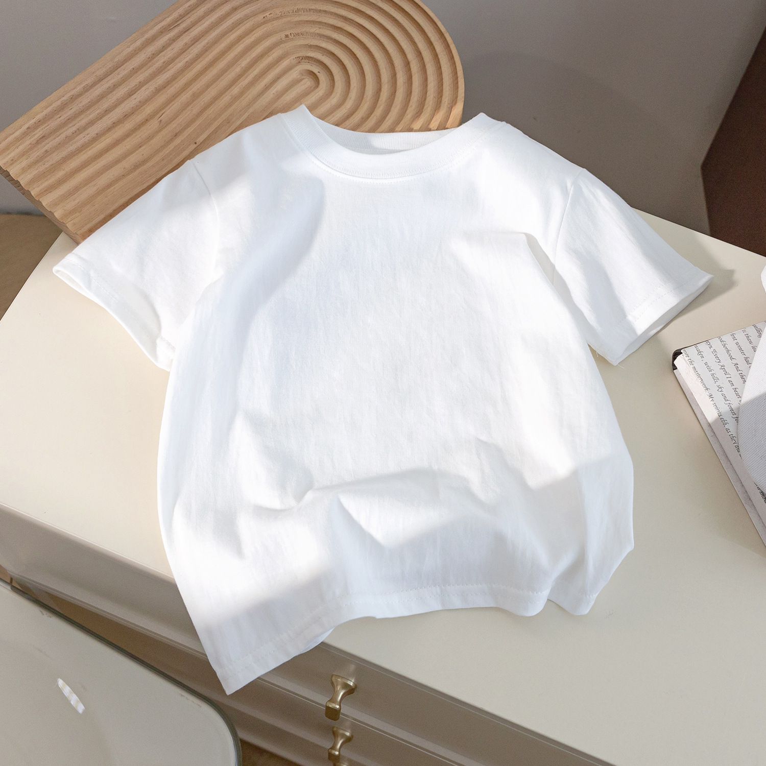 특별 제공 아동용 반팔 티셔츠 세련된 새로운 중대형 아동용 흰색 면 남성 및 여성 의류 단순 라운드 넥 바닥 셔츠스토어 가기