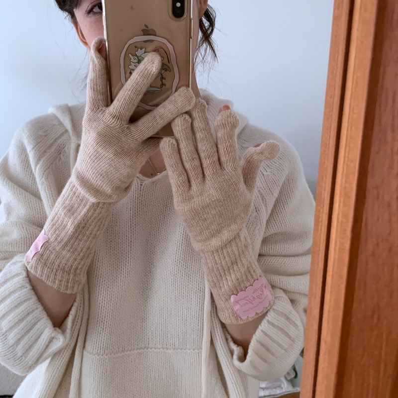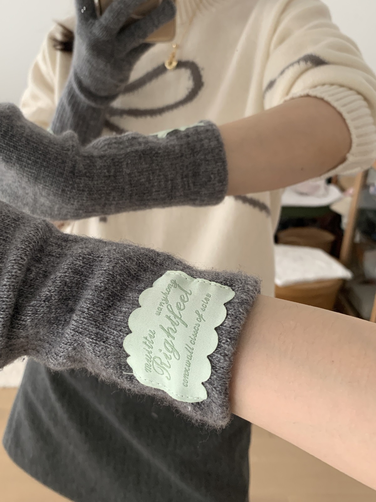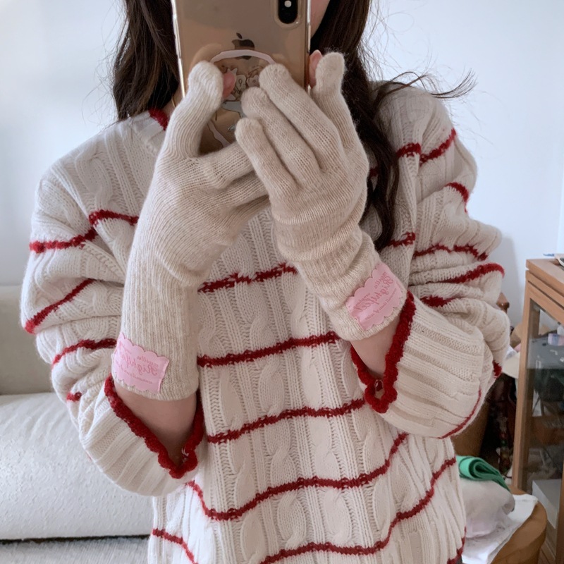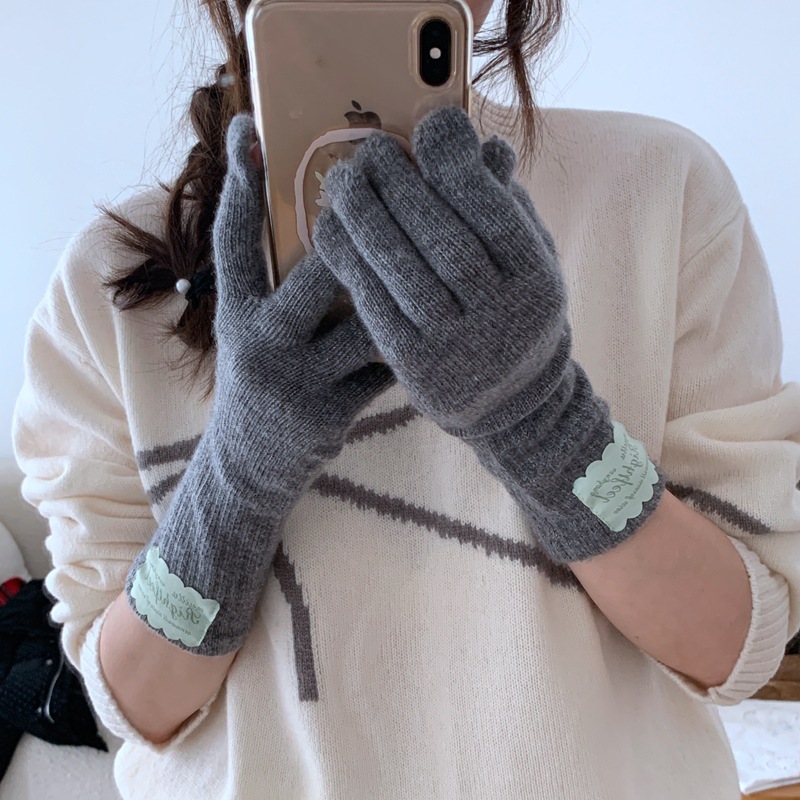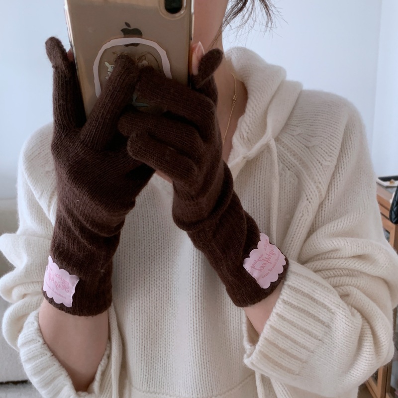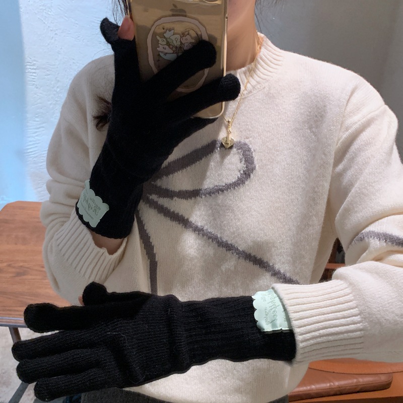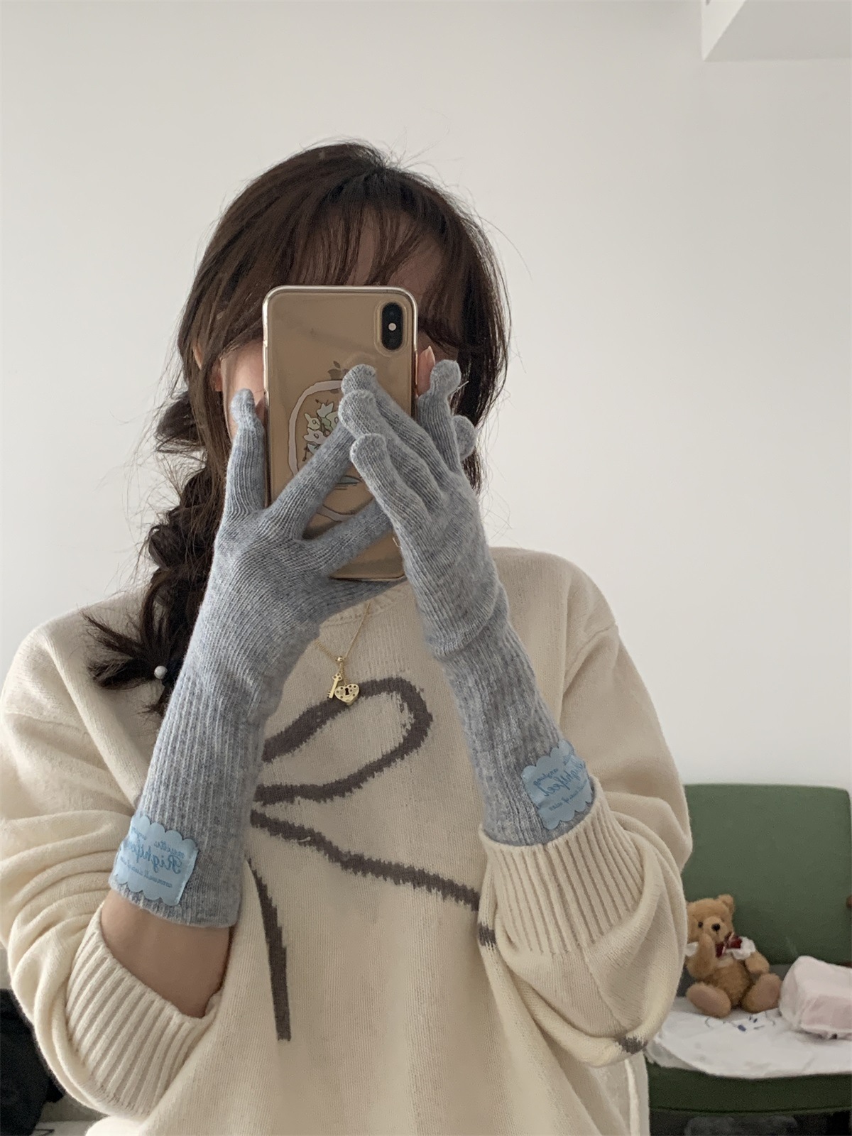 한국 패션 긴 니트 장갑 겨울 승차를위한 심플 스타일 터치 스크린 따뜻한 손가락 장갑 여성용 Ins 라벨