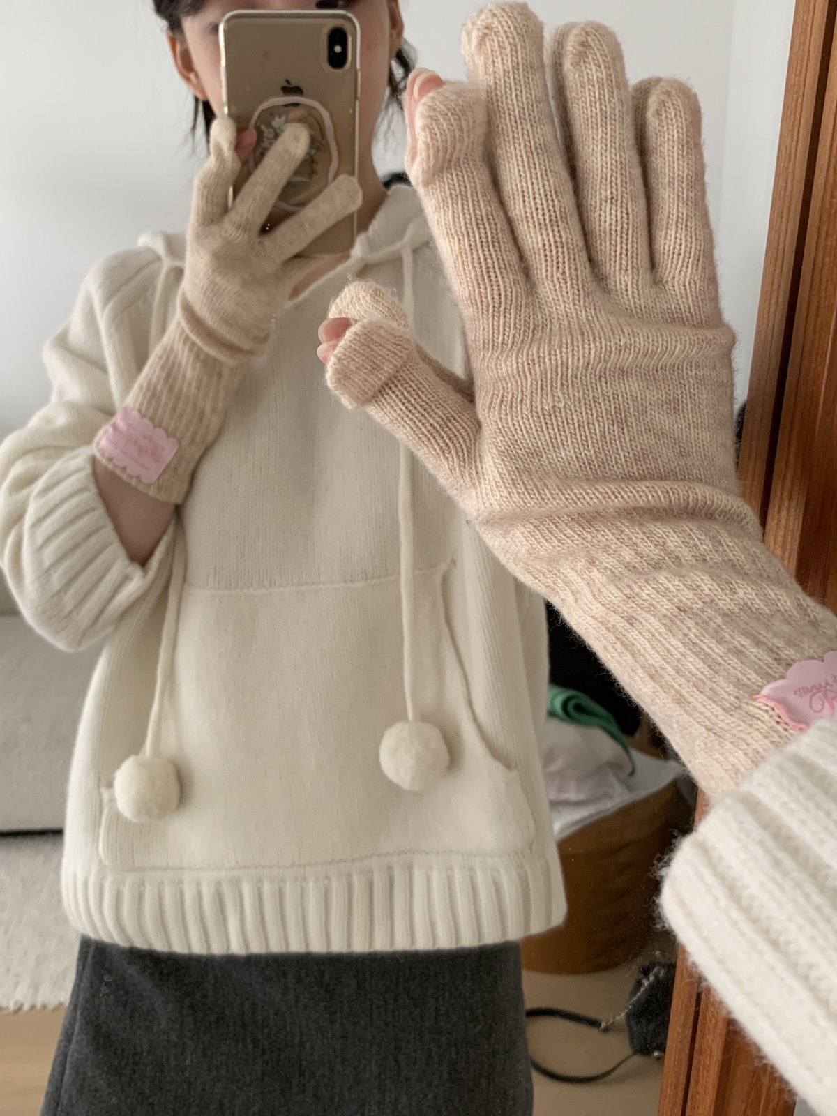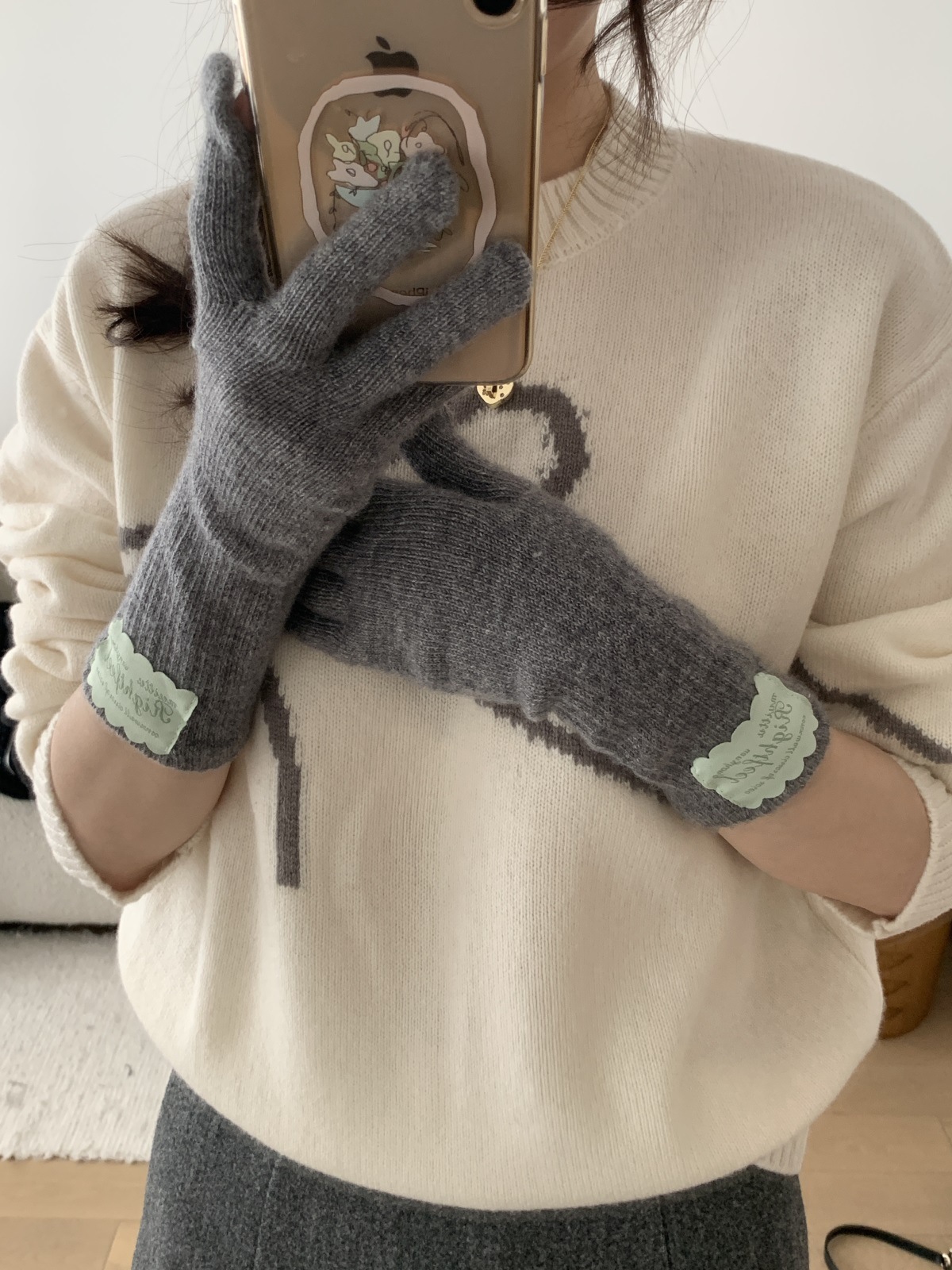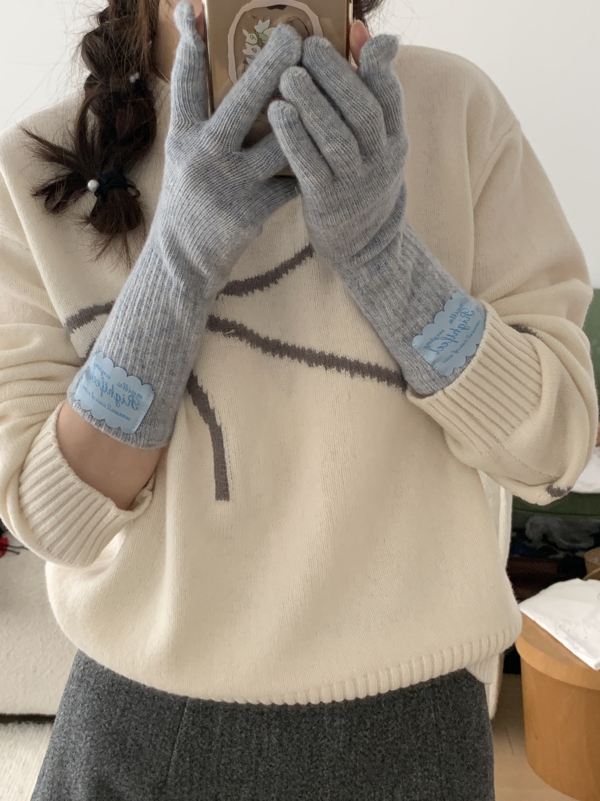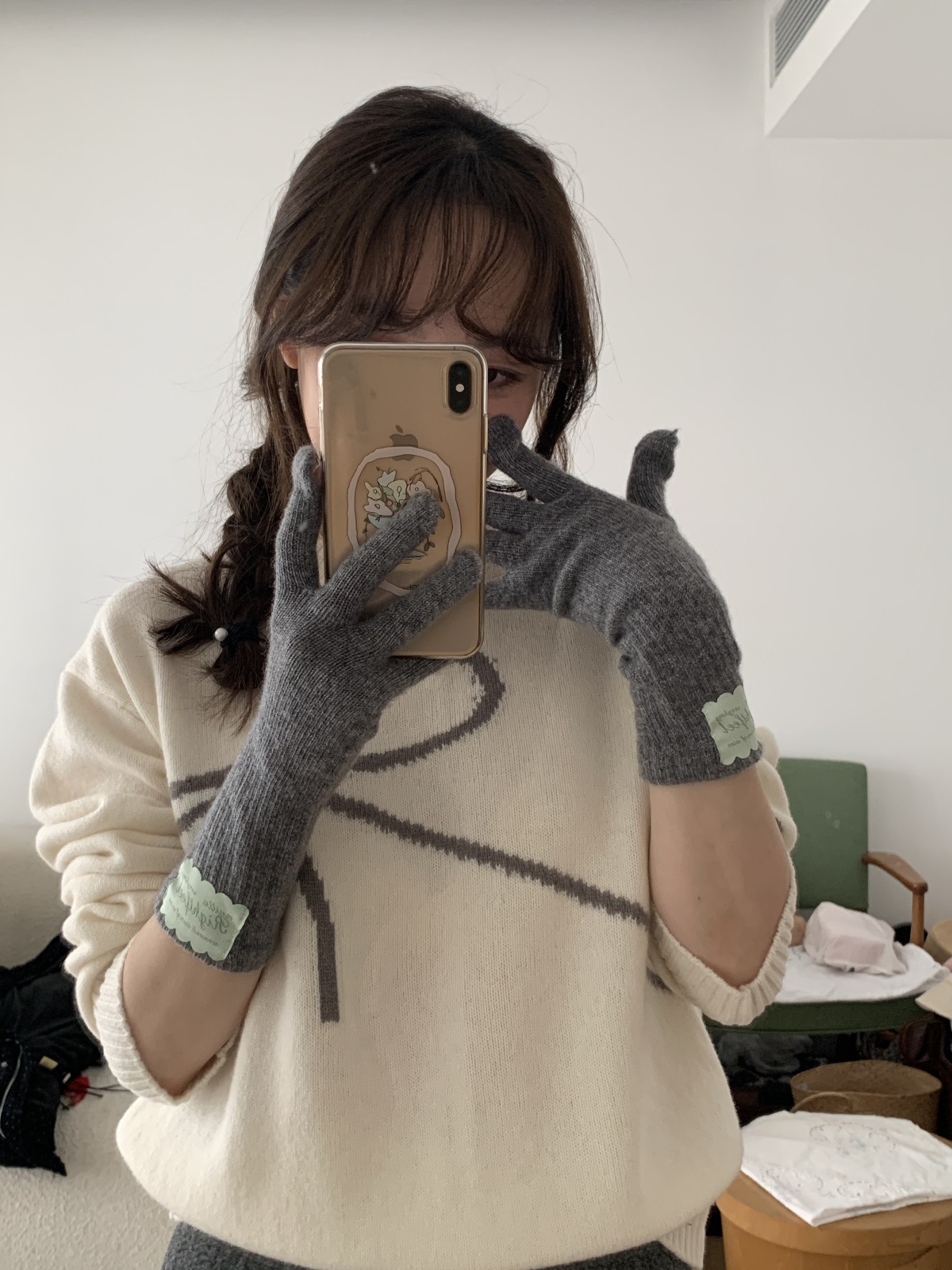 한국 패션 긴 니트 장갑 겨울 승차를위한 심플 스타일 터치 스크린 따뜻한 손가락 장갑 여성용 Ins 라벨