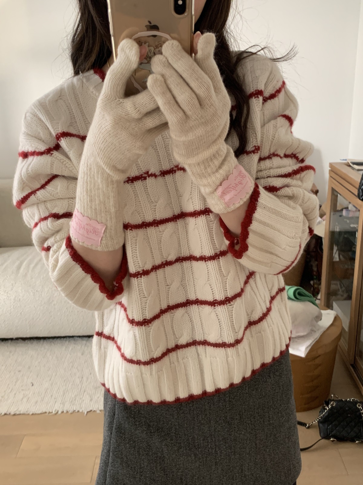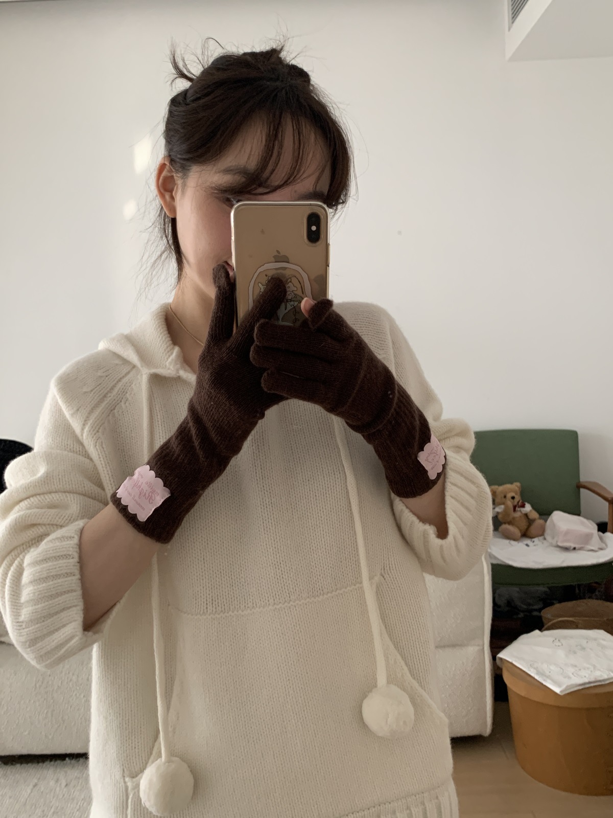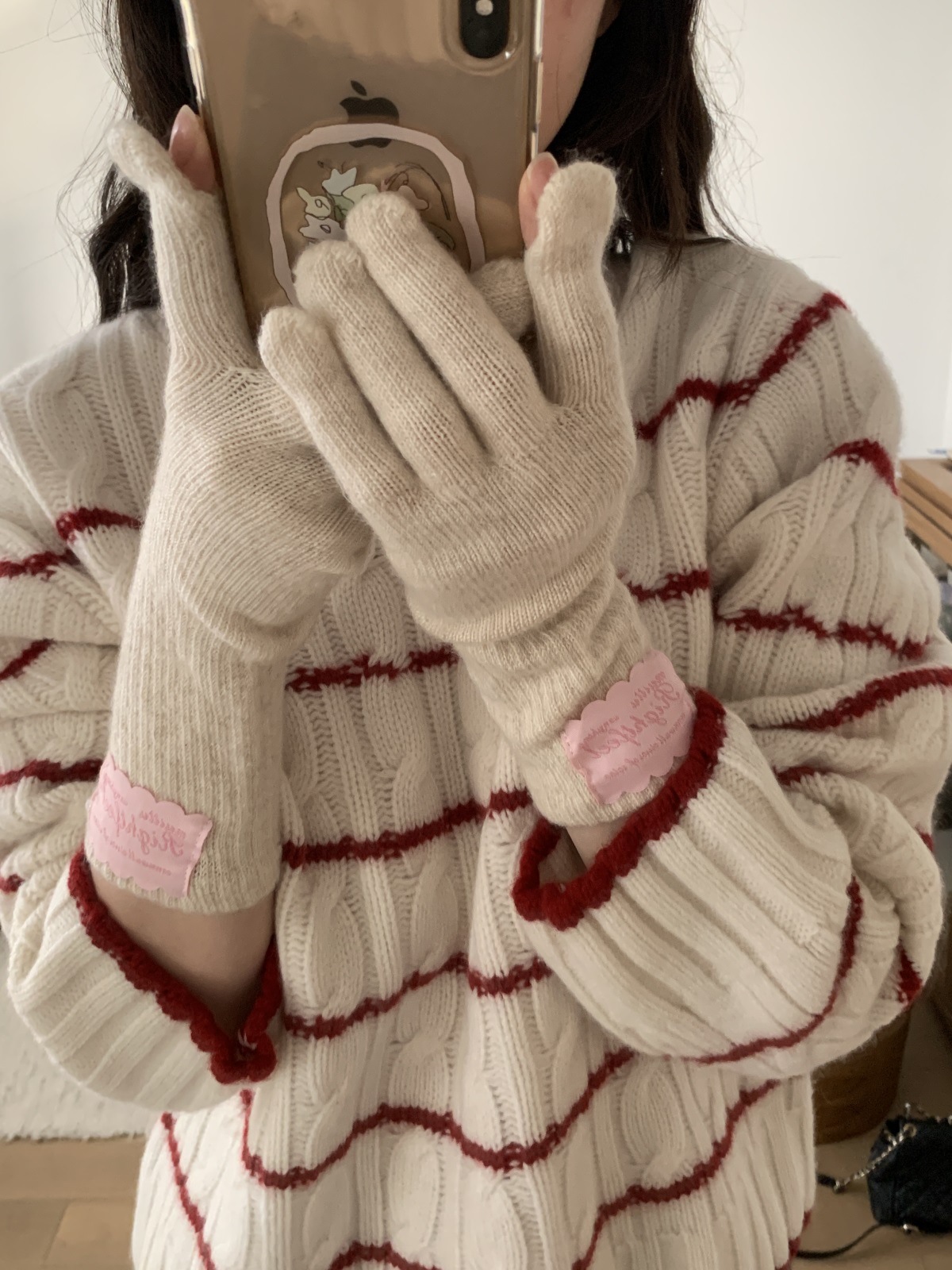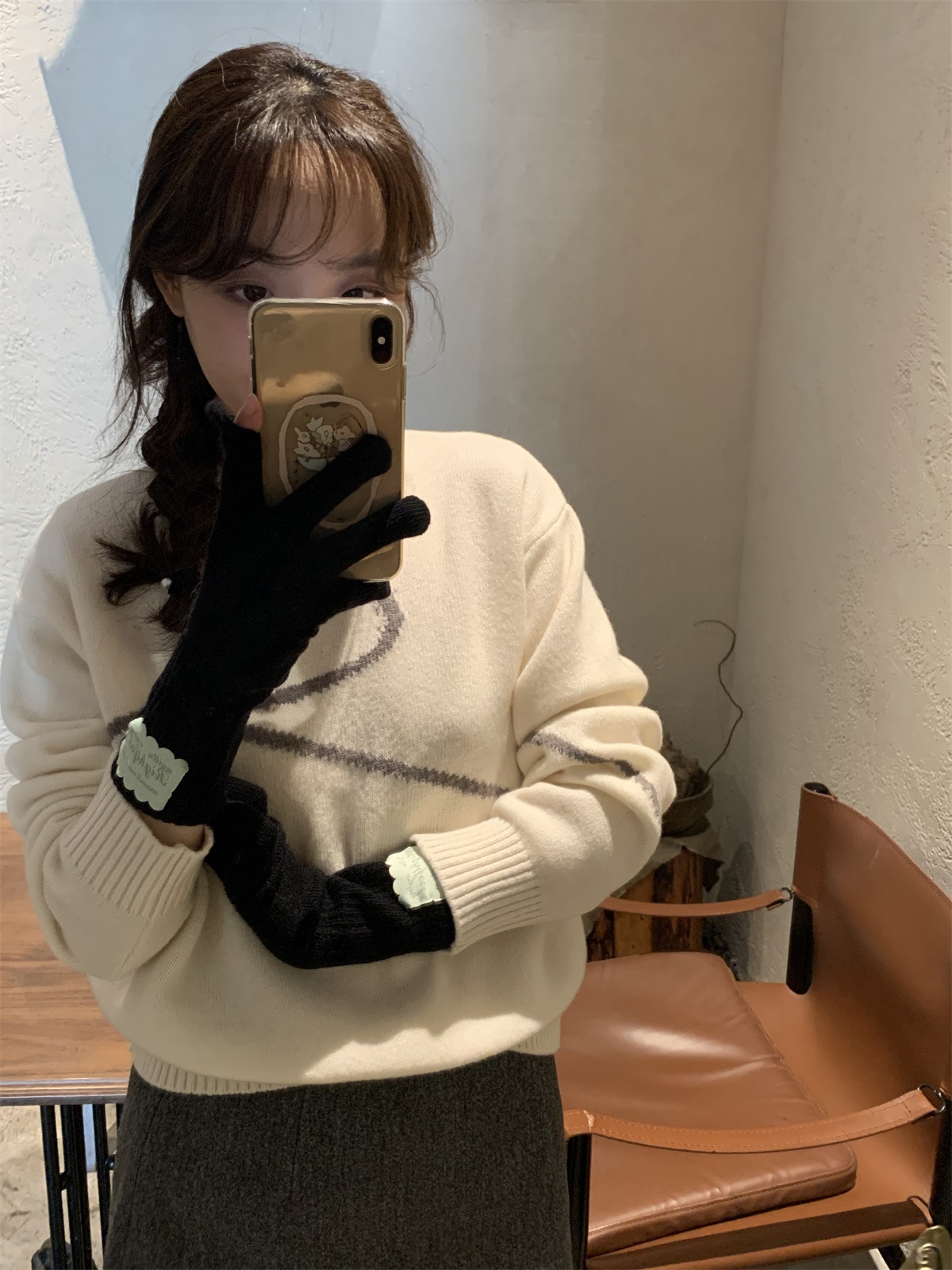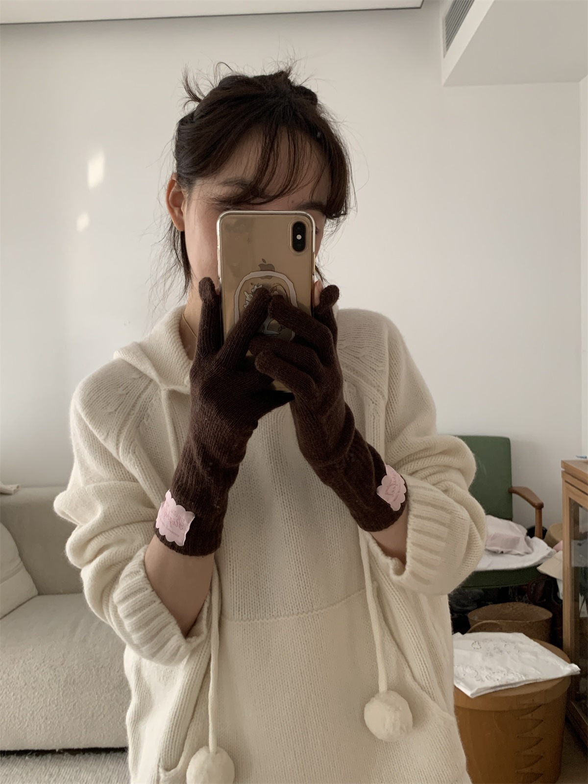 한국 패션 긴 니트 장갑 겨울 승차를위한 심플 스타일 터치 스크린 따뜻한 손가락 장갑 여성용 Ins 라벨