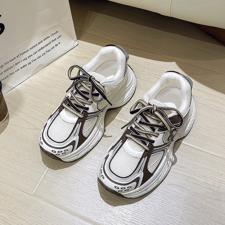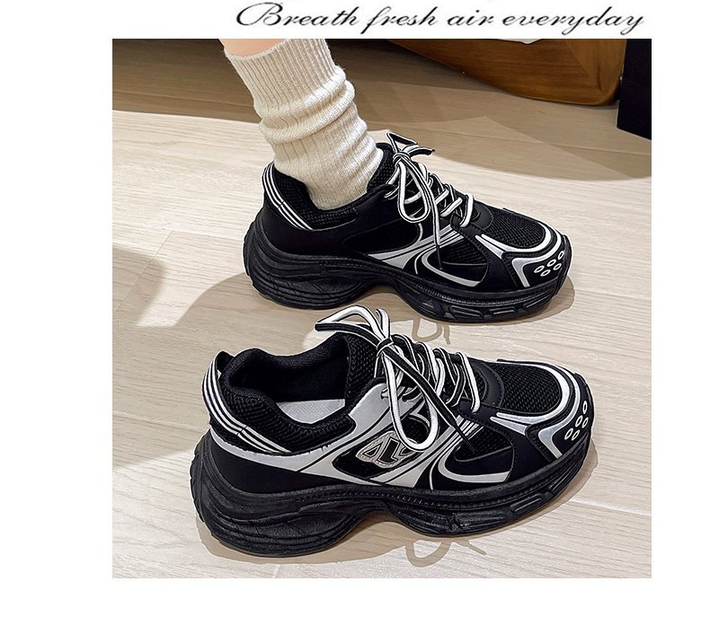 플러스 사이즈 한국 스타일 통기성 토르 신발 여성 2024 가을 뉴 메쉬 두꺼운 바닥 흰색 신발 올매치 캐주얼 운동화스토어 가기