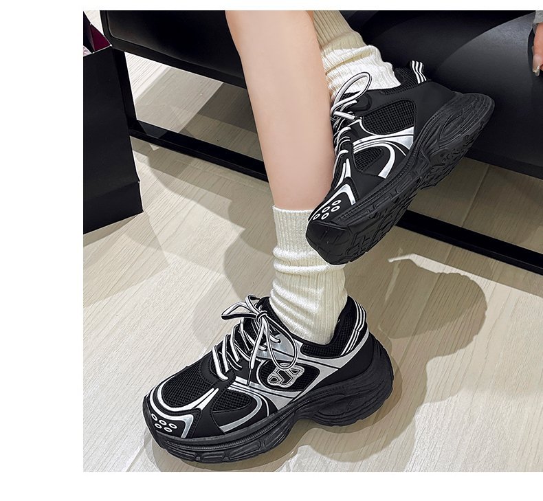 플러스 사이즈 한국 스타일 통기성 토르 신발 여성 2024 가을 뉴 메쉬 두꺼운 바닥 흰색 신발 올매치 캐주얼 운동화