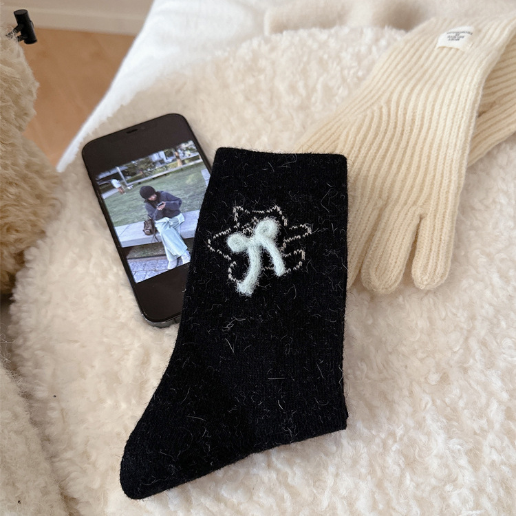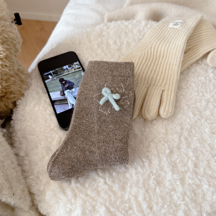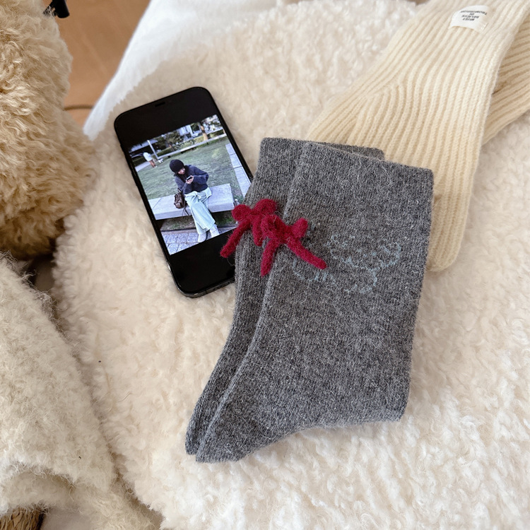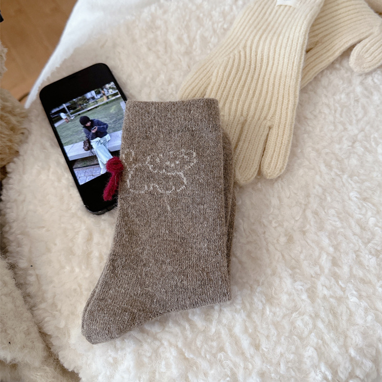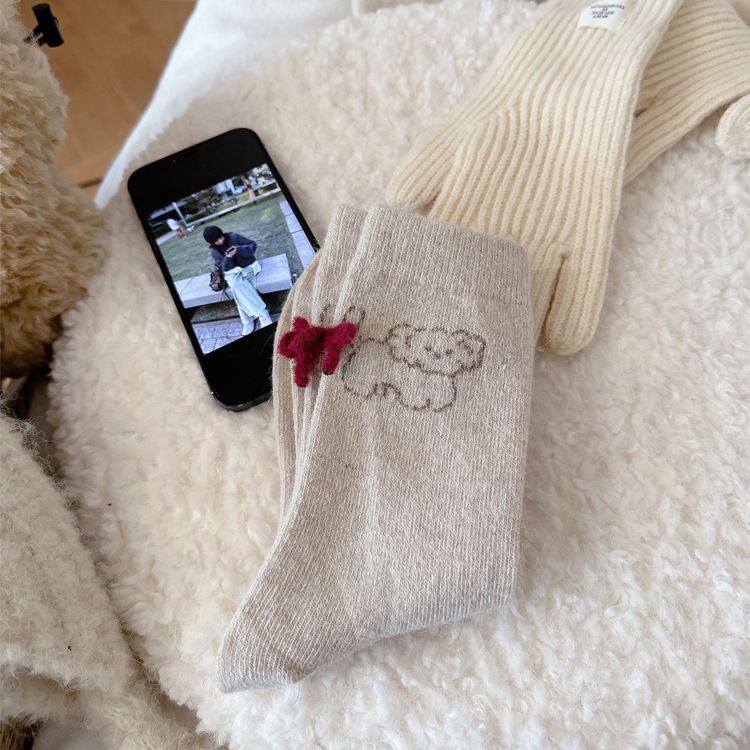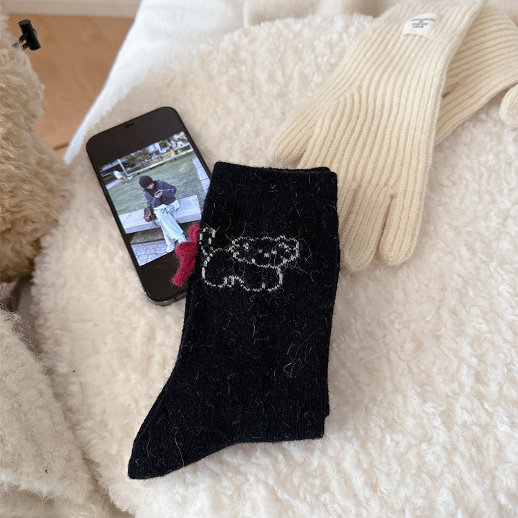 양말 여성의 겨울 토끼 양모 두꺼운 따뜻한 Bowknot 개 고양이 귀여운 내부 여성 양말 스택 양말 미드 튜브 양말스토어 가기