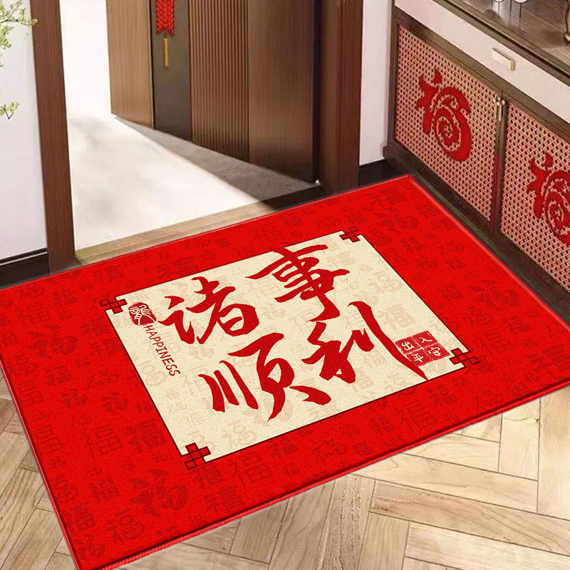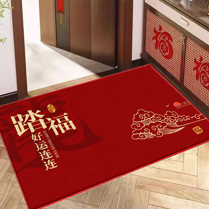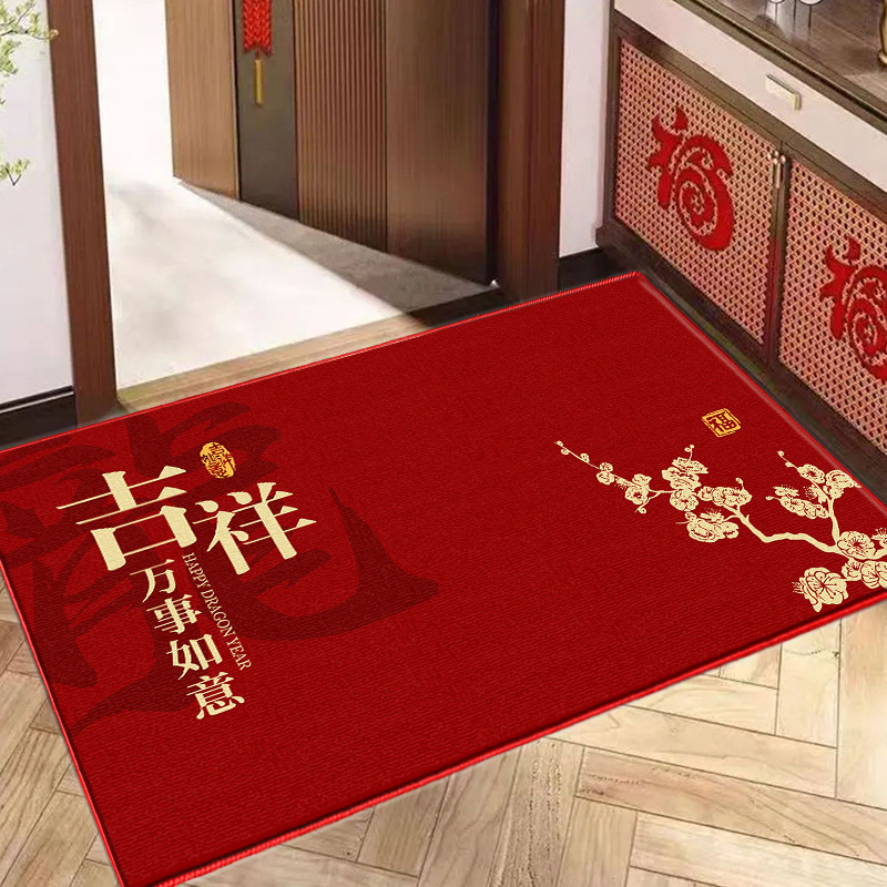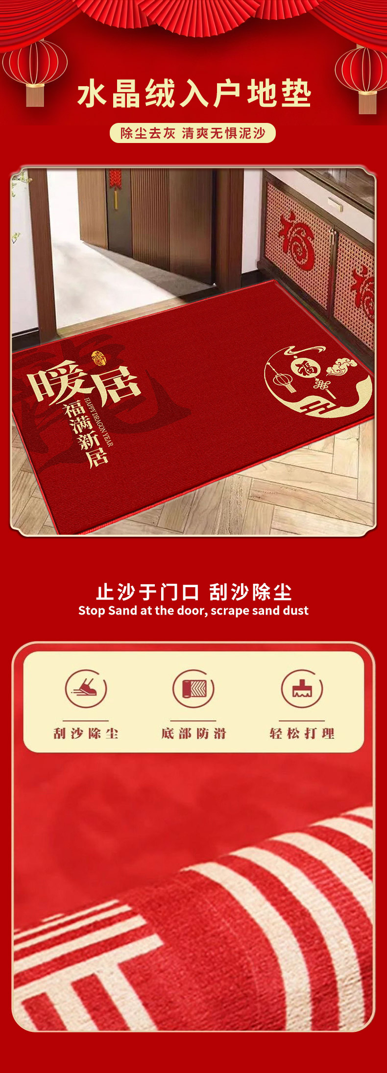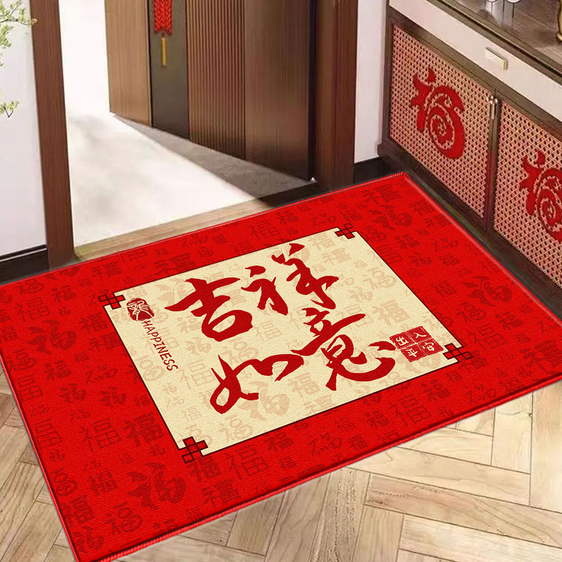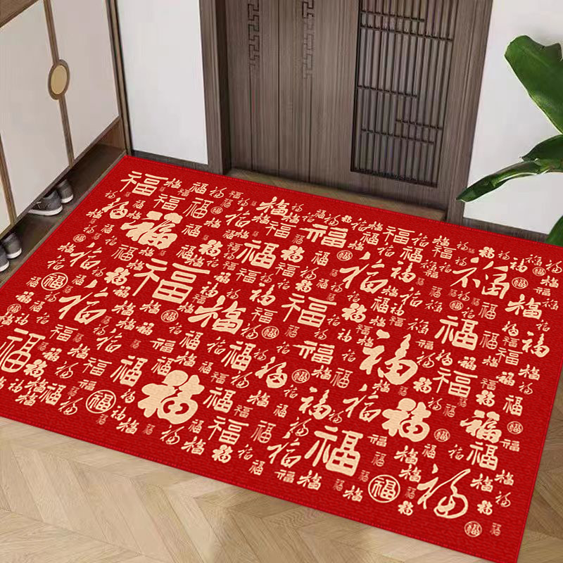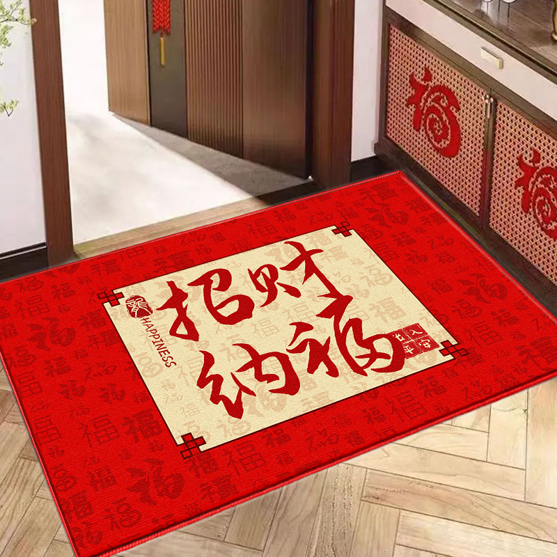 붉은 축제 입구 입구 입구 입구 바닥 매트 두꺼운 크리스탈 벨벳 매트 홈 미끄럼 방지 더티 방지 쉬운 케어 풋 매트