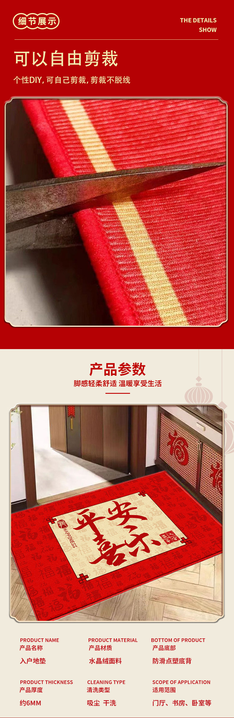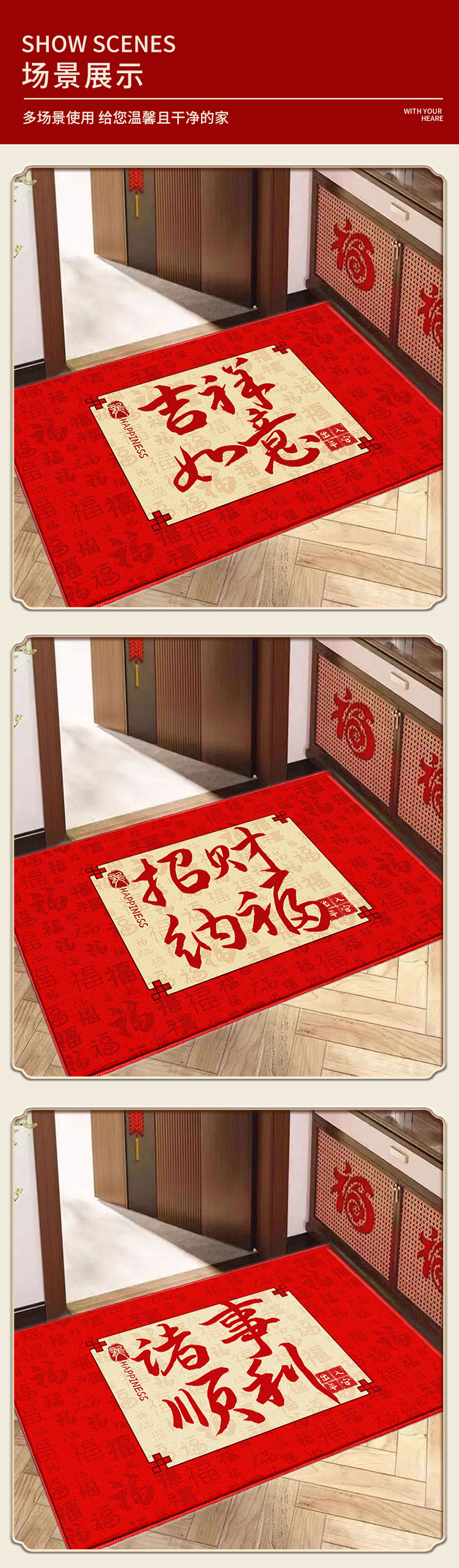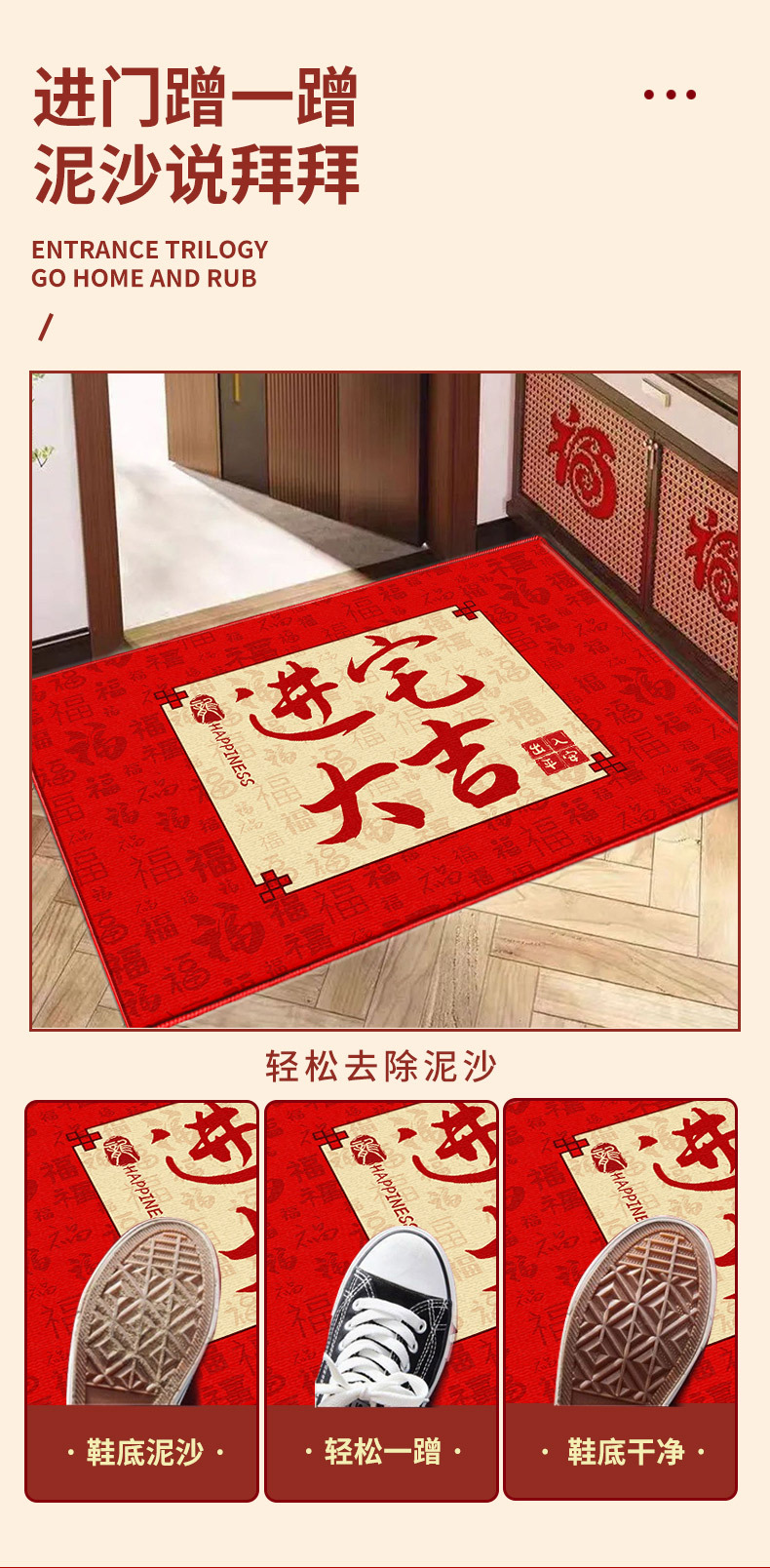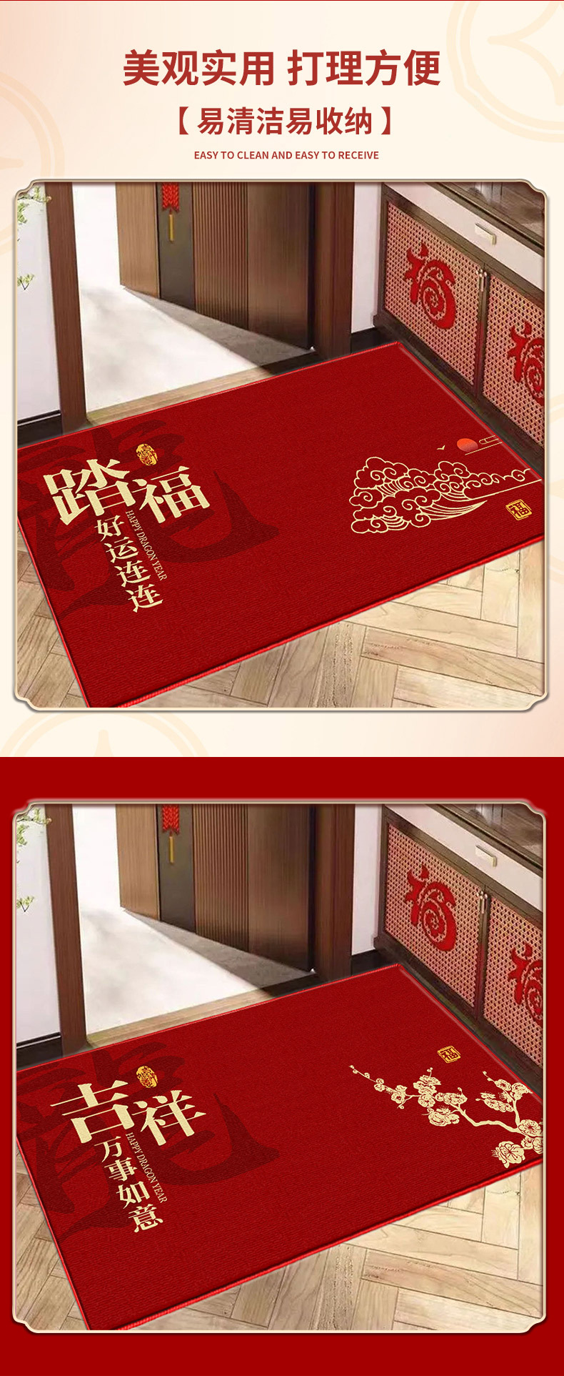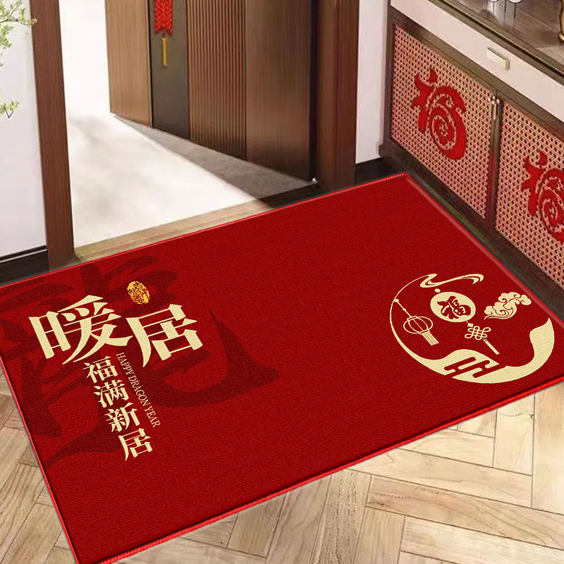 붉은 축제 입구 입구 입구 입구 바닥 매트 두꺼운 크리스탈 벨벳 매트 홈 미끄럼 방지 더티 방지 쉬운 케어 풋 매트