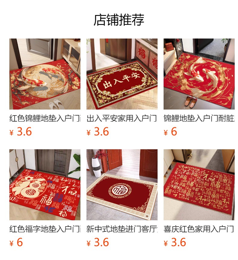 붉은 축제 입구 입구 입구 입구 바닥 매트 두꺼운 크리스탈 벨벳 매트 홈 미끄럼 방지 더티 방지 쉬운 케어 풋 매트스토어 가기