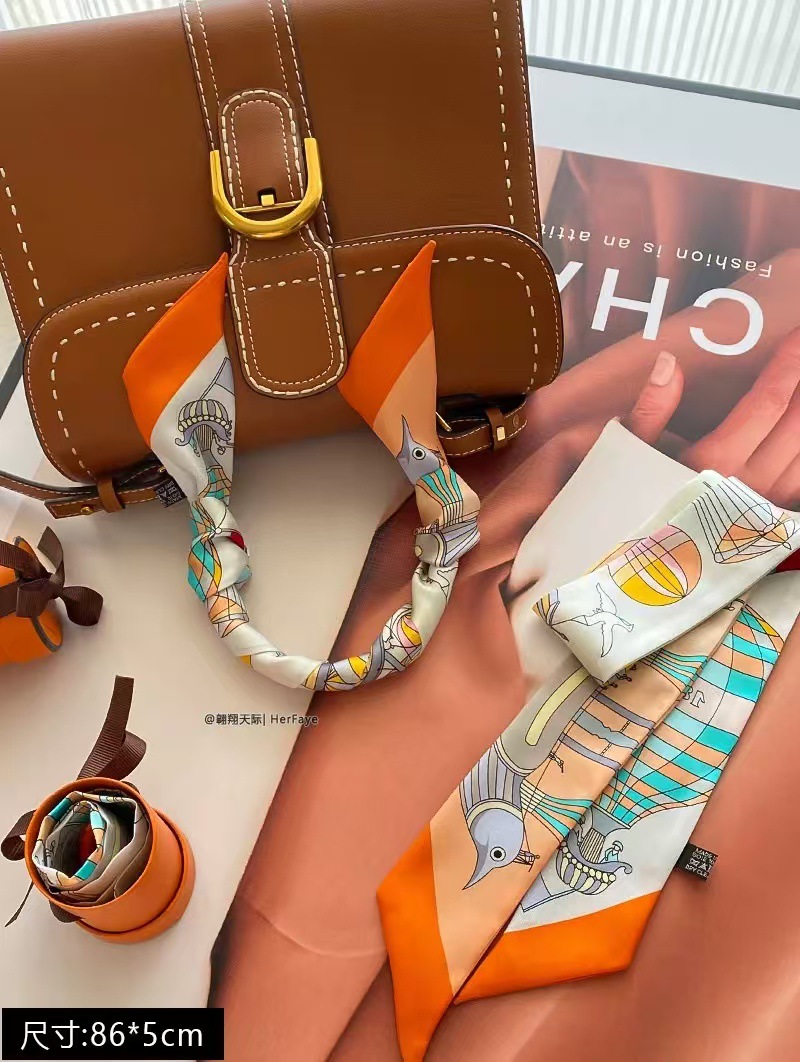 프랑스 스타일 우아한 올 매치 실크 스카프 뜨거운 공기 풍선 비행 실크 리본 넥타이 가방 핸들 리본 빈티지 스카프 여성