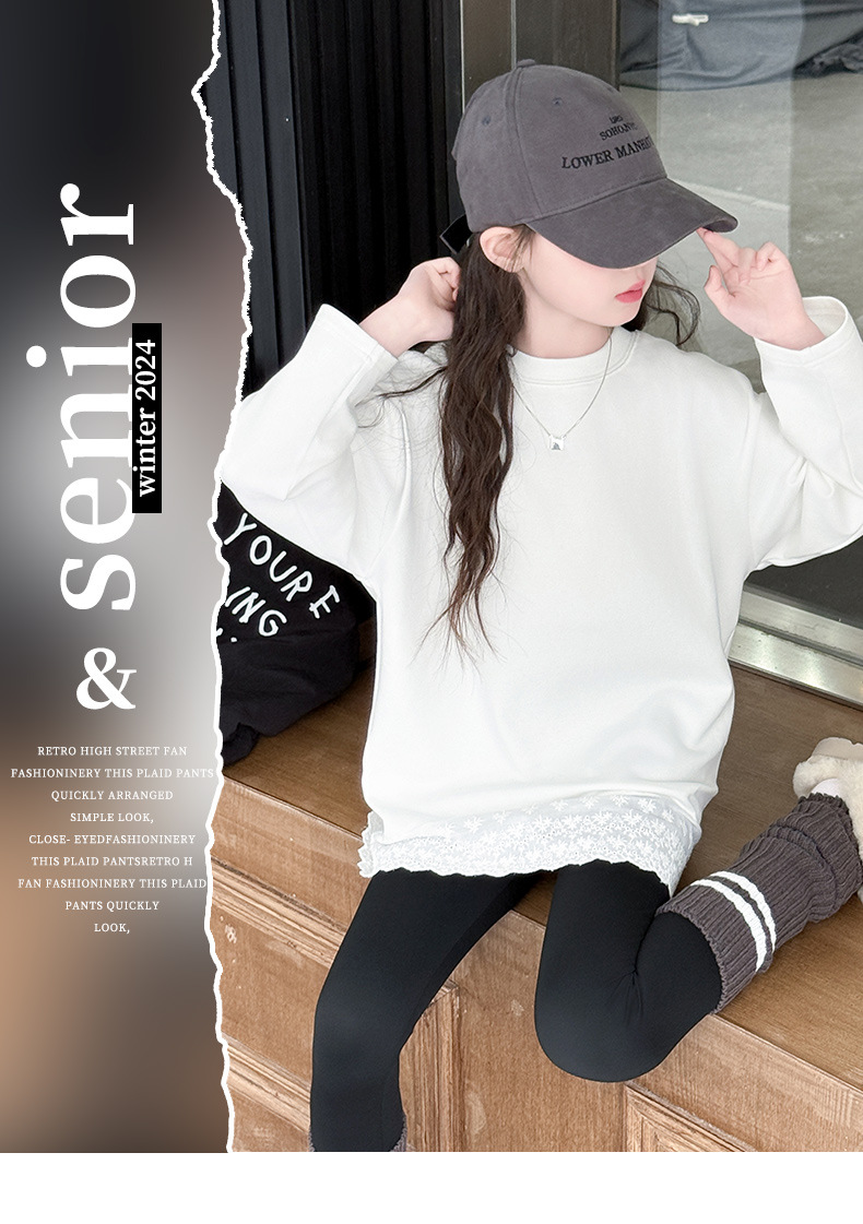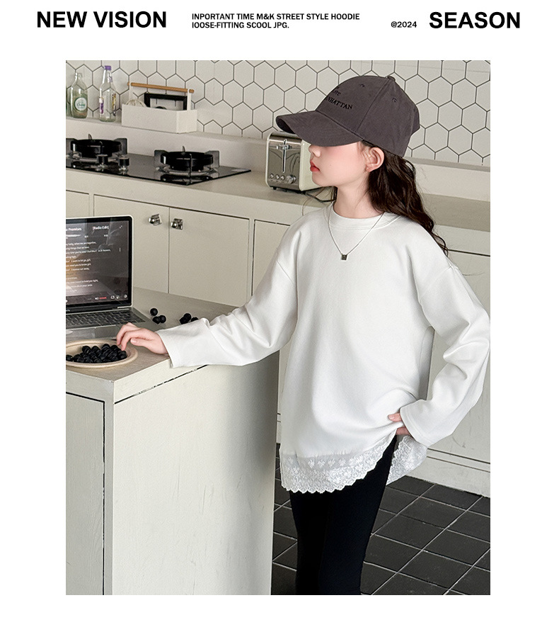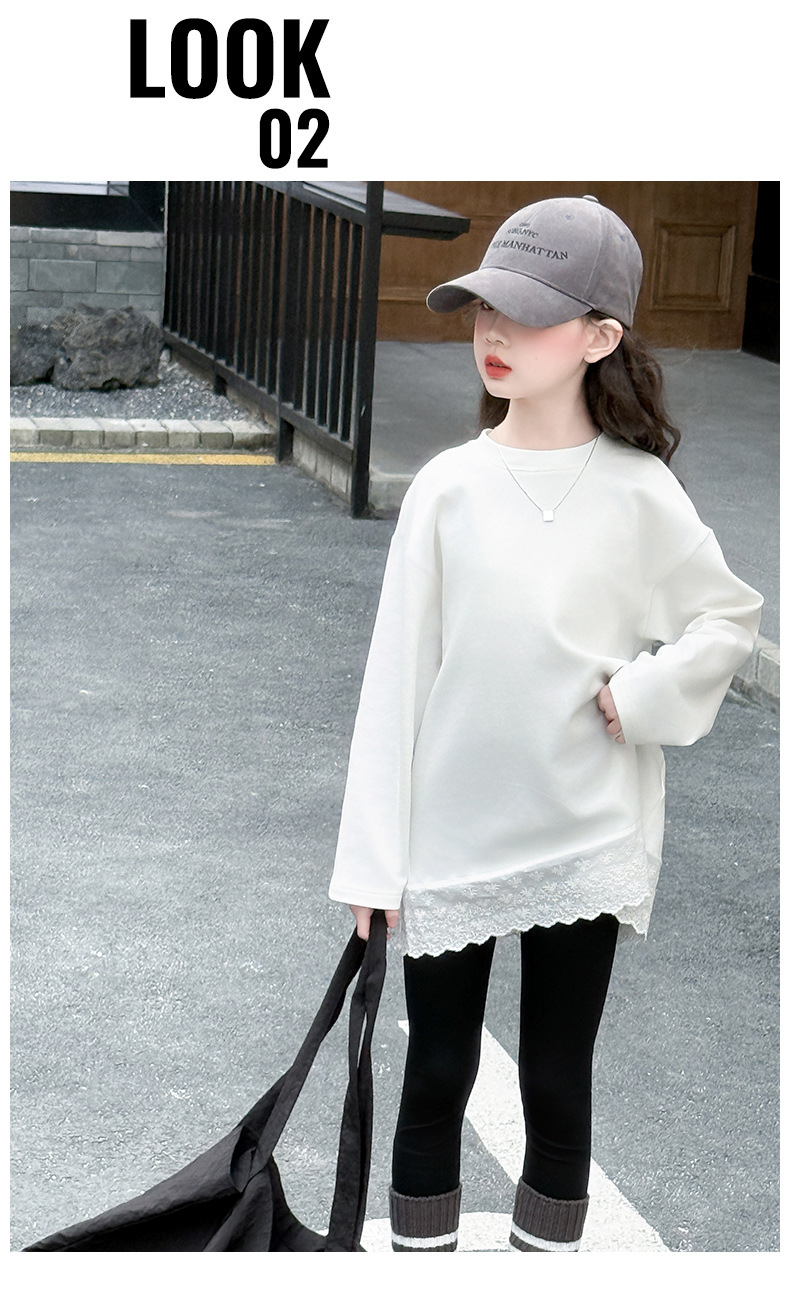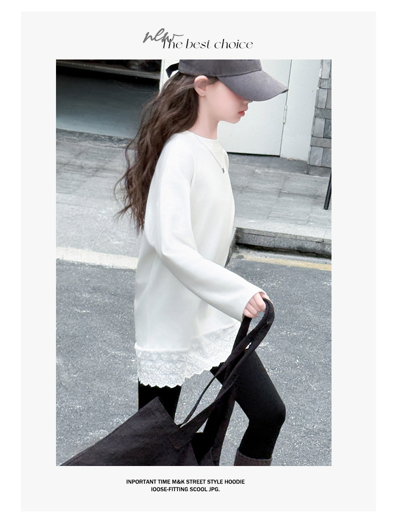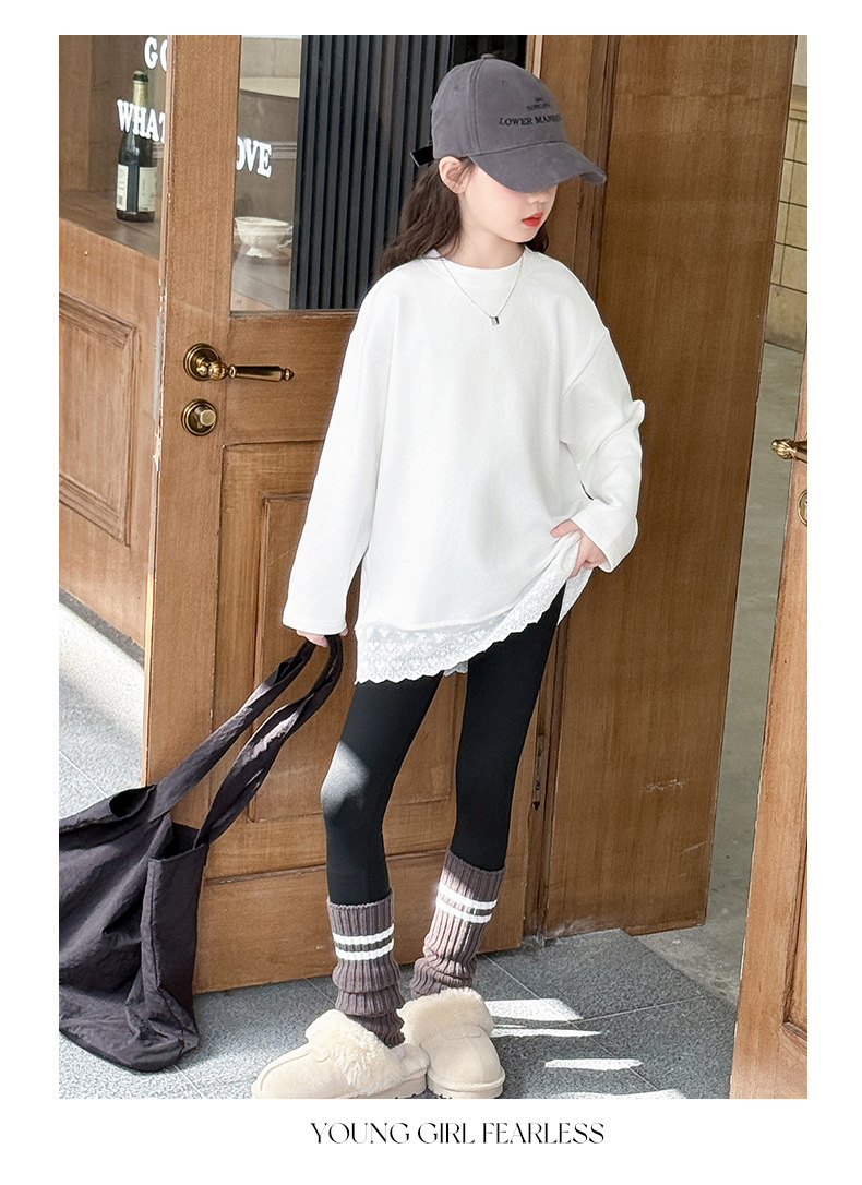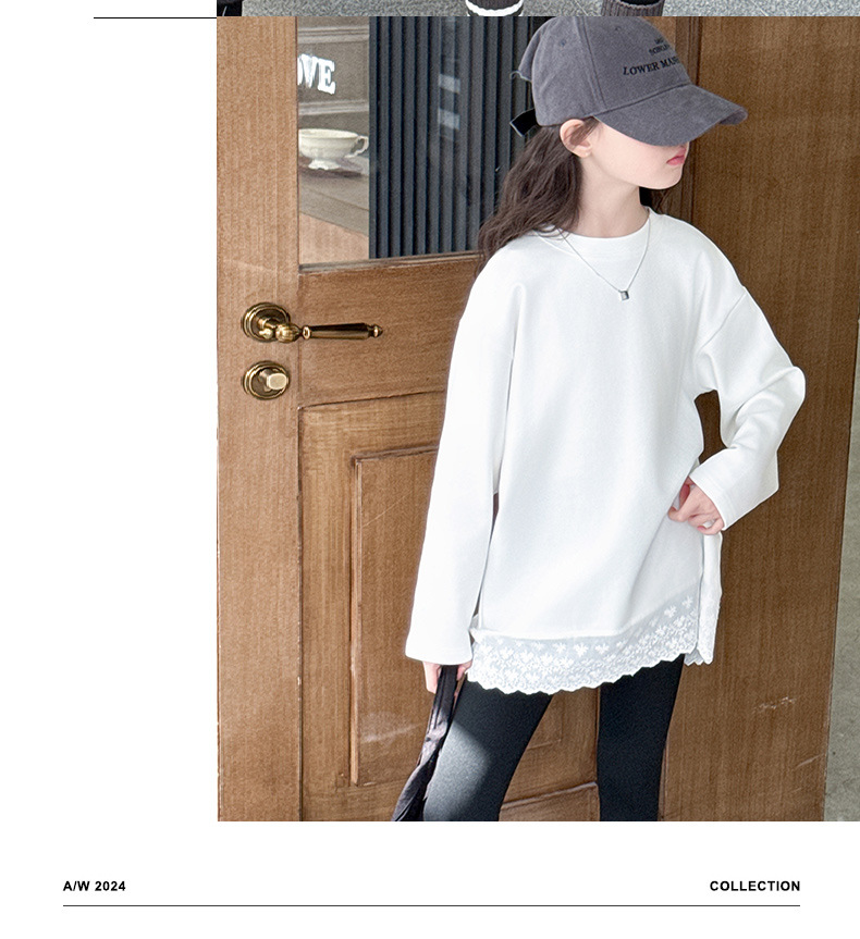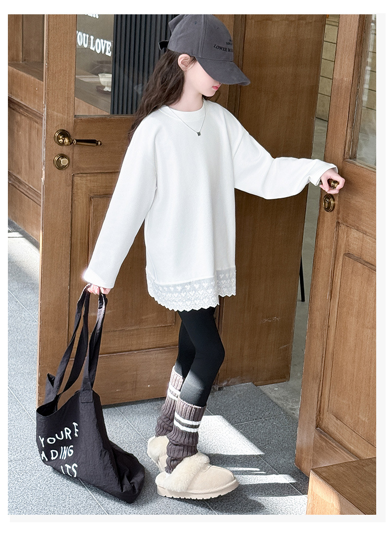 소녀 늦가을 기모 스웨터 중간 길이 한국 스타일 어린이 두꺼운 흰색 티셔츠 톱 9 큰 어린이 가을과 겨울베이스 셔츠스토어 가기
