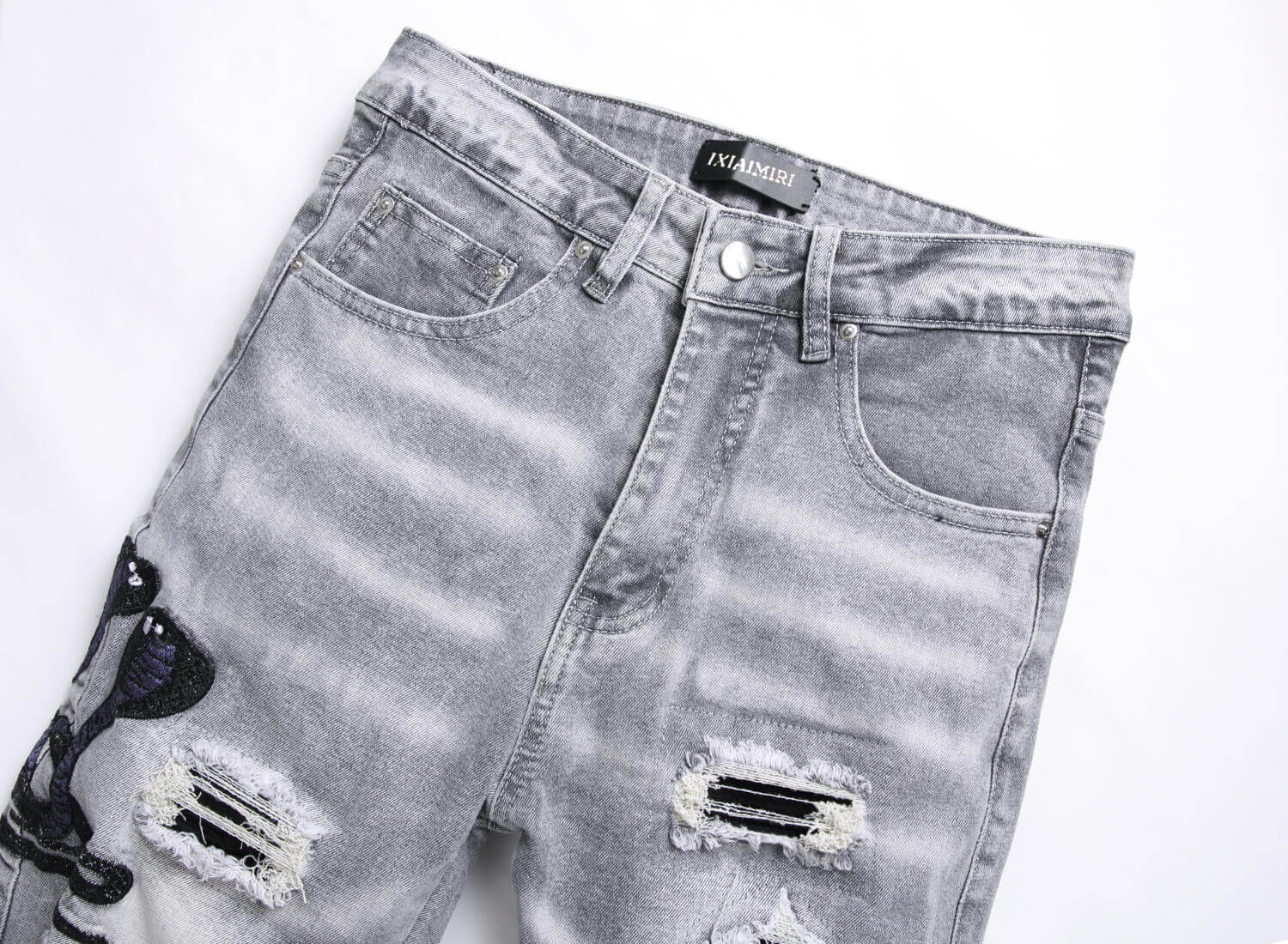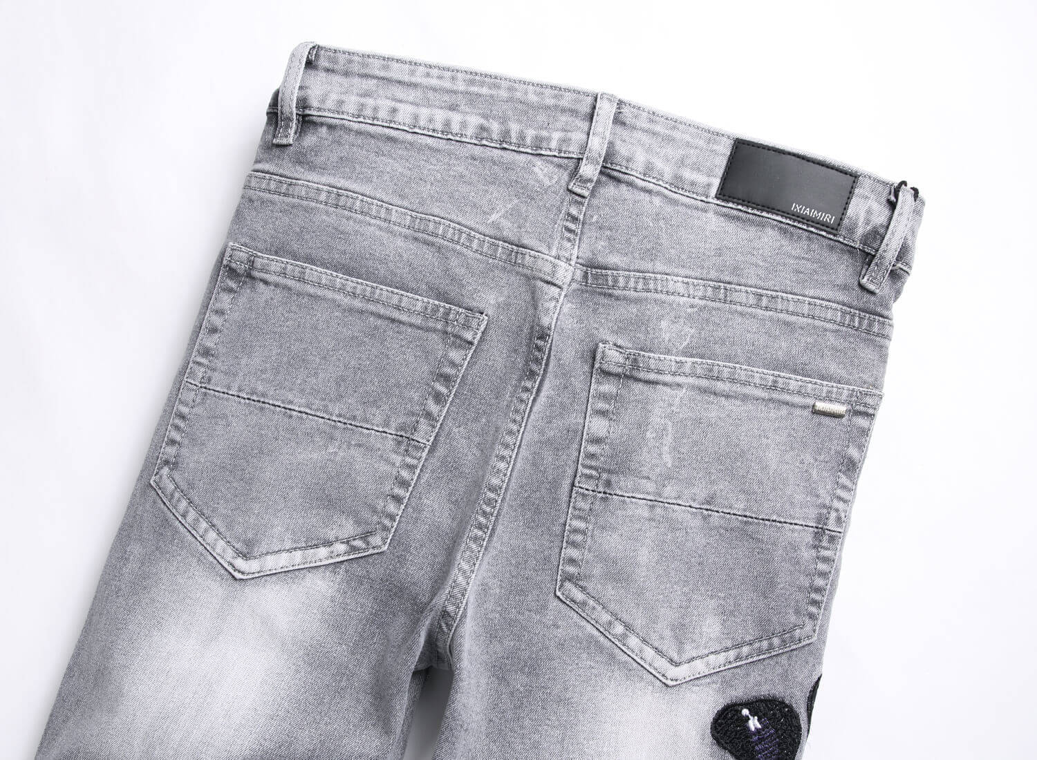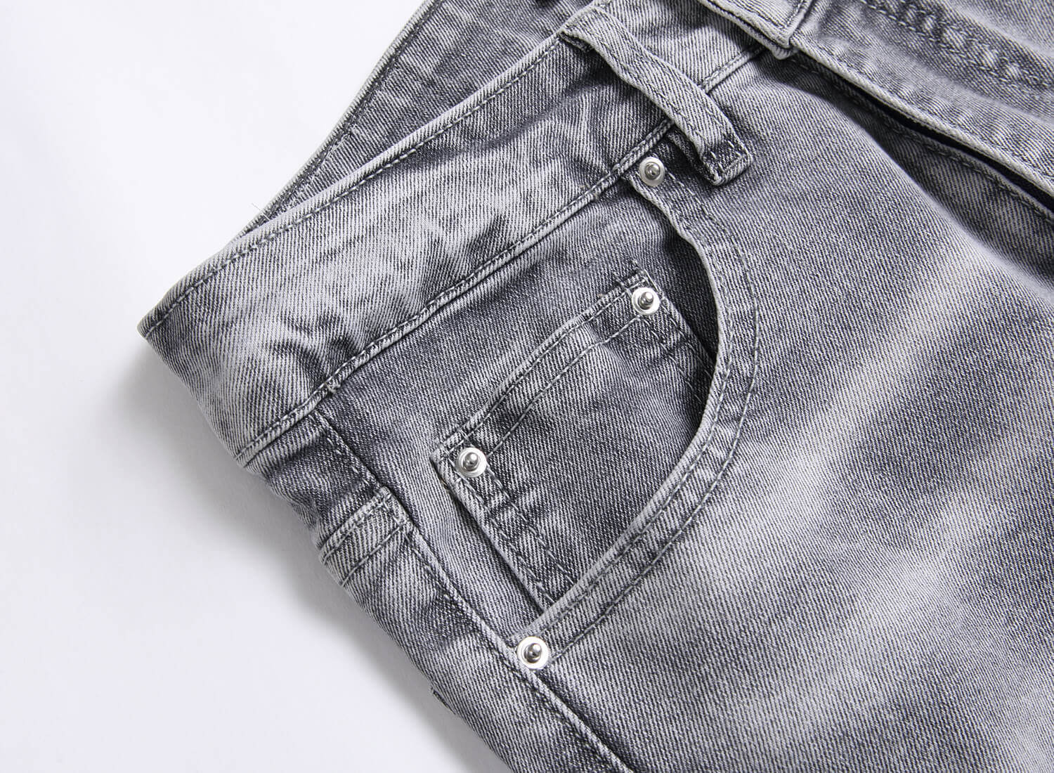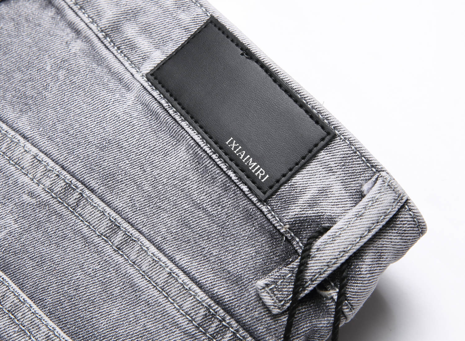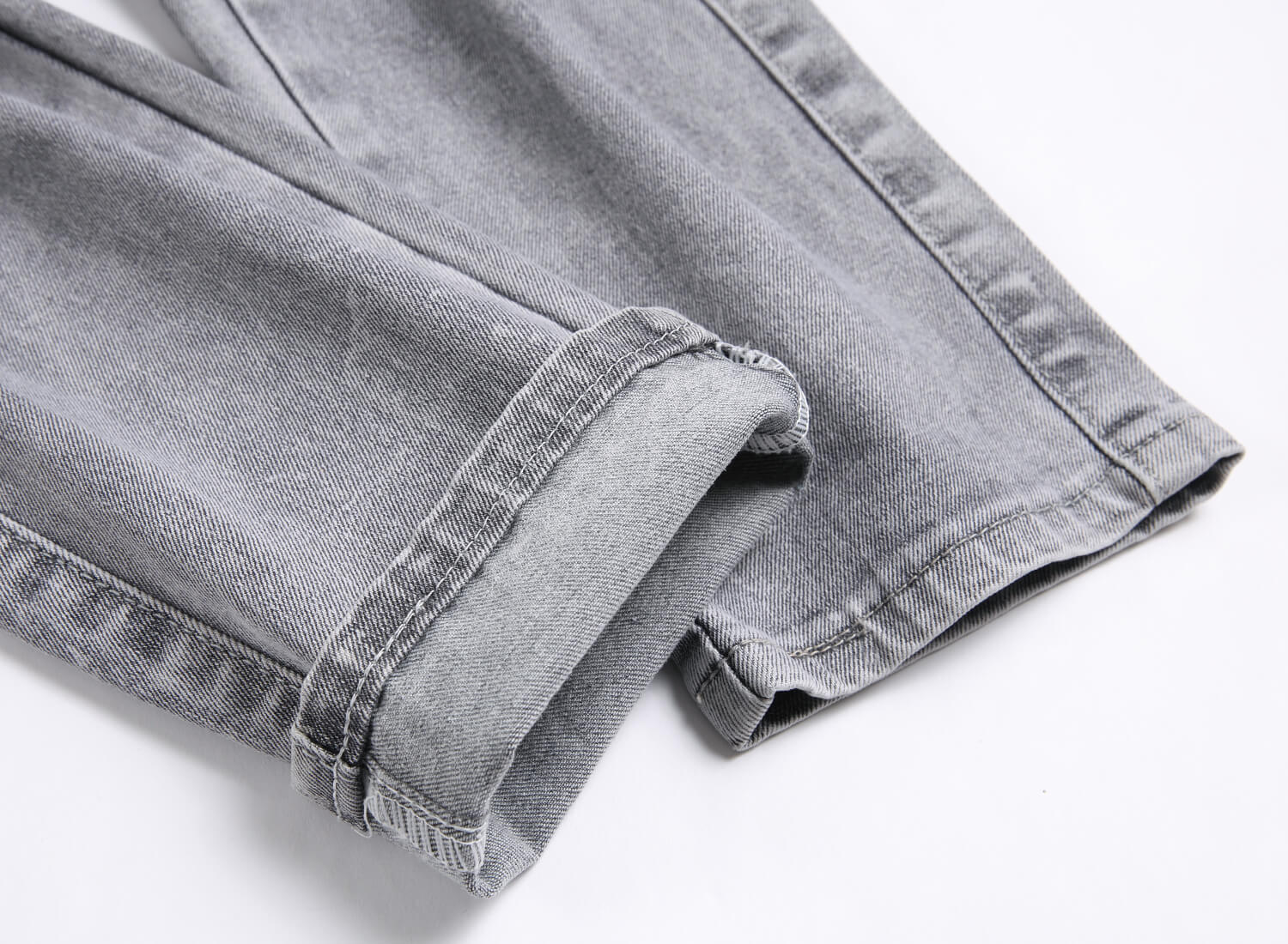 유럽 남성 라이트 블루 찢어진 청바지 남성 유행 스트레치 슬림 핏 작은 발 미국 스타일 하이 스트리트 롱 바지스토어 가기