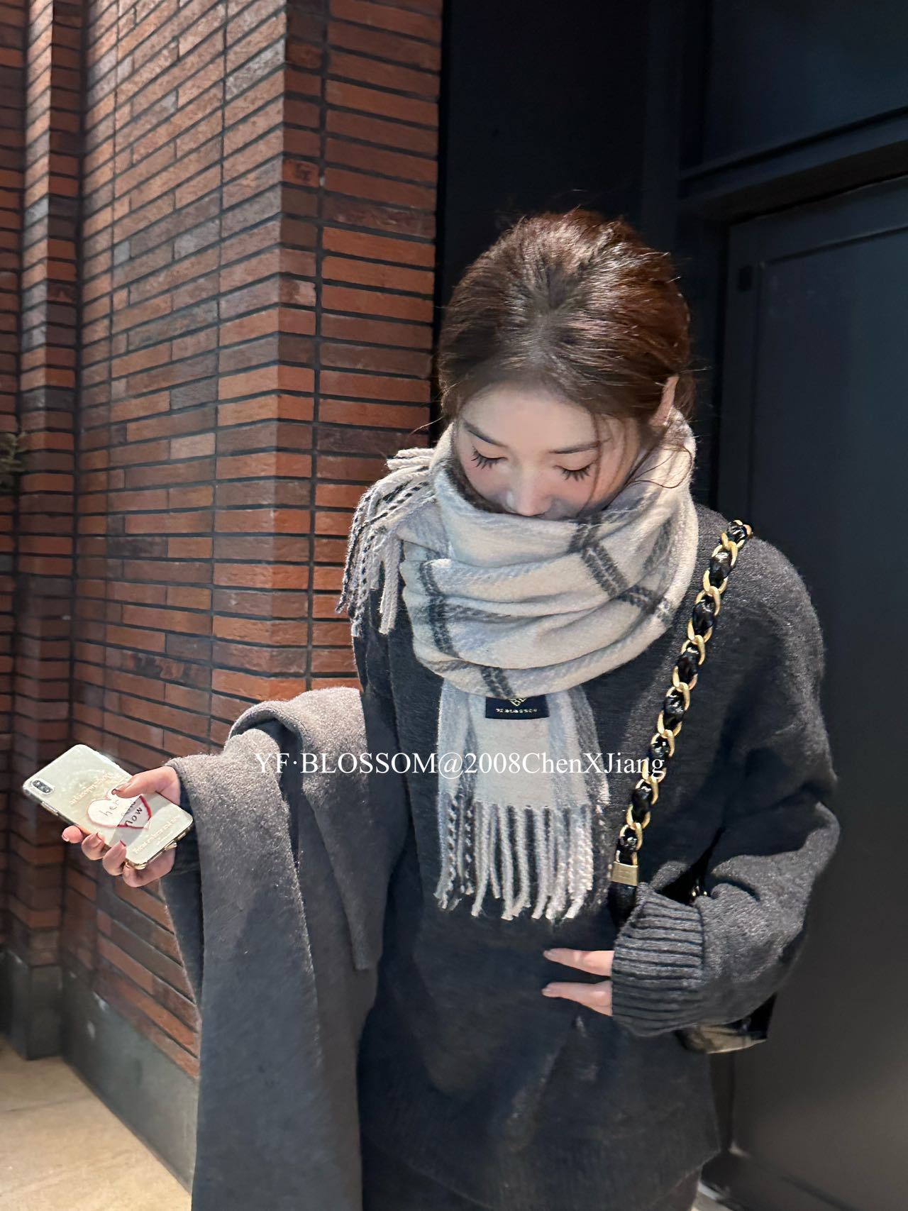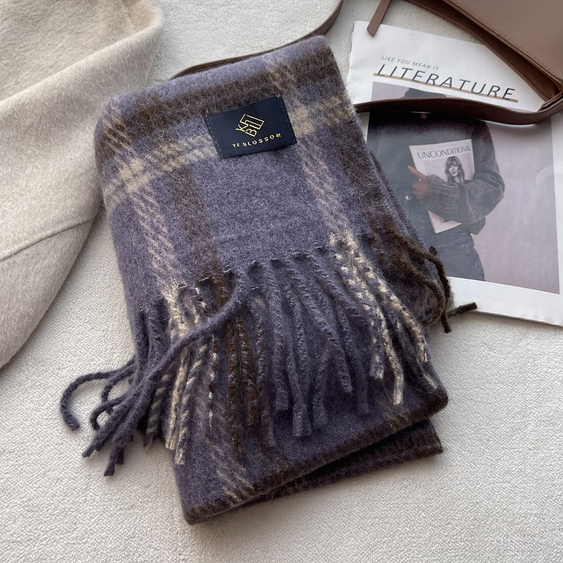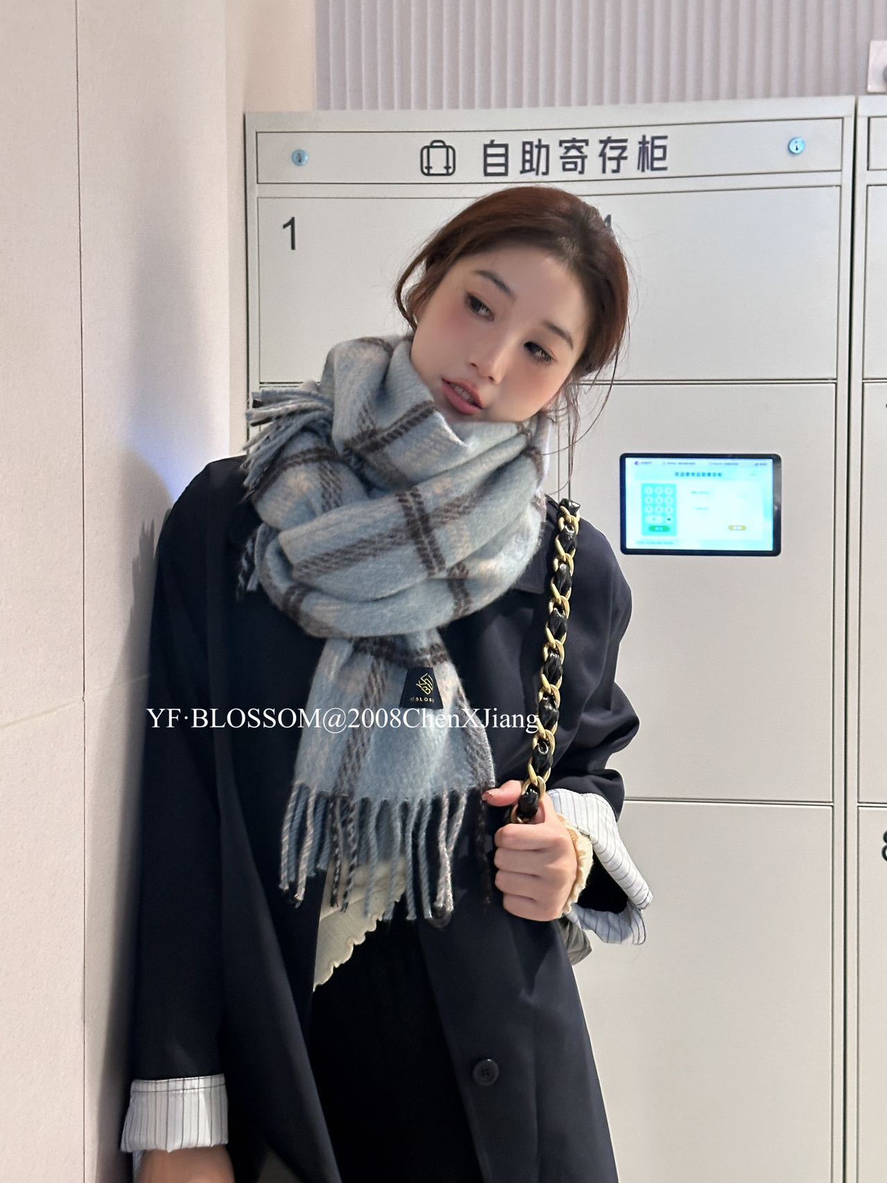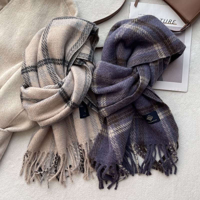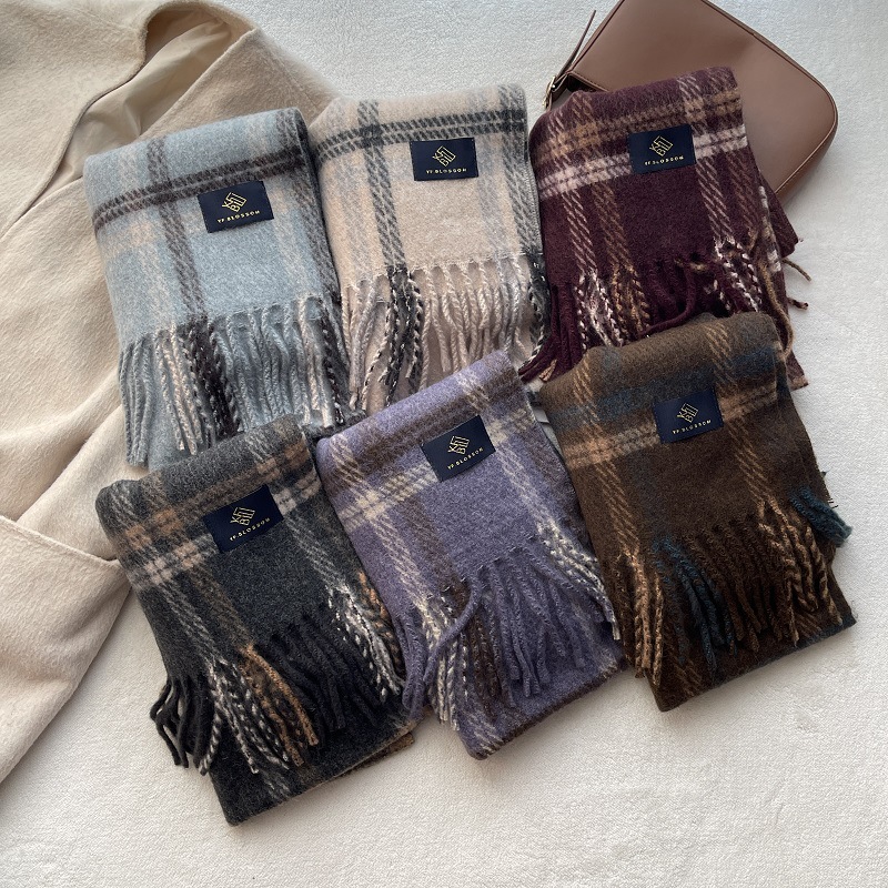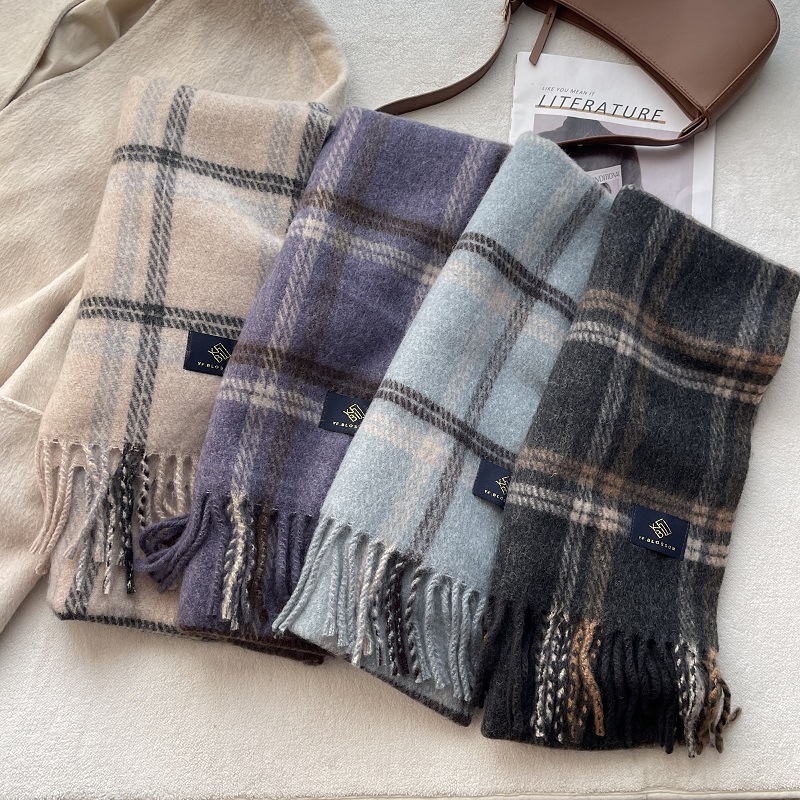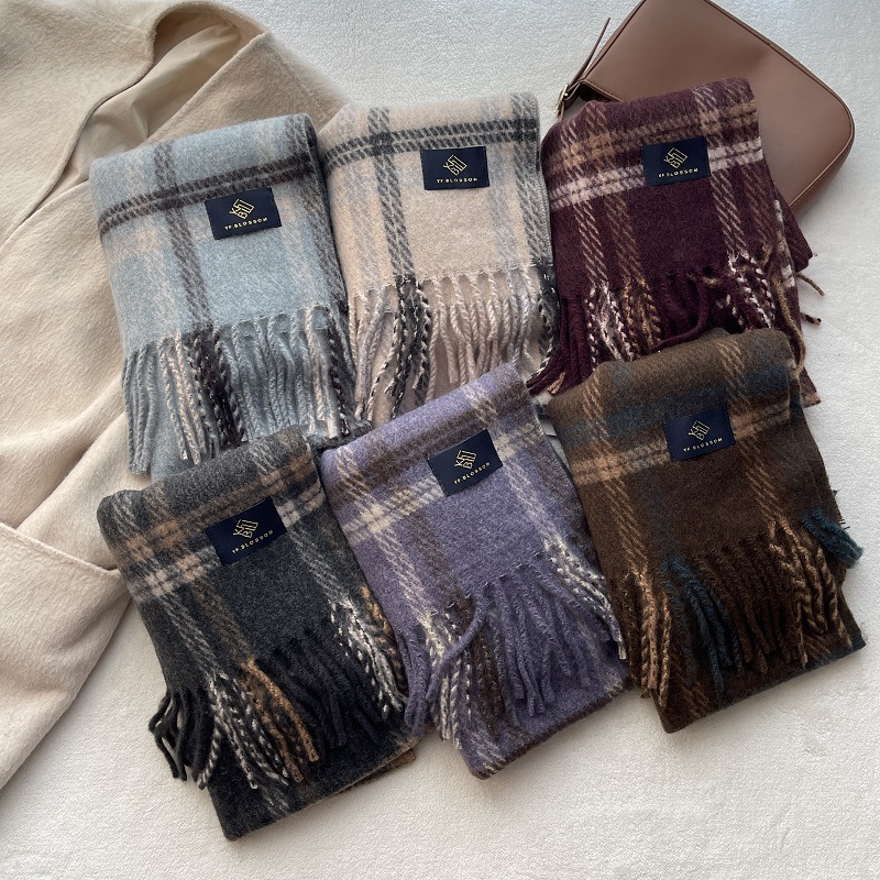 한국 스타일 Ins 스타일 모방 캐시미어 블루 체크 무늬 스카프 여성의 겨울 따뜻한 야외 방한 긴 목도리 스카프스토어 가기