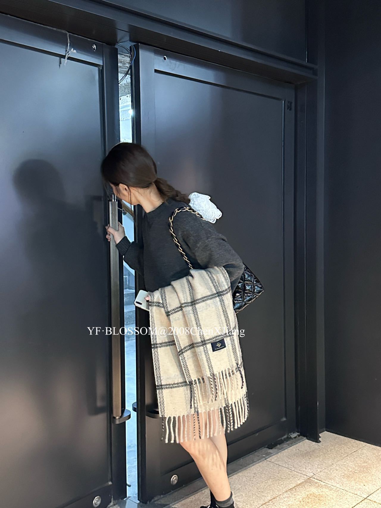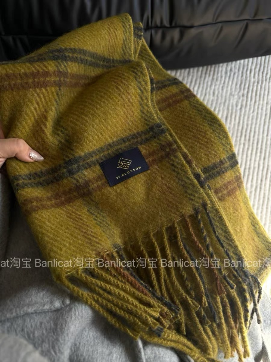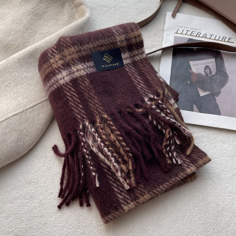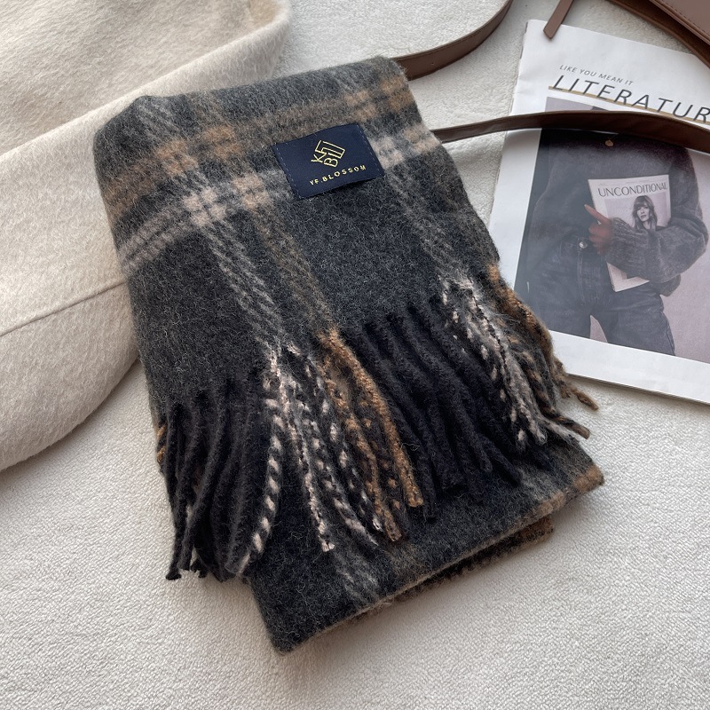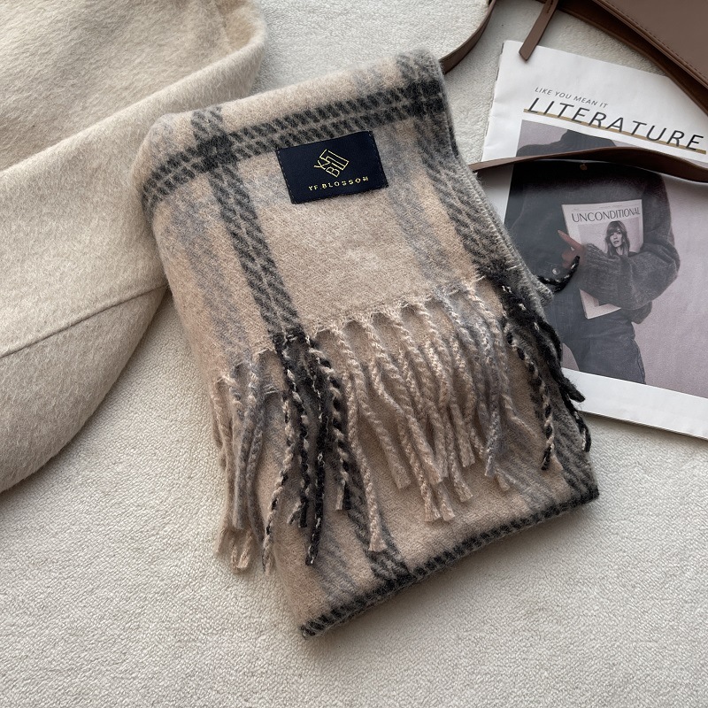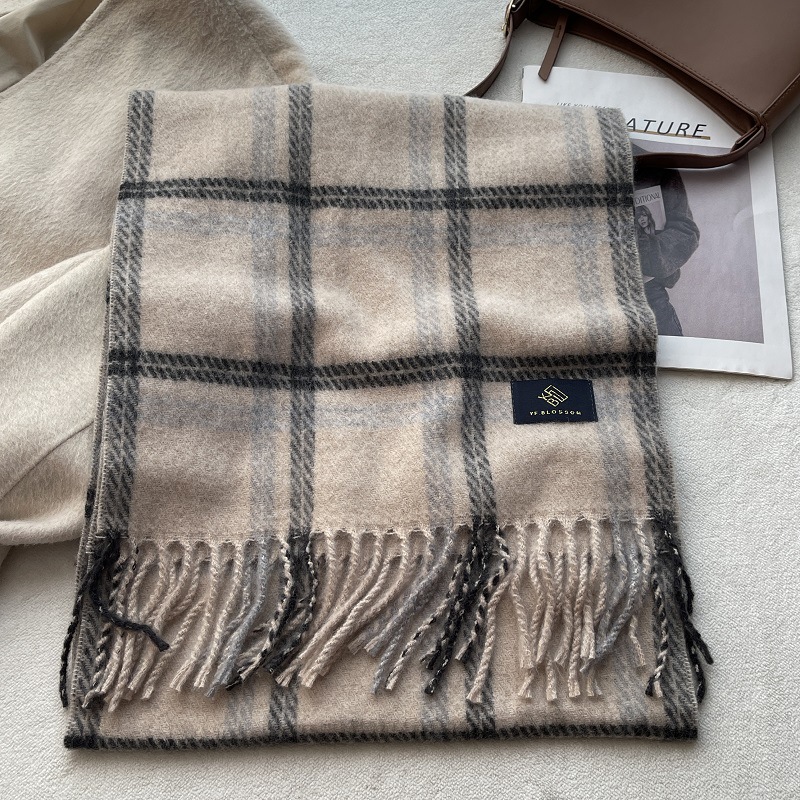 한국 스타일 Ins 스타일 모방 캐시미어 블루 체크 무늬 스카프 여성의 겨울 따뜻한 야외 방한 긴 목도리 스카프스토어 가기