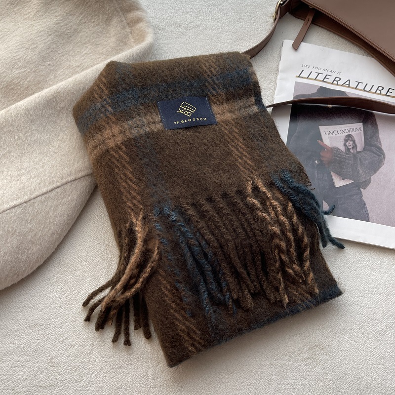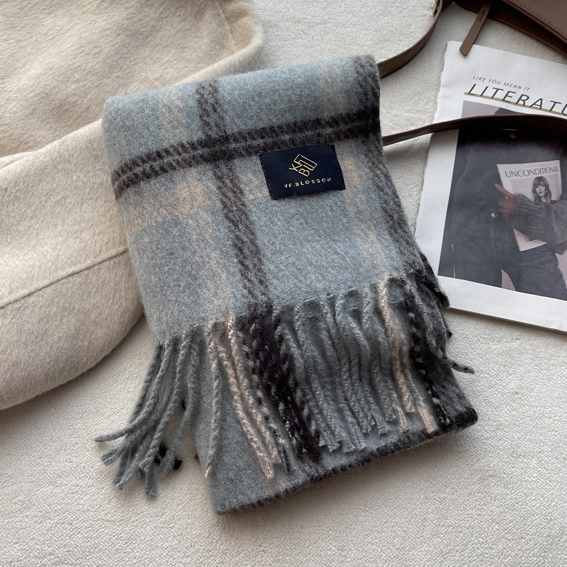 한국 스타일 Ins 스타일 모방 캐시미어 블루 체크 무늬 스카프 여성의 겨울 따뜻한 야외 방한 긴 목도리 스카프