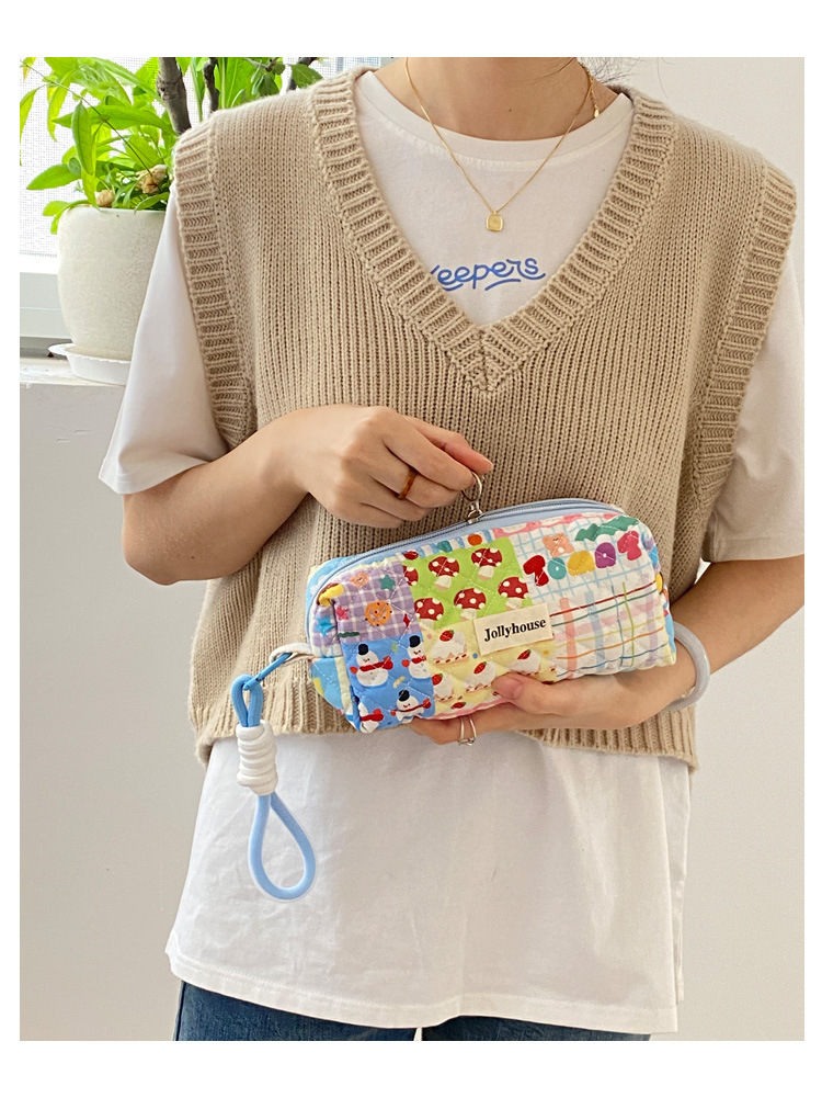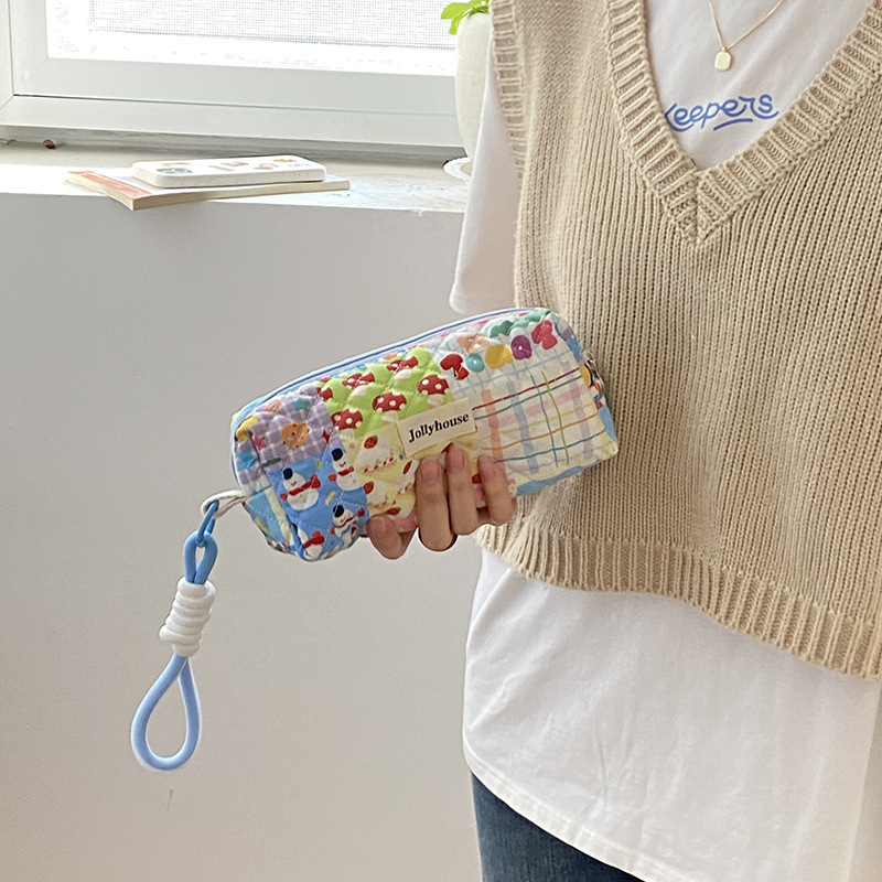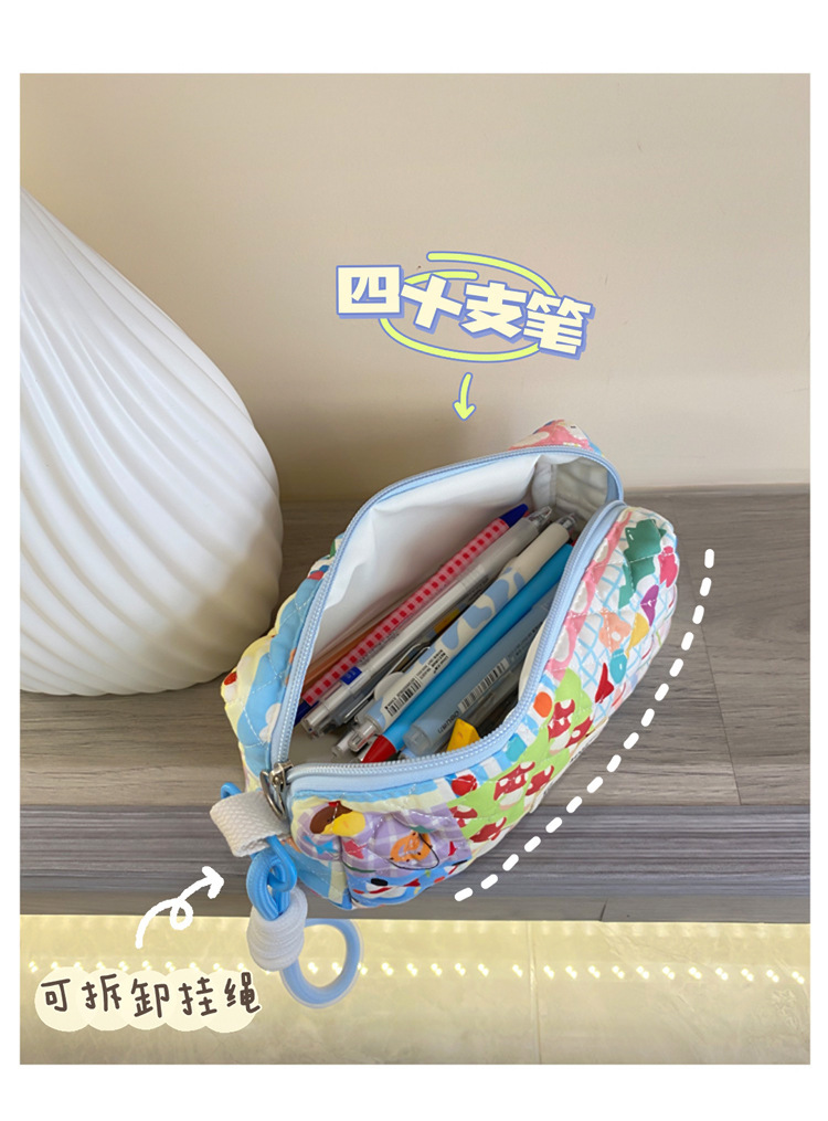 2024 새로운 컬러 일러스트 대용량 학생 연필 케이스 휴대용 화장품 가방 여성용 소형 가방