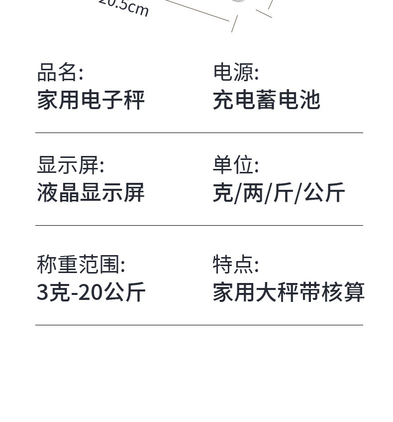 • [확대 가격 주방 저울] 20kg /1g 스테인레스 스틸 플레이트 화이트
